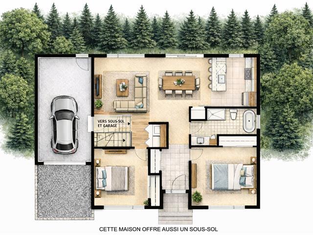 Magnifique maison neuve à construire de style scandinave avec sous-sol, 2 chambres à l'étage, aire ouverte spacieuse avec généreuse fenestration, luxueuse salle de bain avec douche vitrée et bain autoportant, sous-sol partiellement fini (gypse plafond et murs). Possibilité de garage attaché (42 900$ de plus). Aussi, possibilité de choisir parmi d'autres plans existants, de construire selon votre plan, ou clé en main! Plusieurs inclusions et garantie maisons neuves GCR. Emplacement de choix à 3 min du Club de Golf Montcalm, près des Chutes Dorwin, des Cascades de Rawdon, du Spa La Source, près des commerces, et accès rapide à l'autoroute 25! GST/QST must be added to the asking price (52908591)