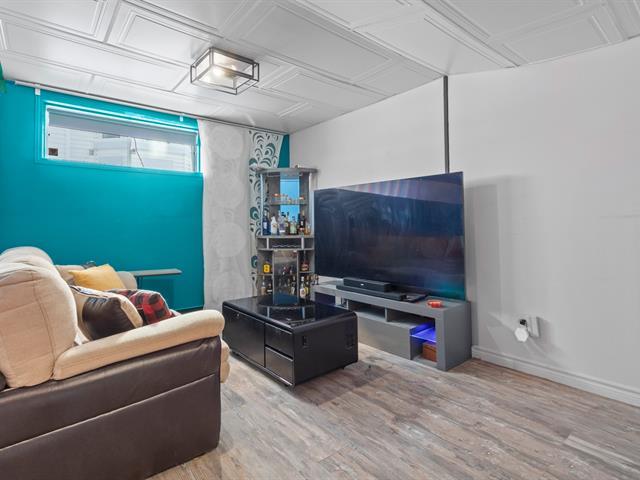 Magnifique maison jumelée à étages rénovée avec des matériaux au goût du jour, située face à une école primaire. Offrant 3 chambres, 2 salles de bains complètes et une salle d'eau, elle propose un espace de vie lumineux avec foyer au bois, cuisine fonctionnelle ouverte sur la salle à manger et accès à une grande terrasse à deux niveaux. Sous-sol avec chambre et salle familiale polyvalente. Cour intime clôturée, arbres matures et cabanon. Secteur familial recherché, près des écoles, parcs, transports et axes routiers. (56118874)