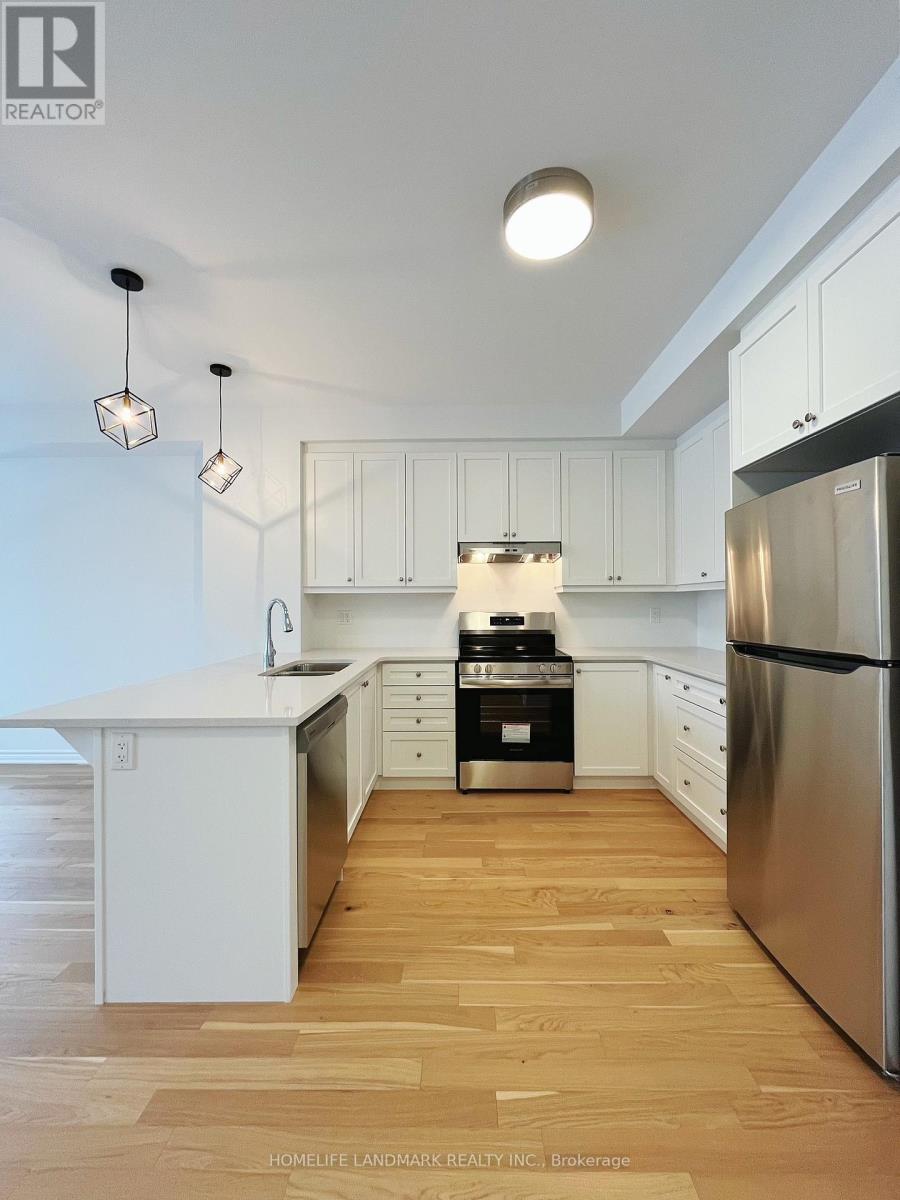 Do not miss this stunning 3-bedroom, 3-bathroom corner townhouse built by Mattamy Homes, located in the prestigious Upper Joshua Creek community! This bright and spacious home boasts an abundance of natural sunlight, thanks to its numerous windows, and features 9' high ceilings on both the ground and second floors.The open-concept kitchen is designed for both style and functionality, equipped with brand-new stainless steel appliances, and quartz countertops in both the kitchen and bathrooms. The bright living and kitchen area opens directly onto a spacious wooden deck, perfect for outdoor gatherings.The primary bedroom includes a luxurious 3-piece ensuite with frameless glass showers and a large walk-in closet. Additional highlights include a second-floor laundry room, hardwood flooring throughout and carpet free, and a generously sized storage room in the crawl basement. The home is located on a quiet street, very close to a new elementary school, and offers easy access to supermarkets, trails, parks, public transit, highways (just 5 minutes to 403/QEW), and top-rated schools. Appliances includes fridge, stove, dishwasher, washer and dryer, garage door opener, all electrical light fixtures, all window coverings. The TV mount may remain at the current tenant's discretion. (42078066)