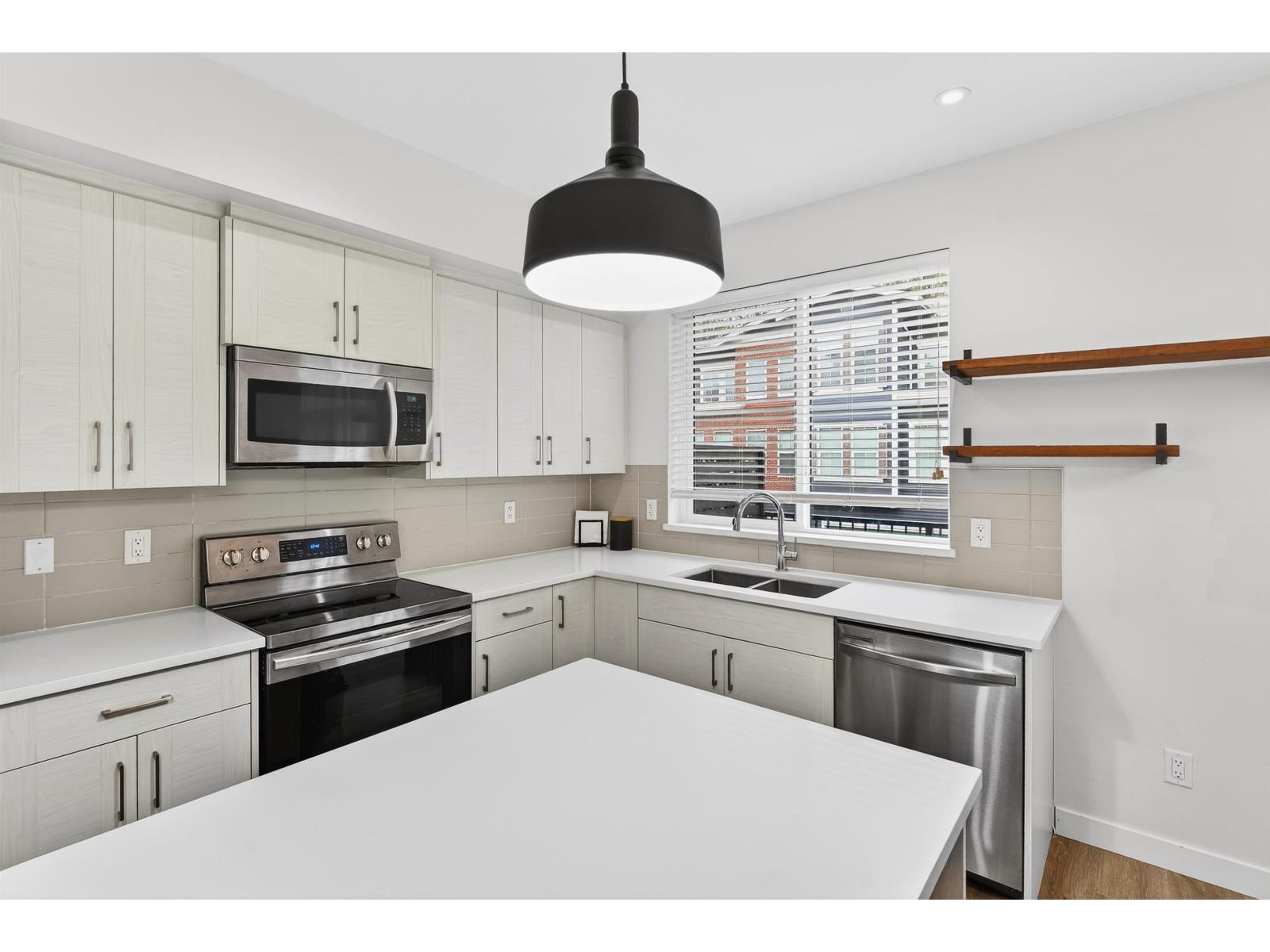 This bright corner row home in Latimer Heights offers 3 bedrooms plus a flex space and 2.5 bathrooms. Built by Vesta Properties, it features 9-foot ceilings on the main level, a modern kitchen, dining area, and a sunny balcony ideal for outdoor meals. The flex room with natural light works well as a home office or extra bedroom. A private rooftop terrace with mountain views, BBQ gas hookup, and space for entertaining or a hot tub is a standout feature. The home includes air conditioning, a side-by-side double garage, and a double driveway. With low strata fees and move-in-ready condition, it's located close to schools, the Carvolth bus exchange, parks, trails, and Langley Events Centre. Excellent value in a sought-after neighbourhood. (32408488)
