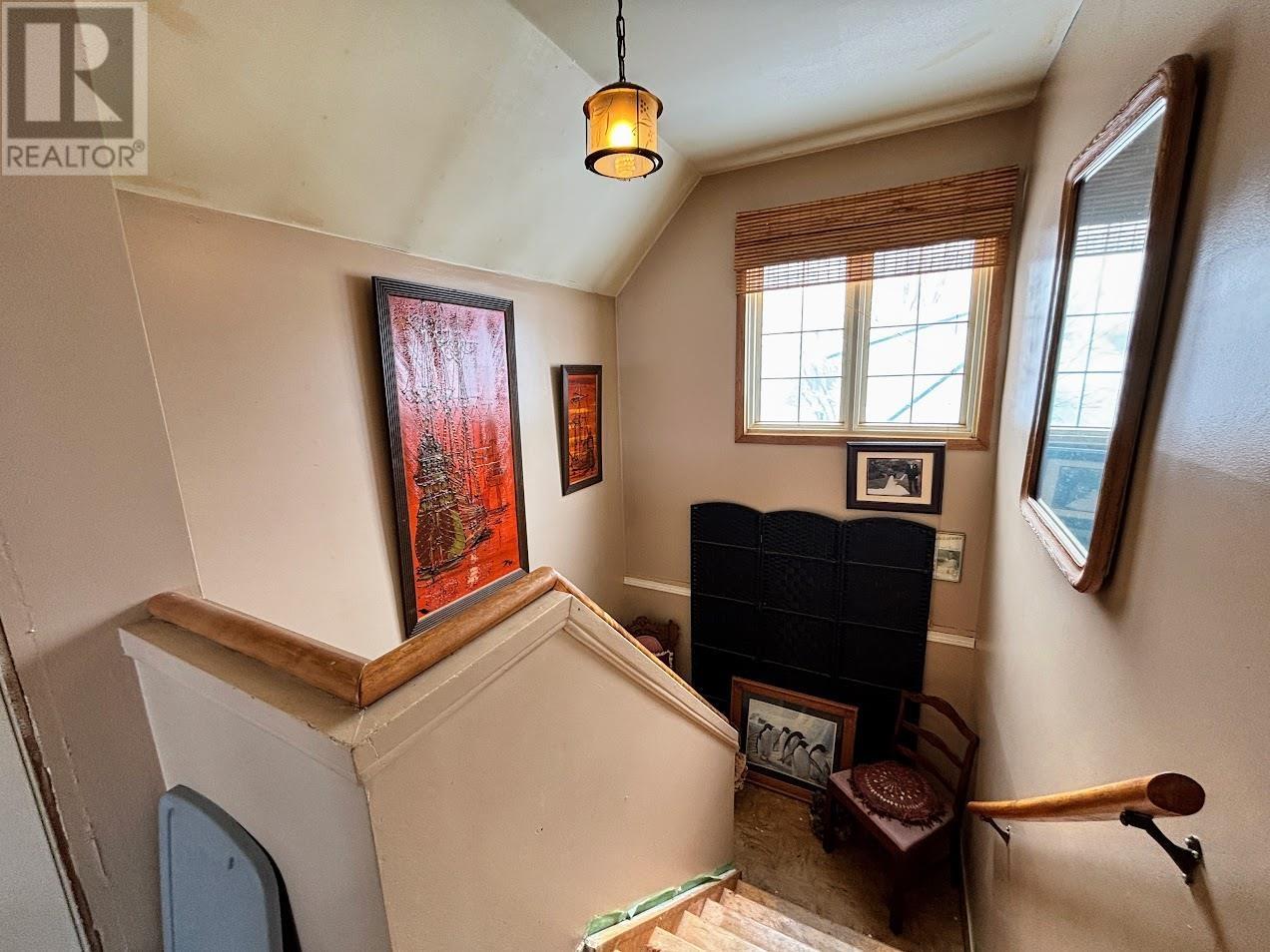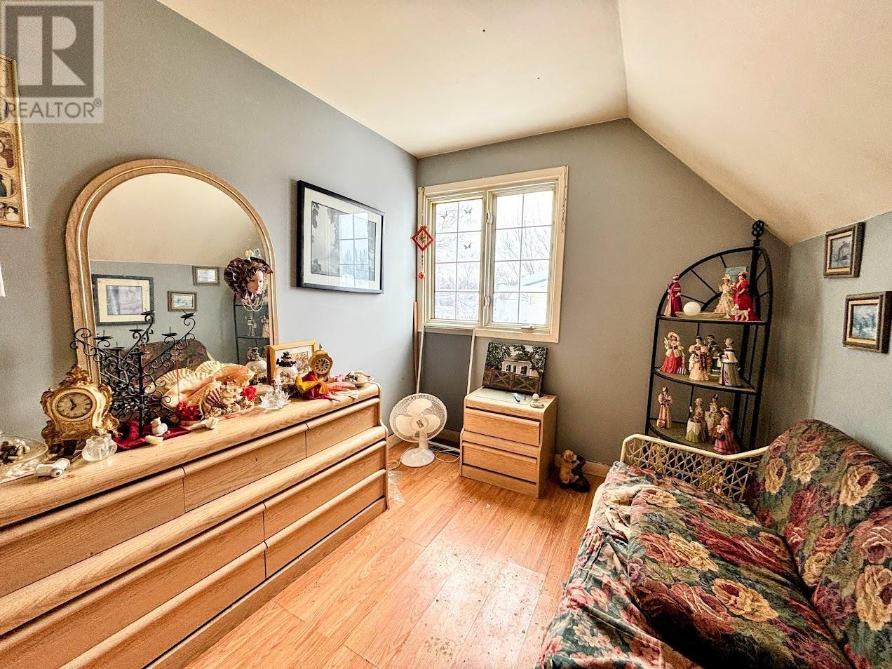 Tucked away in the quiet northern community of Manitouwadge, Ontario, this whimsical brick home offers warmth, character, and functionality across three levels. The main floor welcomes you with a cozy living room highlighted by tall windows that flood the space with natural light. The adjoining dining and kitchen area features ample cabinetry, providing plenty of storage for everyday living. A 4-piece bathroom and a comfortable queen-sized bedroom complete this level. Upstairs, you’ll find a spacious primary bedroom accented by a charming skylight and dual closets. A secondary bedroom rounds out the upper level, ideal for family, guests, or a home office. The basement adds extra living space with a rec room/utility area, a laundry room, and a 1-piece bathroom. Outside, enjoy a cute backyard perfect for relaxing or entertaining, along with a detached single-car garage for added storage and parking. A delightful home with character and versatility — perfect for those seeking comfort in a peaceful northern setting. (31922545)