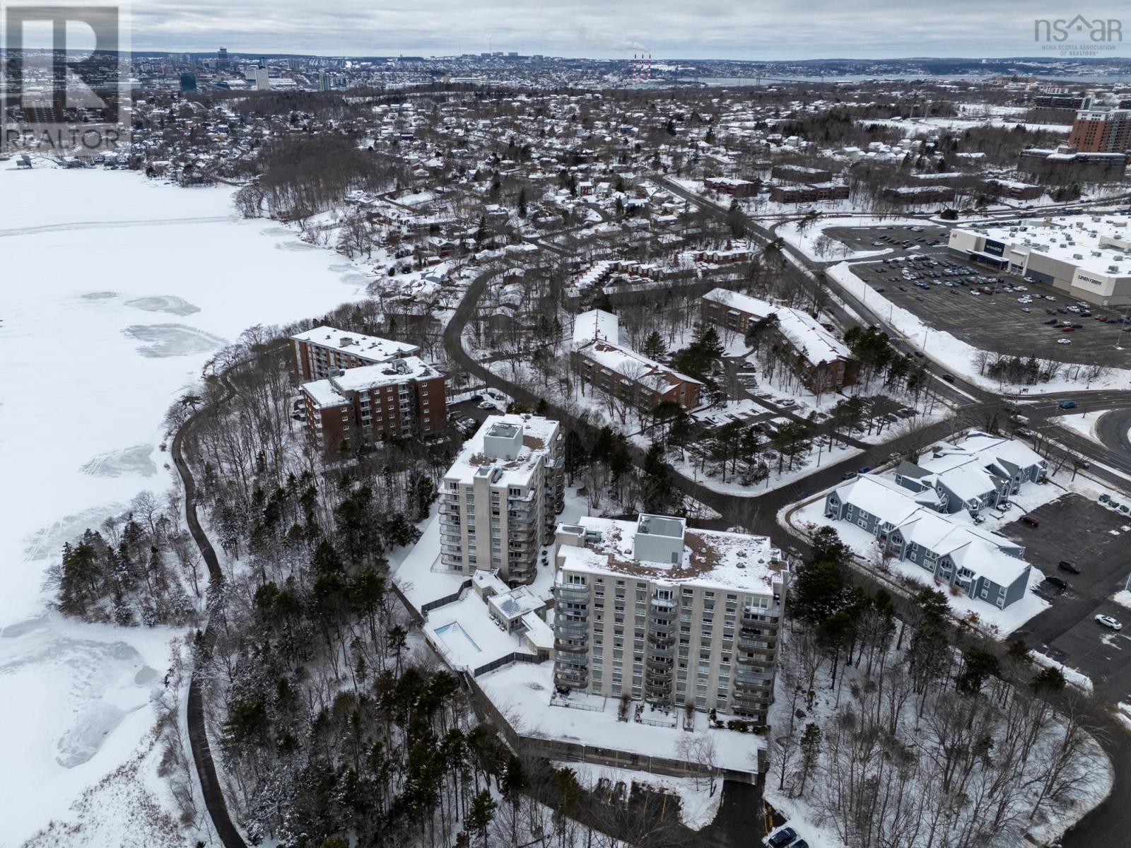 This home has undergone a renovation to almost everything that isnt structural, to make it a warm modern design that feels like home. This home has a view of Banook Lake which gives it lots of light as it is south facing. This means not only do you get beautiful year-round sunsets and sunrises, the sun helps to cut down on heating costs in the winter. In the summer you can enjoy the park in the building's back yard from either your balcony or the patio by the pool which is equipped with communal barbecues, tables, and chairs. The building comes packed with amenities including: a social room which you are able to use for any larger events youve got planned, a workout gym, the aforementioned pool area and communal barbeques, a guest suite which you can book for your friends and family, a woodworking shop, your own storage unit, winter snow clearing, and underground parking. From your underground parking, you can walk right out onto the Banook Lake Trail which allows you to take a quick half a kilometer walk to the Kiwanis Club Park or Atlantic Superstore. On this same route its only a 2km walk to downtown Dartmouth, which will take you all along the lake and past Sullivans pond. This route is also bicycle friendly for anyone looking to cycle down to the ferry for their morning commute or to get some exercise. By car you are less than 5 minutes away from MicMac Mall, Main Street Dartmouth, Dartmouth Crossing, Burnside Park, and the Shubie Park Trail System. Only 5 minutes from Alderney Landing, 8 minutes from the Woodside Ferry, or 15 minutes from Downtown Halifax, making this an ideal spot for anyone who is commuting. Additionally, there are multiple major bus routes which run from stops which are a 2 minute walk from the front door. (231924469)