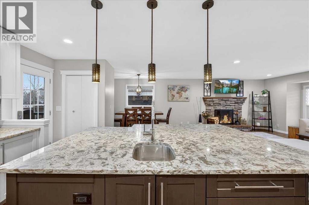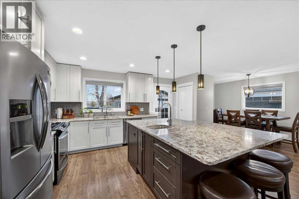 You do not want to miss this incredible family home! With a fantastic floorplan, meticulous care, and a location that’s within walking distance to schools, shopping, and the recreation center, this home truly has it all. As you step through the front door, you’ll be amazed at the expansive living space this well-designed four-level split offers. The thoughtful layout creates a home that lives much larger than its square footage suggests. The spacious kitchen is a chef’s dream, featuring a massive island with a prep sink, stunning quartz countertops, plenty of cabinet space, and ample room for seating—perfect for both cooking and entertaining. The large living room is cozy yet inviting, with a wood-burning fireplace and a bright dining area surrounded by windows that fill the space with natural light. It’s the perfect place to relax and unwind. On the upper level, you’ll find two children's bedrooms that share a 4-piece bath, and a master bedroom with a 4-piece ensuite. The lower level offers a large family/playroom, a 3-piece bath, and a laundry room. On the lowest level, you’ll enjoy even more space with a sizable rec room, an additional bedroom, and a utility/storage room. Outside, the large tiered deck (with gas line to the barbeque) and raised garden beds provide the perfect space for outdoor living. And don’t forget about the 20’x21.6’ detached garage, which is heated and in like-new condition! This home has been thoughtfully updated over the last 10 years, with modern features like air conditioning, a newer hot water tank, furnace, and a Kinetic water filtration system. You’ll truly fall in love with this beautiful home—and as a bonus, you’ll have the best neighbors around! (31606085)