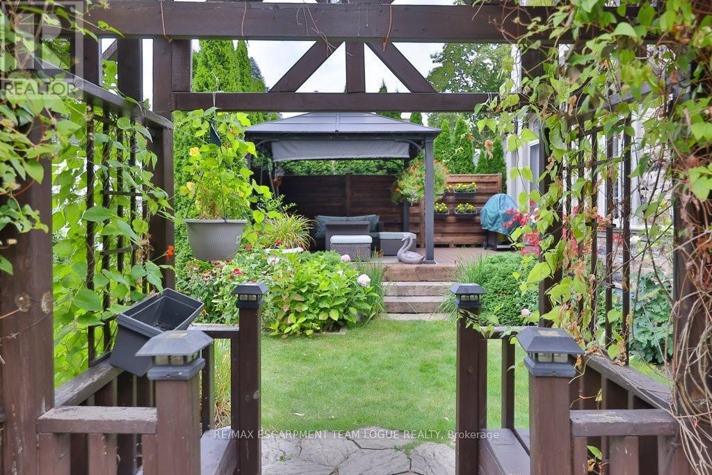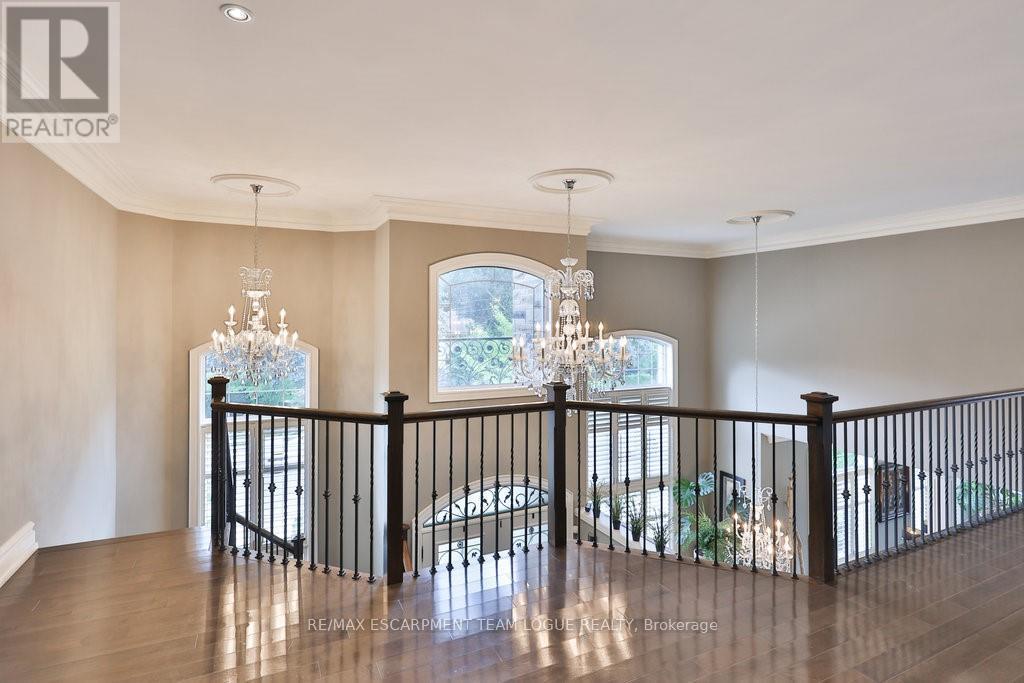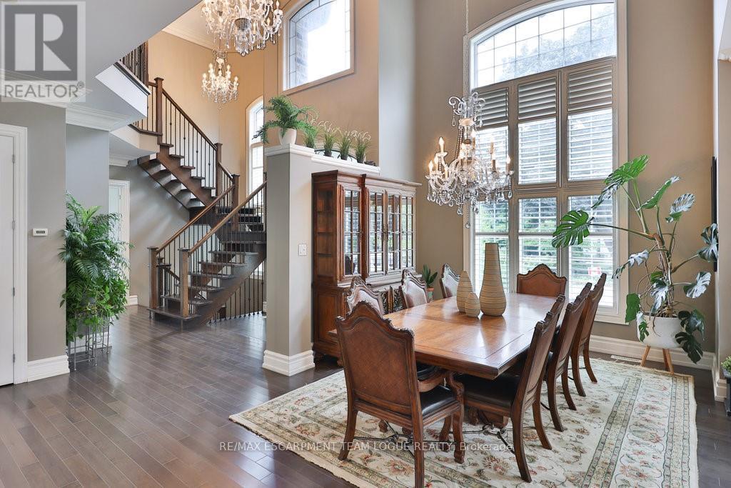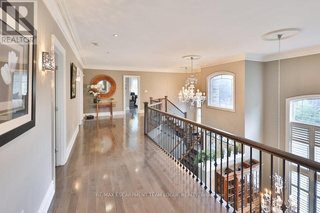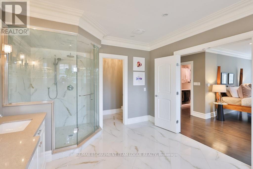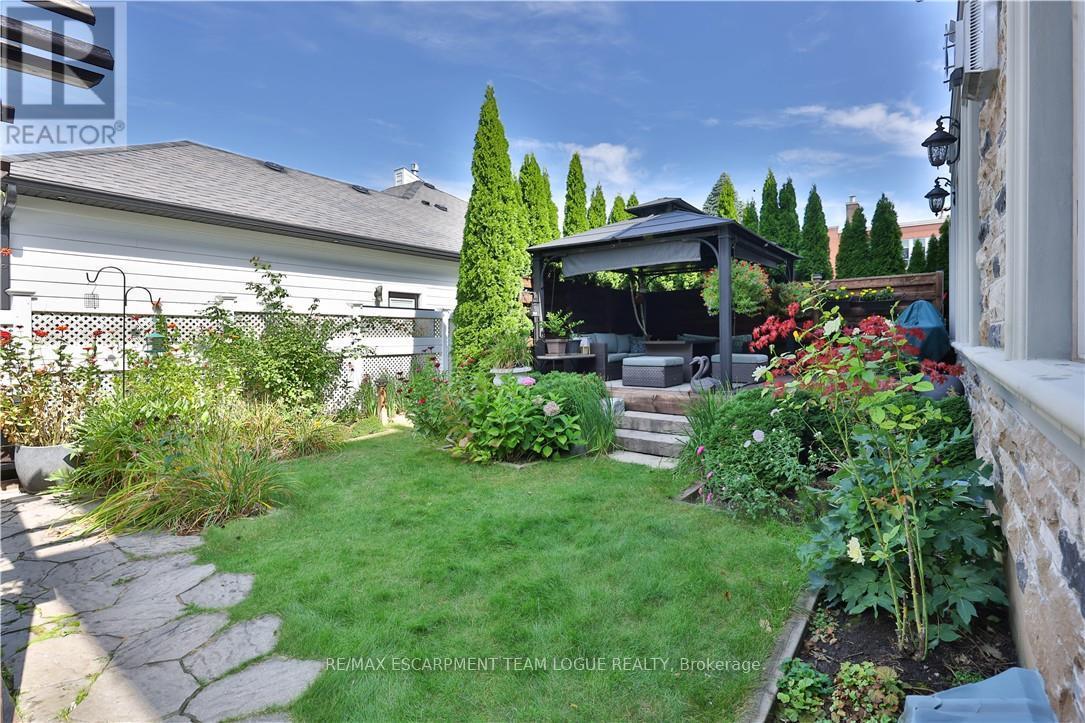 Welcome home. Prestigious Lakeshore address, just steps from the water's edge and a short stroll to Burlington's vibrant downtown core. This custom-built residence showcases timeless elegance and exceptional curb appeal, framed by lush, landscaped gardens. Inside, a grand foyer with soaring ceilings and walls of windows flood the home with natural light, introducing airy and sophisticated interiors. At its heart lies a designer kitchen-an entertainer's dream, featuring a sprawling island with bar seating, quartz countertops, a full wall of refrigeration, premium Thermador appliances (including two dishwashers), abundant storage, and seamless flow into the sunlit dining area. The open-concept layout continues into the expansive great room, anchored by a striking stone fireplace, and transitions effortlessly into the formal dining area. A private office/den, elegant powder room, custom mudroom, and interior access to the oversized double garage complete the main level. Upstairs, the luxurious primary suite offers a cozy fireplace, spa-inspired five-piece ensuite, and spacious walk-in closet. Three additional bedrooms, each with ensuite or semi-ensuite access, provide comfort and privacy, while a convenient laundry room completes this level. Step outside to your private backyard oasis, surrounded by mature, colorful gardens. Two patios, including one with a large pergola, create the perfect setting for relaxation or outdoor entertaining. The lower level presents endless possibilities with soaring ceilings, an expansive open layout, rough-ins for kitchen and bathroom, heated floor hookups, generous storage, and a separate enclosed room ideal for an additional bedroom or flexible living space. Luxury Certified. (42079183)