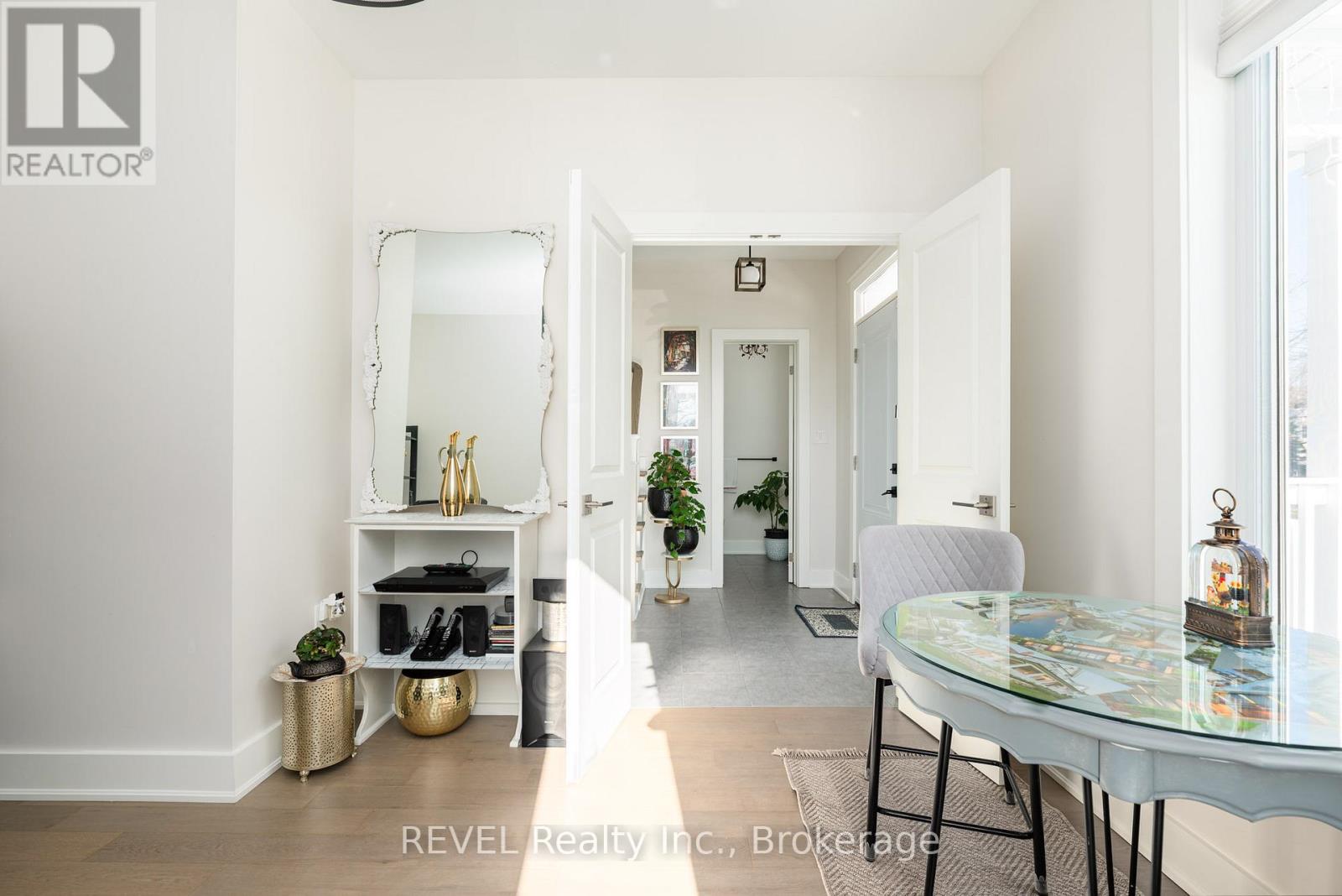 The hall draws you to the modern main living area.