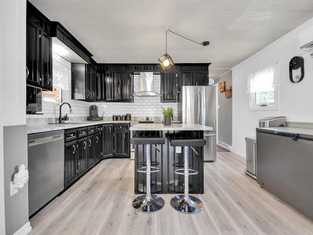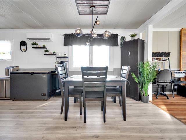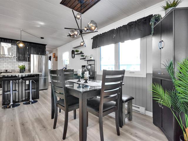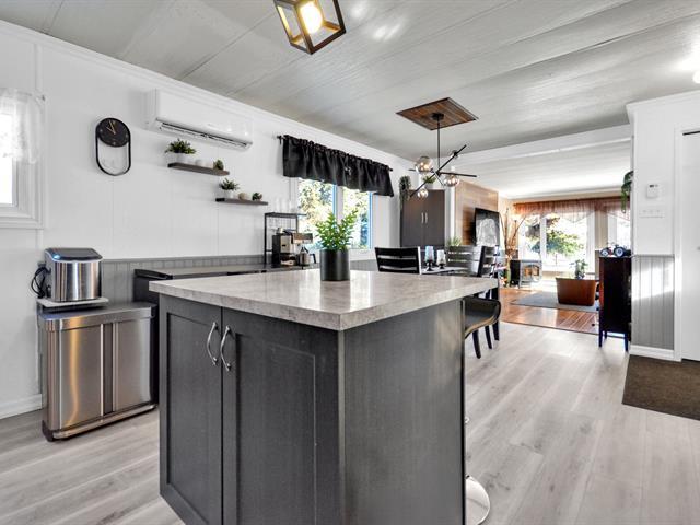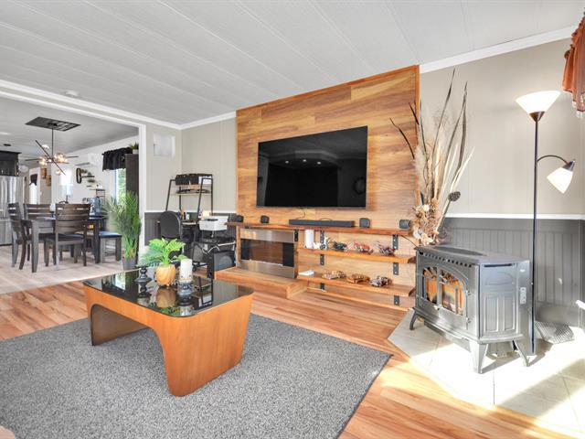 Maison mobile soigneusement améliorée située au 20 rue de la Rive, Rimouski, sur un terrain appartenant au propriétaire d'environ 11 400 pi². L'intérieur offre une aire de vie conviviale et lumineuse, une cuisine en bois remise au goût du jour, avec îlot central et nouveaux dessus de comptoir, idéale pour recevoir. Les chambres sont de très bonnes dimensions et proposent beaucoup de rangement, incluant des armoires intégrées. Le salon se distingue par son ambiance chaleureuse avec poêle aux granules. Grande terrasse couverte, garage détaché, secteur paisible à proximité du fleuve. Propriété clé en main . (41980255)