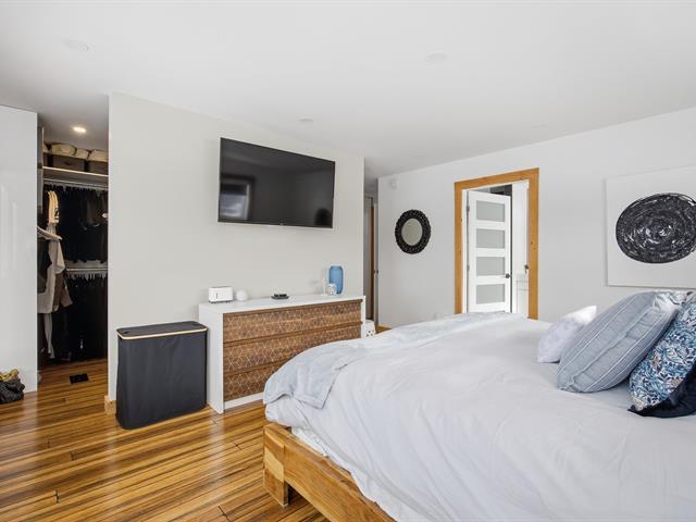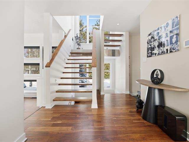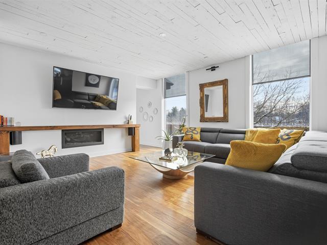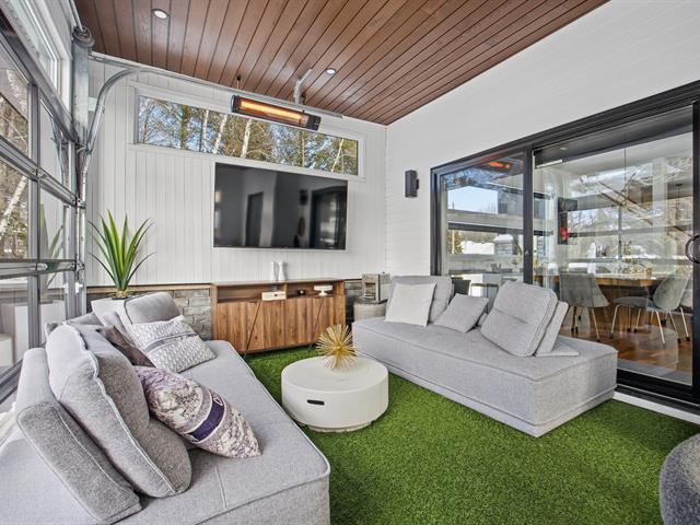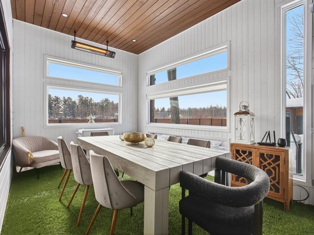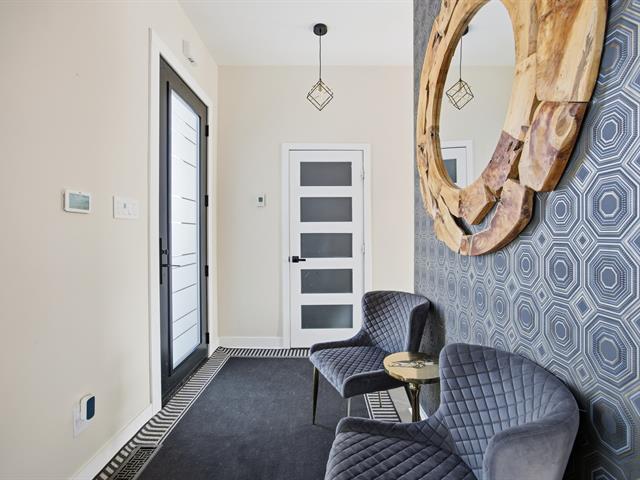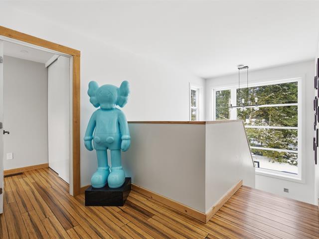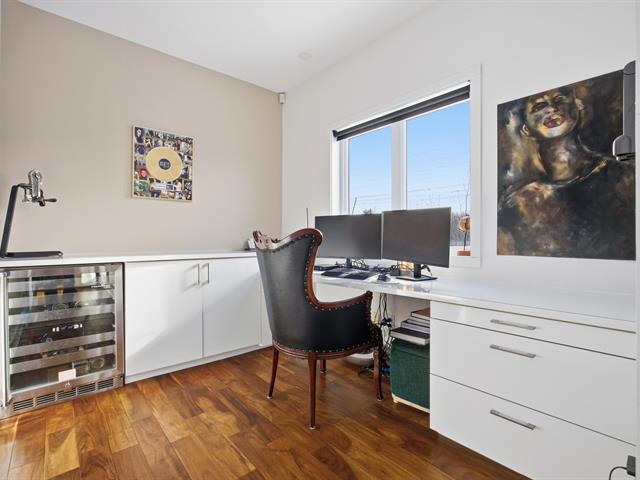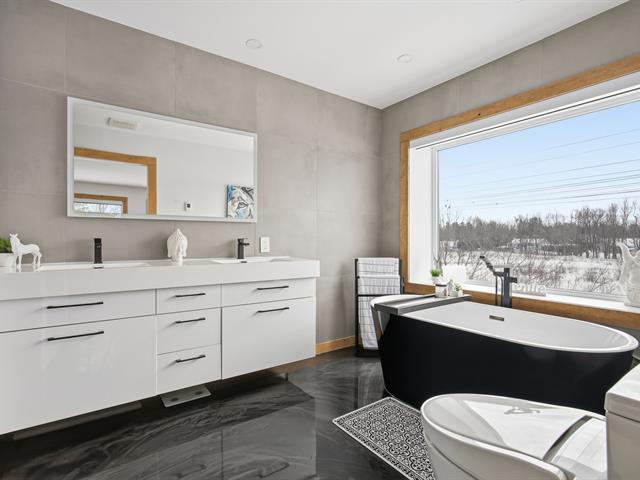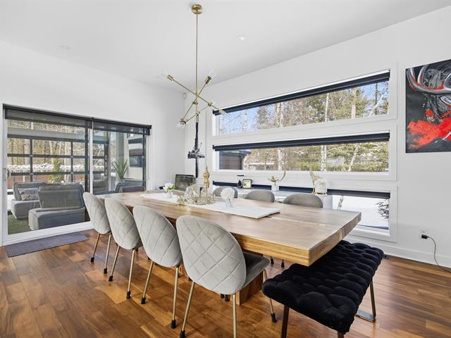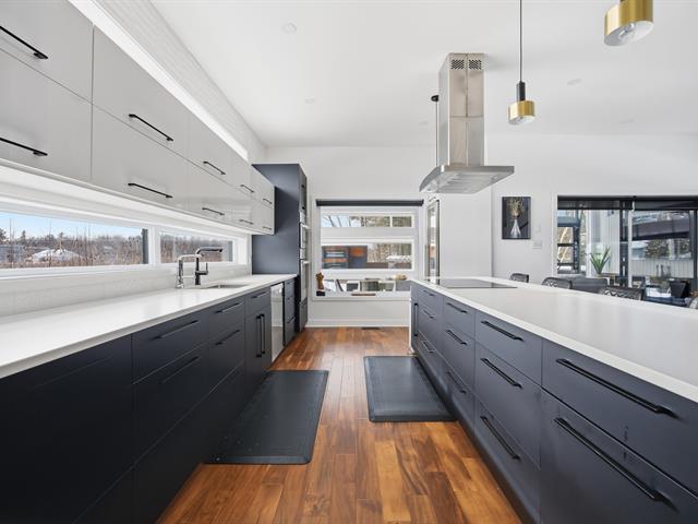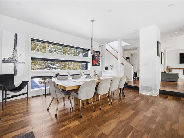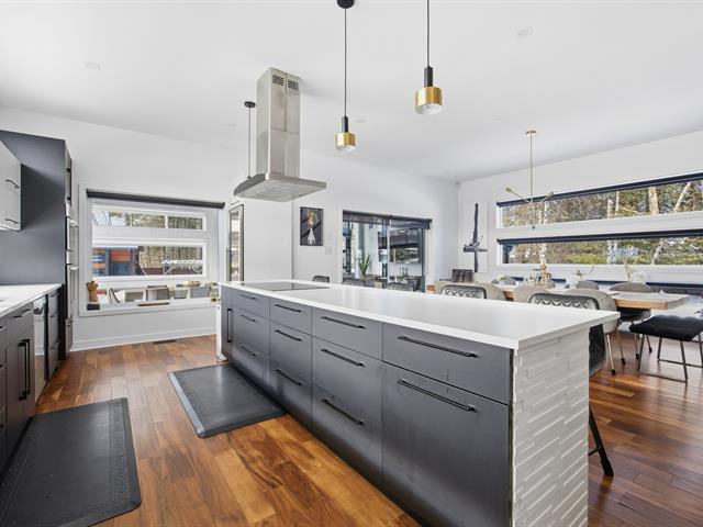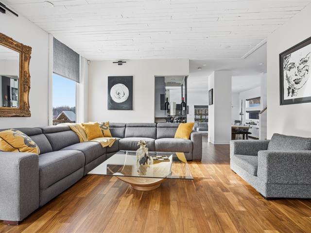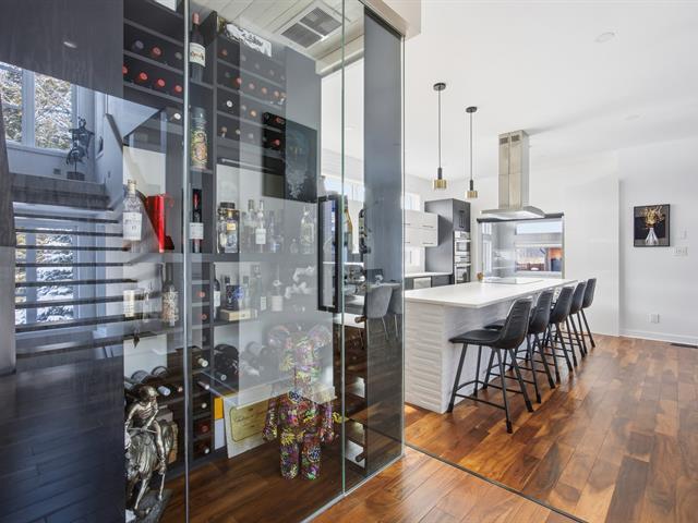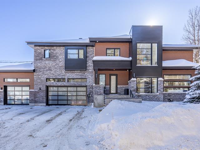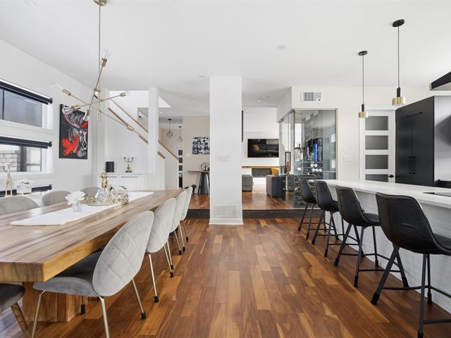 Prestigious bi-generational property in Terrebonne featuring an elegant façade and a spacious interlock driveway leading to three glass-front garages, including one used as a workshop. The main floor offers a bright living room with a built-in fireplace and a contemporary kitchen with a large island, glass wine cellar, and a beautiful veranda opening onto the backyard. Upstairs are five bedrooms and two bathrooms, including a primary suite with heated floors. The fully functional bi-generational suite adds flexibility. Outside, the landscaped backyard with no rear neighbors and a heated saltwater in-ground pool creates a true private haven. (46241480)