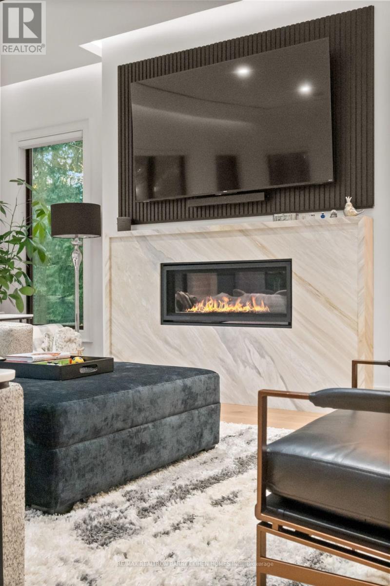 Newly built modern residence in the heart of South Leaside offering nearly 6,500 sq.ft. of living space! Exceptional designer-curated finishes and smart home technology throughout. Designed for the modern family and built to impress, this magazine-worthy residence perfectly blends luxury, functionality, and versatility. Oversized principal rooms, two private home offices, and a full legal in-law suite with income potential make it ideal for multigenerational living or a flexible live-work lifestyle.Showcasing engineered white oak floors, soaring ceilings, and expansive windows with motorized blinds, every detail reflects thoughtful design and quality craftsmanship. The custom kitchen is a true centerpiece - featuring a panelled fridge, trash compactor, waterfall island with hidden storage, and full-height cabinetry - flowing seamlessly into the family room with a marble gas fireplace and walkout to the backyard. Step lighting, integrated speakers, and sleek modern finishes complete the main level's sophisticated aesthetic.Upstairs, four oversized bedrooms include a magazine-worthy primary suite with a slatted wood feature wall access to His & Hers WICs, cove-lit ceiling, fireplace in stone surround, fully equipped bar, walkout to a private balcony (hot tub-ready), and a spa-inspired ensuite with steam shower, freestanding tub, heated floors, and double vanities. Secondary bedrooms are equally impressive, and a dedicated laundry room with dual washer/dryers enhances everyday ease. Upstairs office may be converted to a 5th bedroom.The lower level extends the living experience with a gym, sauna, recreation lounge, and wet bar equipped with a dishwasher and bar fridge - plus a soundproofed legal in-law suite with its own entrance, kitchen, 3-piece bath & laundry.Located in the coveted Bessborough/Rolph school district, this home delivers a rare combination of sophistication, functionality, and future income potential in one of Toronto's most sought-after neighbourhoods. (42079931)
