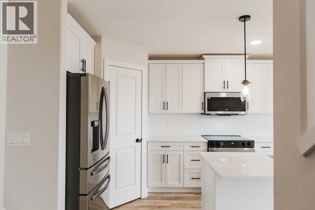 Welcome to the New Evelyn Plan, a fantastic opportunity for first-time home buyers looking for quality, comfort, and long-term value. This thoughtfully designed ½ duplex offers over 1,365 sq ft across two levels with 3 bedrooms, 3 full 4-piece bathrooms, an office nook, and convenient upstairs laundry. The bright open-concept main floor features an island kitchen with quartz countertops, soft-close real wood drawers and cabinets, upgraded stainless steel appliances, and an extra-large walk-in pantry for excellent storage. Built with energy efficiency in mind, the home includes LED lighting, Low-E argon-filled windows, and hot water on demand to help keep utility costs affordable year-round. Enjoy an extra-large backyard backing onto an easement, offering added privacy and space to relax. Located in Bridgewater in Clairmont, this growing community offers abundant green space and is close to a K–8 school, spray park, skate park, walking trails, and numerous parks, along with county property taxes approximately 48% lower than Grande Prairie, saving homeowners thousands per year. This home is currently under construction with completion scheduled for mid-May 2026, giving buyers time to plan and secure an excellent opportunity in a family-friendly neighborhood. ( photos are samples from similar plan and similar specs) (31606707)