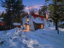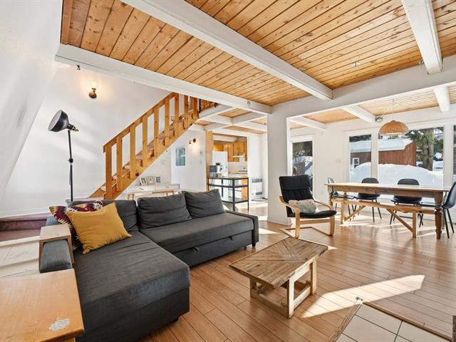Located in the heart of the Domaine Chéribourg, near Mont Orford and Lake Memphremagog, this property offers a sought-after and peaceful natural setting. The main floor features a bright open-concept living area encompassing the kitchen, dining room, living room, and a powder room. The upper floor includes two bedrooms, an office, and a full bathroom, ideal for working from home or for multi-purpose use. Situated on a flat lot surrounded by nature, the property benefits from a heated and insulated shed, perfect for outdoor enthusiasts. A desirable location, ideal as a primary residence or a cottage. (50927101)