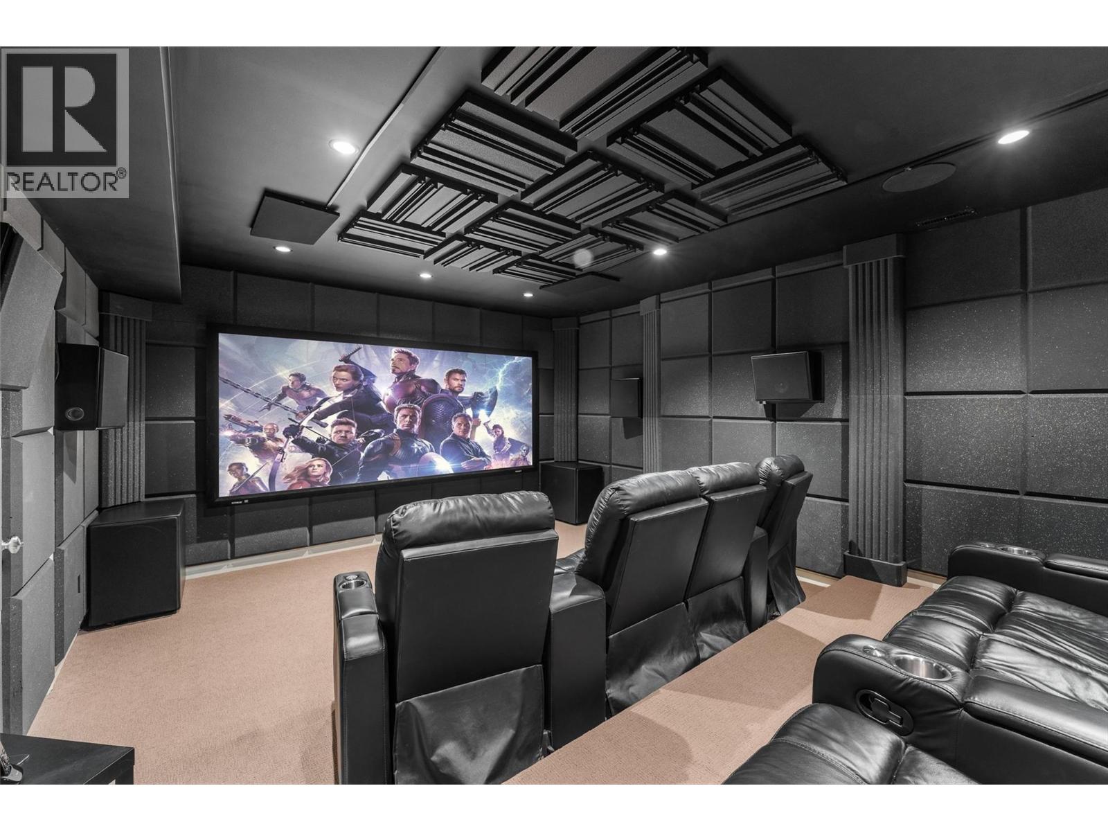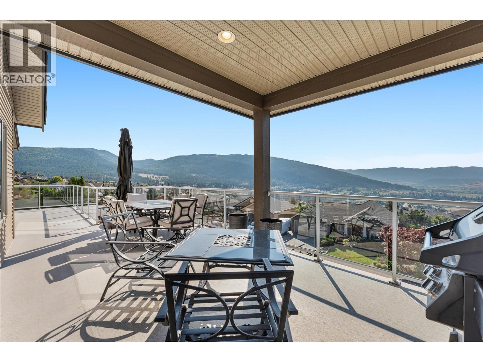 Perched in Vernon's Foothills with sweeping views of Kalamalka, Okanagan & Swan Lakes, mountains, city lights, & the entire valley. Original owners of this refined residence that blends comfort, entertainment & family living & less then 15 minutes from Silver Star Resort or Kalamalka Lake. Freshly painted main level offers open-concept living with a chef’s kitchen featuring a massive island, pantry, & premium appliances. The dining & living areas extend seamlessly to a full-length deck with glass railings, panoramic vistas, & walk-down access to the pool. A stone-surround fireplace anchors the living room, while the primary suite showcases breathtaking views, a walk-in closet, and a spa-inspired ensuite. A second bedroom, 5-piece bath, & laundry with garage access complete this level. A true cinematic experience in this home with better than theatre sound! Custom-built home theatre with professional acoustic treatments; 13.2 Dolby Atmos surround sound, 4K projector, over 10ft. screen & tiered recliner seating. The lower level is designed for relaxation & entertainment with a stylish bar, office, 2 guest bedrooms, a 3-piece bath, & easy access to the pool. Outside enjoy a resort-style retreat with an app-controlled saltwater pool with slide, hot tub, covered lounge, & cedar privacy. Double garage EV ready & built-in shelving. HVAC include central vac, a WaterFurnace Synergy system, water filtration, & geothermal heating/cooling. (39698067)