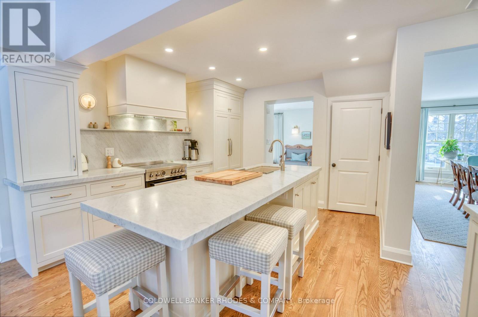 Stunning 3+1 bedroom home in New Edinburgh with exquisite upgrades that showcase exceptional care and quality craftsmanship throughout. Completely gutted and upgraded with foam insulation in 2008, along with a new addition. A bright, welcoming entry showcases the open concept layout. The expanded living/great room, designed to follow the lot line, features custom Bloomsbury cabinetry and cozy gas fireplace. The chef's kitchen is a true highlight, offering full custom Bloomsbury cabinetry, high-end appliances including Miele dishwasher, Fisher & Paykel fridge, and Bertazzoni induction stove, along with a built-in breakfast bar and eating area. The eating area attaches to the den, which showcases Bloomsbury built ins and provides direct backyard access. A functional mudroom provides access to double-car garage, as well as a convenient powder room. Separate formal dining room with plenty of natural light completes the main level. Upstairs, a dressing room with a wall of closets leads to the primary suite, featuring a luxurious 5-piece ensuite. The second bedroom (currently used as a family room) can easily be converted back into two bedrooms, with separated wiring still in place. A third bedroom and 4-piece bathroom complete this level. Fully finished basement (2017) provides excellent additional living space, ideal as a teenager's retreat or nanny suite. It includes a recreation room with laminate flooring, a fourth bedroom, 3-piece bathroom, and ample storage. Outside, the professionally landscaped backyard offers a private retreat and includes a shed. Ideally situated in the heart of the highly sought-after New Edinburgh community, this home is just steps to the vibrant shops, cafés, and restaurants of Beechwood Avenue, beautiful river pathways, and nearby parks. It is within walking distance to some of Ottawa's most respected schools, including Elmwood Private School and Ashbury College, and offers easy access to downtown, embassies, and community amenities. (42081170)