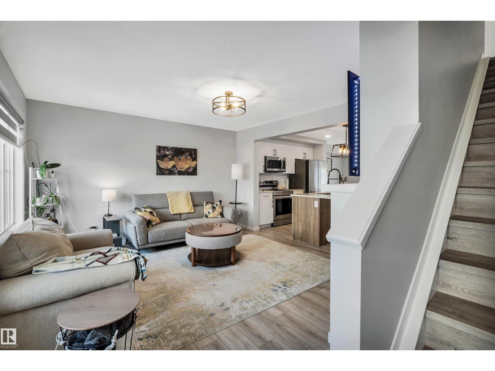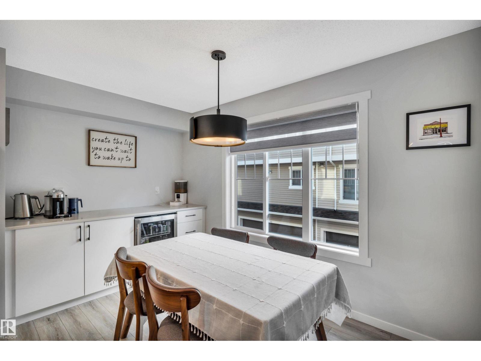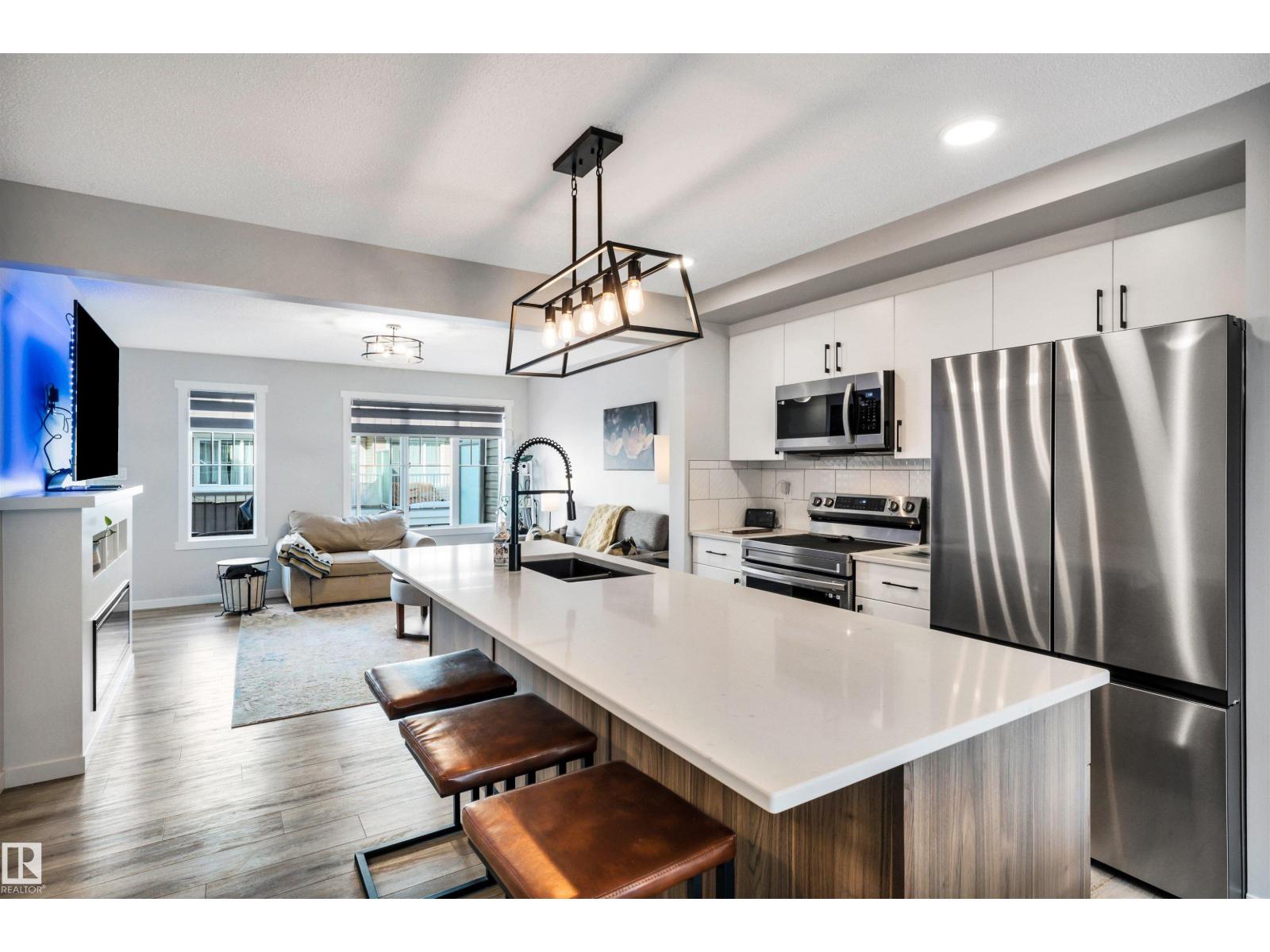 Modern 1408 sq. ft. 3 storey townhouse is in immaculate condition! The owners carefully planned every upgrade to maximize comfort, quality and long-term enjoyment. No carpet here, vinyl plank flooring throughout! Stunning kitchen with upgraded quartz countertops, soft close drawers & cabinets and upgraded stainless steel appliances. The dining room has a built-in coffee bar plus a mini fridge and a walk-in pantry. The living room has an electric fireplace and large windows. Balcony off the living room is perfect to BBQ or enjoy your morning coffee. There are 2 primary bedrooms on the 3rd floor, each with their own walk-in closet and ensuite featuring granite counters, heated towel racks and LED lit mirrors! Zebra blinds throughout the unit. A main floor flex room and access to the double attached garage complete this home. Central A/C and vacuum. Quiet location with shopping, walking trails and a pond nearby. (33795820)
