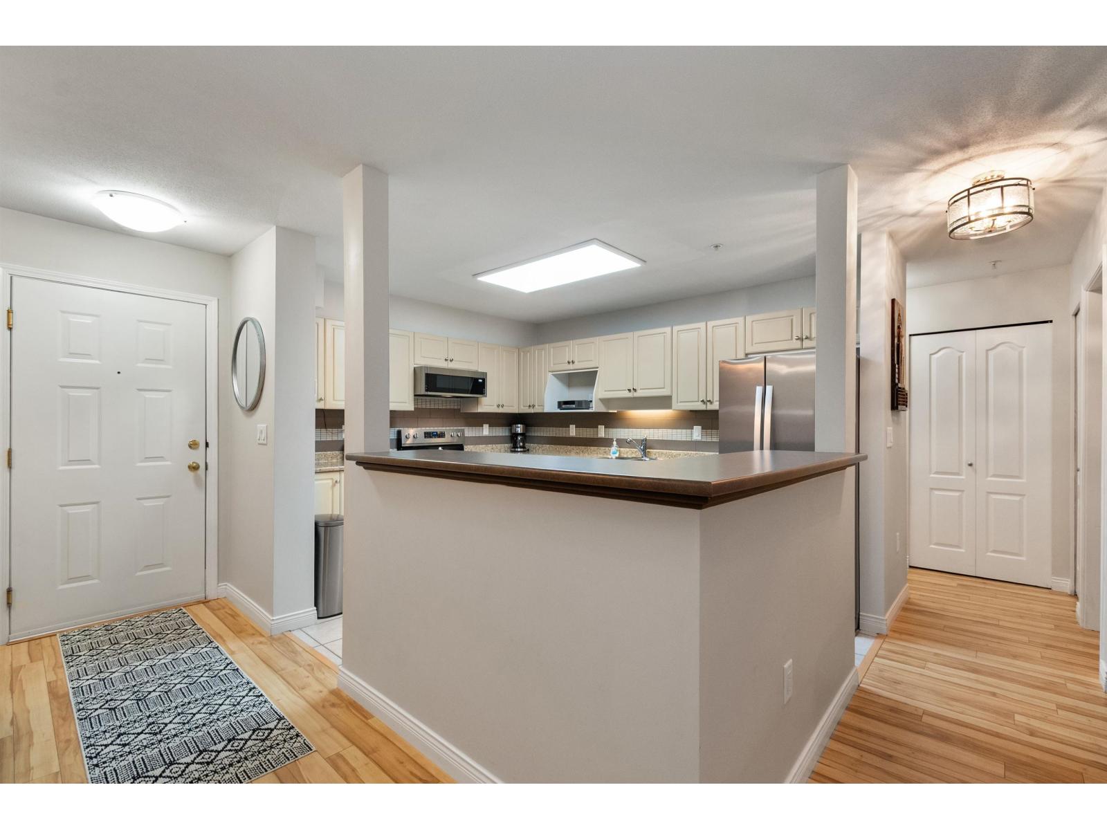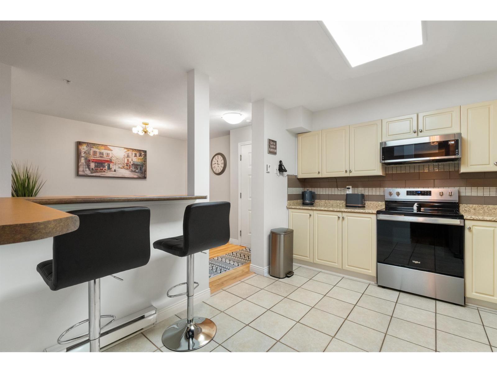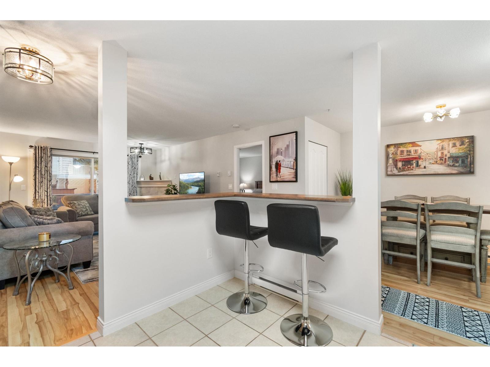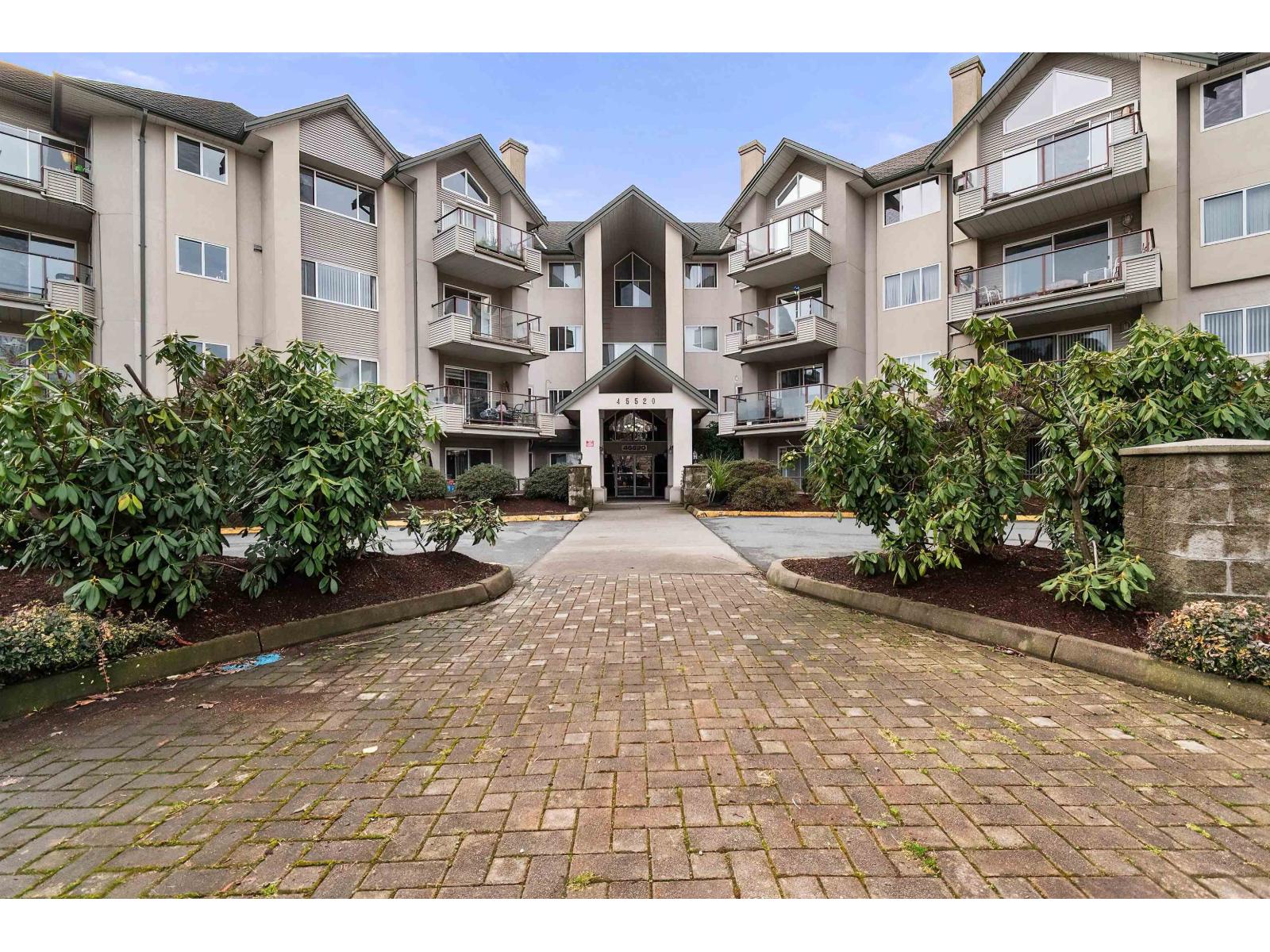 Welcome to The Morningside. This spacious 980 sq.ft. ground-floor unit features a well-designed 2-bedroom, 2-bathroom layout and is positioned on the quiet side away from street noise and features a functional open-concept layout, a large kitchen for those who love to cook, cozy gas fireplace in the living room. Step outside to a covered patio, perfect for relaxing year-round. Enjoy the convenience of walking distance to shopping, dining, Cottonwood Mall, transit, and nearby walking trails, plus easy hwy 1 access for commuters. Complete with in-suite laundry, storage locker and secure underground parking. A fantastic opportunity in a prime location in Sardis. The Morningside is a clean, well-run, professionally managed strata with many long-term owner-occupants. (32410270)