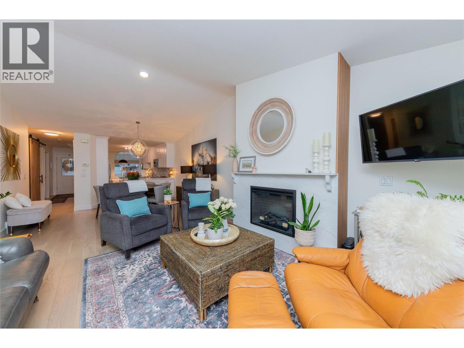 A special opportunity to seize! This fully updated, open-concept 3 bedroom + den, rancher-style townhouse, w/ fully finished basement feels like home. Located in well-maintained 55+ community offering excellent guest parking. The quality is in the finishing touches - from solid wood doors, custom feature walls, eng hw floors, custom tile and cabinetry - it must be seen to fully appreciate. The bright kitch has extra storage, backsplash, and s/s appliances, plus a convenient breakfast nook w/ large windows that create a warm atmosphere. The lvg room is highlighted by a quartz FP w/ wood feat wall and opens to a spacious patio w/ access to grassed area - perfect for enjoying without the upkeep. The main lvl is designed for easy living and incl laundry, 2 bdrms, incl primary suite w/ WI closet and ensuite. The stylish main bath and ensuite feat custom vanities and tile, and modern fixtures. Downstairs offers full ceiling height w/ a lrg fam room, 3rd bdrm, den or office, full bath, and storage - perfect for visiting family, hobbies, or flexible living space. Recent upgrades incl eng hw floors, paint and BB, wood interior doors and closet doors, and improved insul and plumbing throughout. Parking is effortless with a single garage feat built-in storage and epoxy coated floors, plus 2 add parking spots. This move-in-ready home offers a comfortable, low-maintenance lifestyle in a quiet, friendly community close to shops and amen - ideal those looking to downsize without compromise. (39698811)