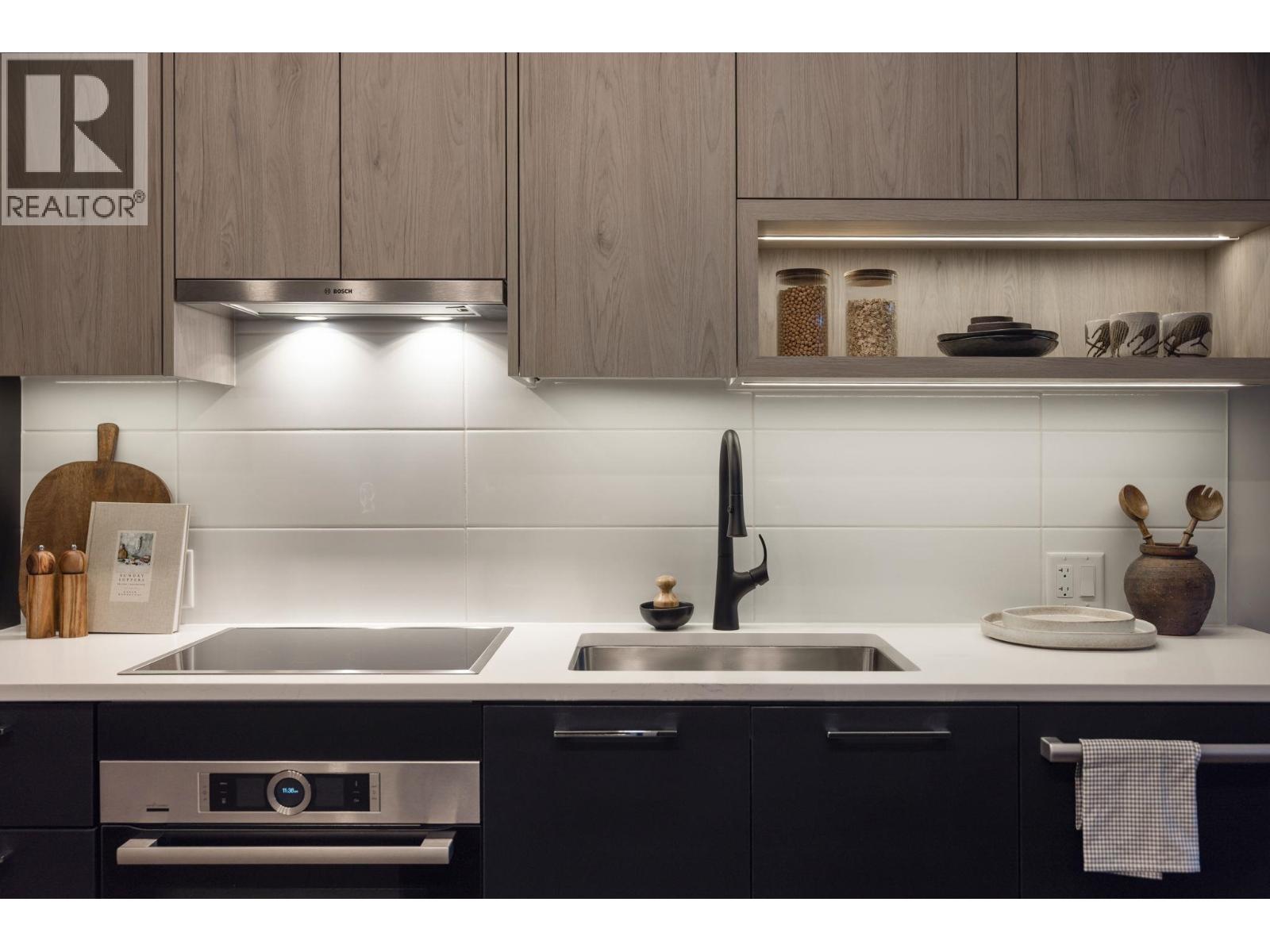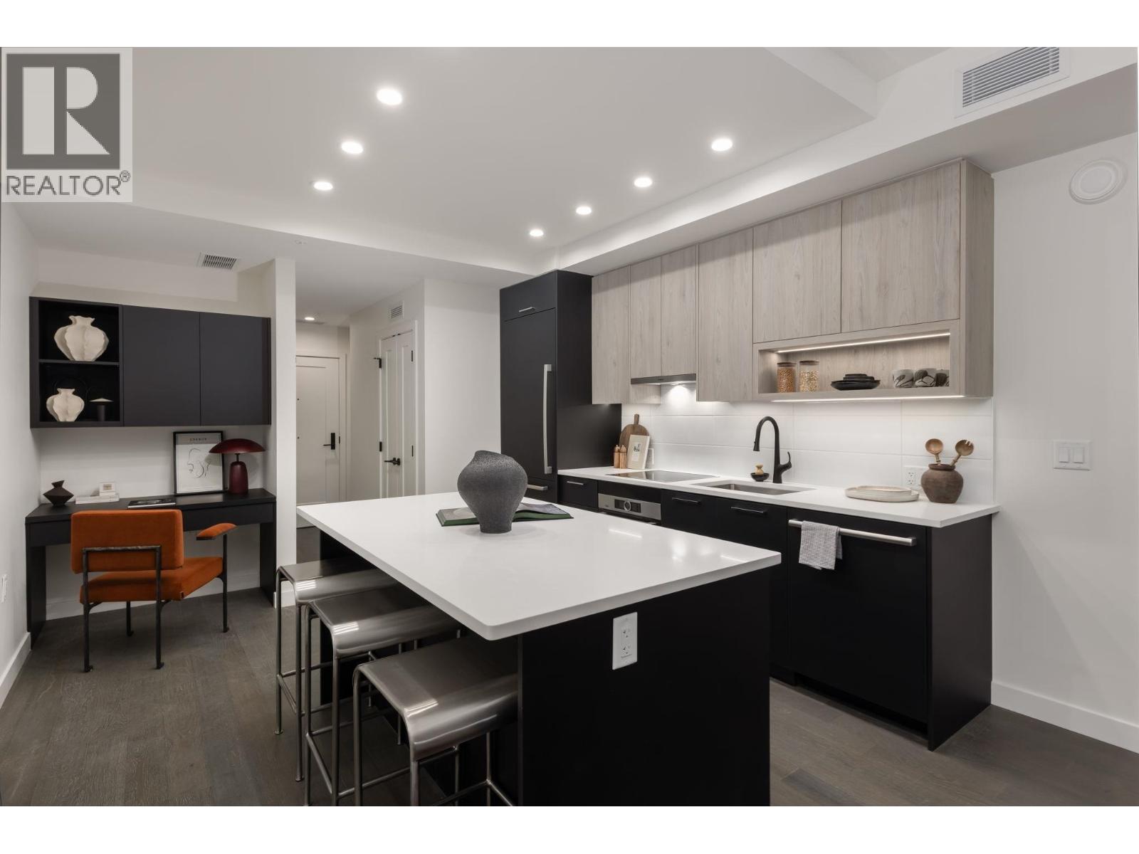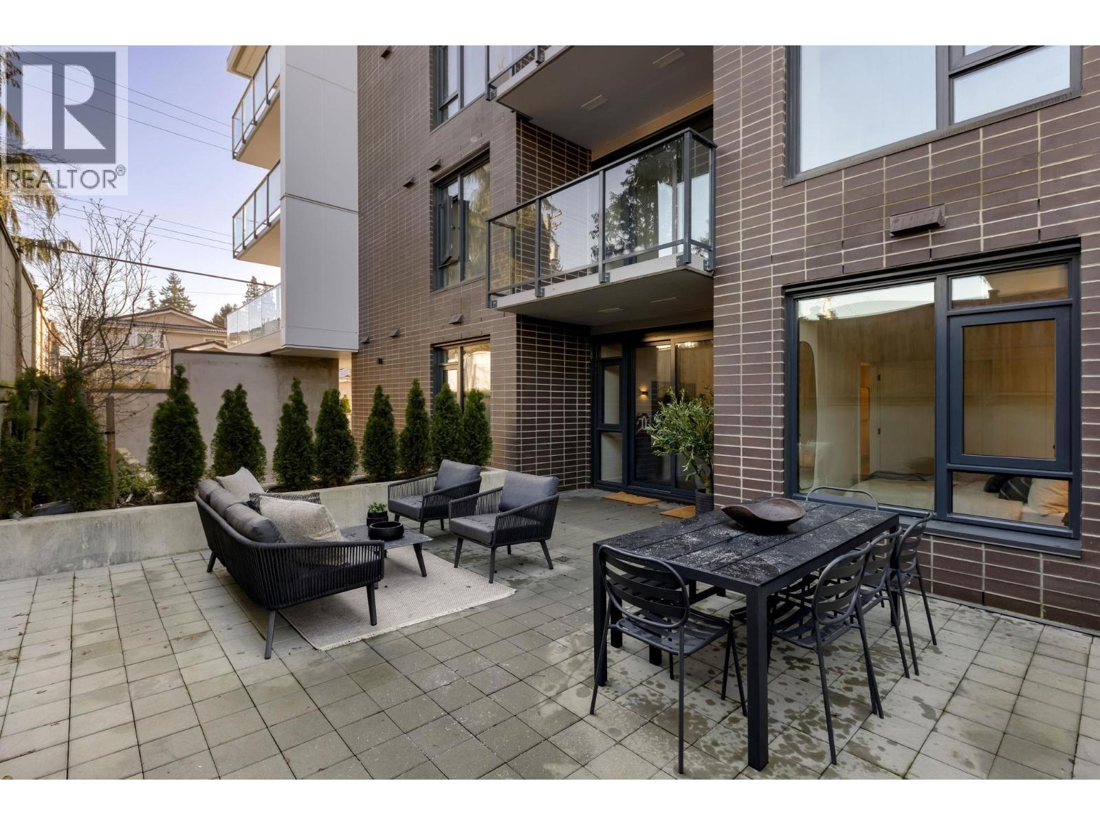This beautifully designed 1-bedroom + den ground-level home offers a smart, functional layout and an exceptional 414 square ft private walkout patio for year-round living and entertaining. Floor-to-ceiling windows bring in natural light, while the kitchen features smart storage, a dining island, and a full-size 30" integrated Bosch appliance package with. 9' ceilings, engineered hardwood, A/C, and a full-sized LG washer and dryer complete the home. Located in South Oak, near Marine Gateway and Oakridge Centre for shopping and dining. Open house on Feb 7 and 8 between 1-4pm. Please call and ask about our limited-time incentives. (32410628)