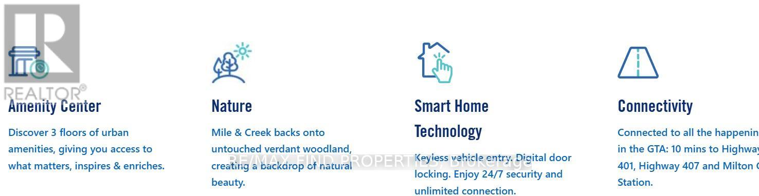 Welcome to Mile & Creek by Mattamy Homes Be the first to live in this new 2-bedroom and den unit. Mile & Creek by Mattamy Homes is a master-planned community that exemplifies modern living nestled within vibrant Milton. The residences feature 9-foot ceilings, complemented by an abundance of natural light, creating an inviting and airy atmosphere throughout. Open-Concept Living Spaces The kitchen, dining, and living areas are seamlessly integrated in an open-concept layout, ideal for both everyday living and entertaining guests. Contemporary finishes, pot lights, and undercabinet lighting enhance these spaces, establishing a warm and modern environment perfect for any occasion. A well-proportioned den serves as an ideal nook for a home office or study area, designed to maximize functionality without encroaching on the main living space. In the foyer, a frameless mirrored sliding door not only offers added functionality but also introduces a sleek, modern accent to the home's entryway. The primary bedroom is a tranquil retreat, highlighted by a contemporary walk-in shower. The main bathroom is thoughtfully done with a full contemporary package, ensuring a cohesive and polished design throughout the home. Community Amenities and Surroundings Set within a dynamic and emerging community, Mile & Creek offers residents access to protected green spaces and a network of trail systems. Curated amenities include a fitness studio, co-working lounge, and inviting social spaces, all purposefully designed to support and enhance modern lifestyles. (42082443)