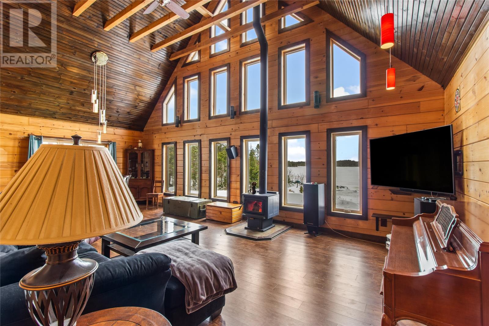 Custom-built by Adventure Log Homes, this extraordinary property is positioned on highly sought-after Grand Pond (just 2 km off the highway), offering a rare blend of refined craftsmanship, natural beauty, and timeless luxury. Inside, the home showcases striking two-tone wood finishes throughout, creating warmth, depth, and architectural interest. The porch welcomes you with a coat closet, laundry area, and full bathroom. The main level is designed for both everyday comfort and upscale entertaining, featuring a bright open-concept layout with soaring windows that frame breathtaking pond views. The kitchen is both elegant and functional, highlighted by an island with cooktop and bar fridge, flowing seamlessly into the dining area and the living room. Here, a cozy wood stove anchors the space, creating an inviting atmosphere while the many windows bring the outdoors in. The primary bedroom is conveniently located on the main floor and offers a private retreat complete with full ensuite. The loft level features two spacious bedrooms, a full bathroom, and a generous landing area ideal for a sitting lounge, games space, or home office — all overlooking the tranquil water below, enhancing the home’s serene and luxurious ambiance. Set on a large, private lot with direct pond frontage and access, this property is designed for elevated outdoor living. Enjoy your own wharf and launching area, along with additional space to relax and take in the scenery. A 25x25 detached garage offers ample room for vehicles, recreational toys, and storage, complemented by a separate shed. Additional premium features include a durable tin roof, artesian well, and countless custom design details throughout. Elegant, peaceful, and impeccably crafted, this exceptional waterfront log home delivers a luxury lifestyle rarely found. As per Seller Direction there will be no conveyance of offers prior to 4pm Feb 9th offers to be left open for consideration until 9pm Feb 9th. (30618673)