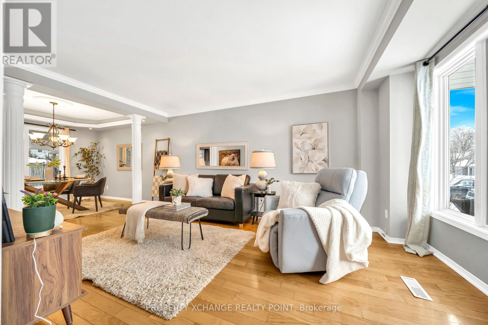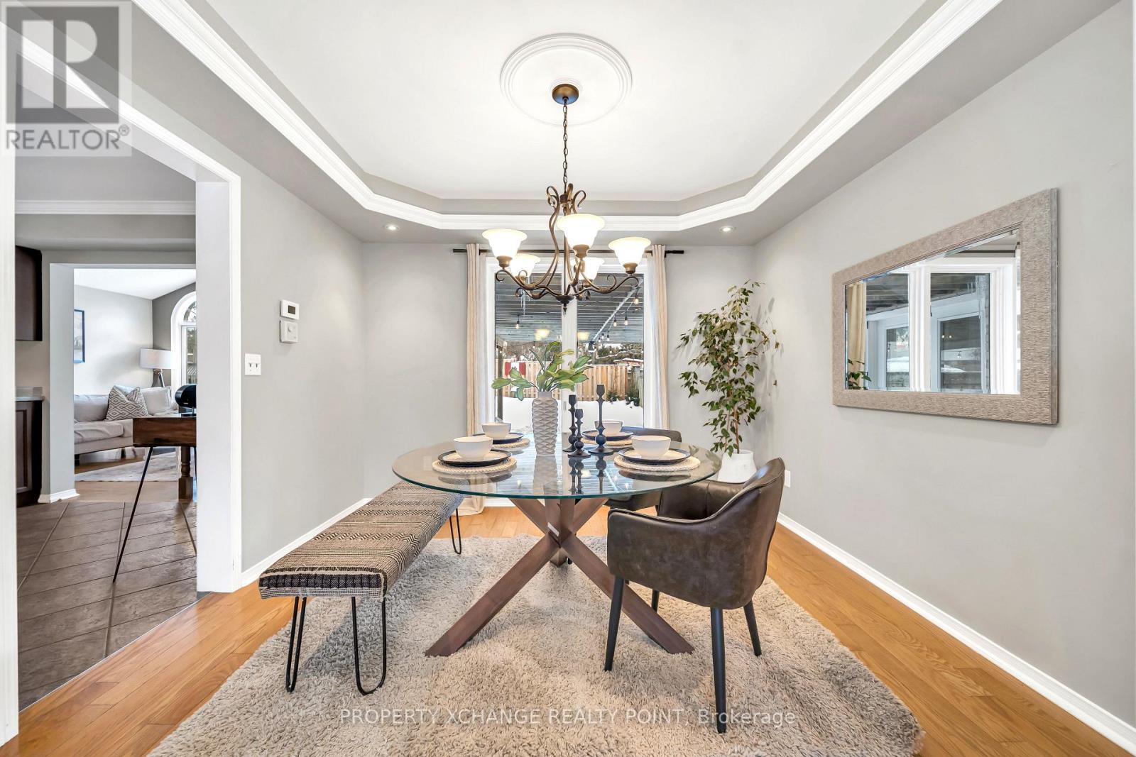 Situated in one of Oshawa's most established and desirable neighbourhoods, 1213 Corsica Avenue offers a thoughtfully maintained family home designed for comfort and flexible living. With 3+2 bedrooms and 4 bathrooms, the layout is ideal for multi-generational or blended families. The main level showcases a bright, open-concept design where the kitchen overlooks the family room, complemented by cathedral ceilings that create an airy, welcoming feel. A separate living and dining area featuring crown moulding and coffered ceilings adds classic elegance, while main-floor laundry with convenient garage access supports everyday functionality. Upstairs, three generously sized bedrooms with hardwood flooring provide comfortable personal space, and the finished basement extends the living area with two additional bedrooms, a full bathroom, a spacious recreation room, and ample storage. The backyard is beautifully landscaped and includes a pergola and patio, offering an inviting setting for outdoor relaxation or entertaining. Parking is plentiful with a four-car driveway plus garage. Close to excellent schools including Vincent Massey Public School, Walter E. Harris Public School, Eastdale Collegiate & Vocational Institute, and St. John XXIII Catholic School, as well as nearby parks, shopping, and transit, this home combines space, practicality, and location in a family-friendly community. (42082858)
