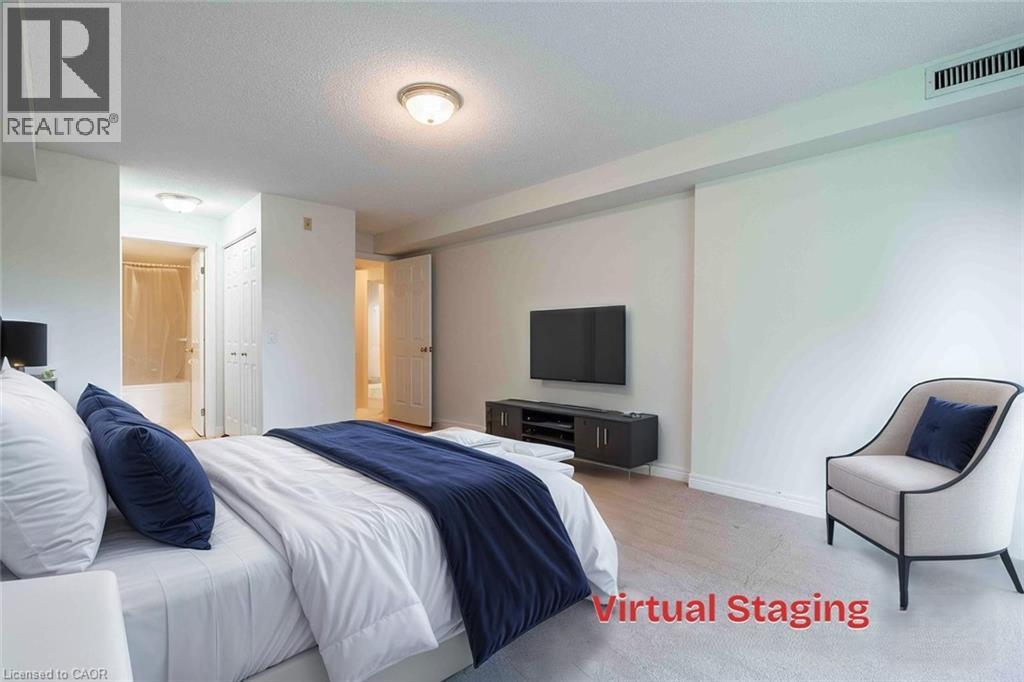 Spacious and bright, this 2-bedroom, 2-bath condo in the heart of Ancaster’s Meadowlands offers over 1,150 sq ft of comfortable living with a smart layout and plenty of natural light. The living room features a cozy gas fireplace and opens to a private balcony with a quiet treed view — a rare, calming backdrop in the community. The primary bedroom includes a full ensuite with a soaker tub, while the second bathroom is finished with a walk-in shower. Freshly painted walls add a modern touch, with plenty of room to personalize. Set on the preferred second floor, this home provides a safe and accessible option for downsizers and retirees alike. The well-managed building includes an underground parking space with a private storage locker located directly behind, as well as amenities such as a car wash bay, workshop, seasonal storage, party room, gazebo, and ample visitor parking. A walking path just steps from the property leads to a landscaped reservoir area with trails and greenery, perfect for a morning walk or evening stroll. Condo fees conveniently include water, building insurance, and all exterior maintenance. Located just steps from shops, restaurants, Costco, Shoppers Drug Mart, and more, this condo combines everyday convenience with peace and quiet — an excellent opportunity in a highly sought-after Ancaster location. (70127434)