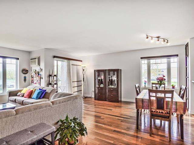 Place du Souvenir, a large, bright 4 1/2 condo, corner unit on the 2nd floor, large balcony with outdoor parking, open concept living and dining room with lots of windows (on three sides), two good sized bedrooms, bathroom with separate bath and shower. Visitor parking. Superb location in a highly sought-after area of Laval. The building is located on a very quiet street that ends in a cul-de-sac. Close to Centropolis, Montmorency Metro, Carrefour-Laval, Centre Laval, future Carré-Laval, Cegep, schools, highways 15 and 440 (44978562)