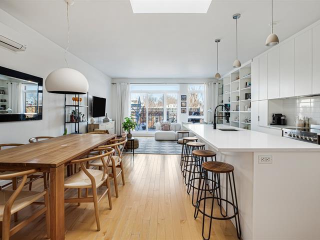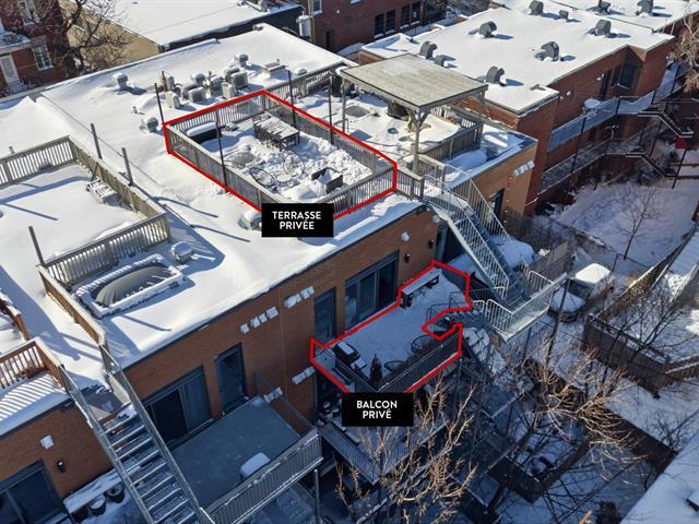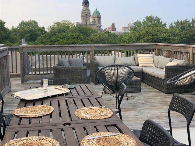 In the heart of Mile-End, at the corner of Clark and Laurier, this bright two bedroom unit stands out with its expansive private rooftop terrace offering panoramic views of Mount Royal, in addition to a private balcony. Open-concept living space filled with natural light, modern kitchen with large island, private storage, and possibility of a street parking permit. Just steps from Mount Royal Park, cafés, restaurants, and local shops. (51068329)