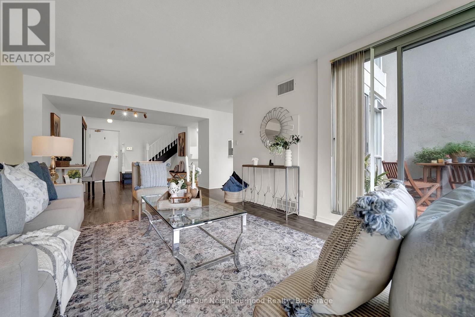 Welcome to 25 Cumberland Lane - a stunning 2-storey condo unit located steps from the waterfront in Ajax. Offering over 1,200 sq. ft. of beautifully updated living space, this home combines the convenience of condo living with the comfort and privacy of a townhouse layout.The main floor features a bright open-concept living and dining area with wall-to-wall windows and sliding doors that lead to your very own expansive private terrace. Talk about a gardeners dream and the perfect outdoor oasis for dining, entertaining, or simply enjoying the serene lake views. The modern kitchen is equipped with white shaker cabinetry, quartz counters, stainless steel appliances, and a convenient breakfast bar, flowing seamlessly into the dining space. Upstairs, the spacious primary retreat offers a sitting area, walk-in closet, and a spa-inspired ensuite with a sleek glass shower. The second bedroom is filled with natural light and ample closet space, with easy access to the second updated bathroom. For added convenience, the home includes in-suite laundry and ample storage throughout. Residents enjoy resort-style amenities such as an indoor pool, hot tub, fitness centre, party room, library/games room, and secure underground parking included with the unit. This prime Ajax location offers the best of both worlds - just steps from Lake Ontario, parks, and trails, while still being minutes from shops, restaurants, transit, and the 401. Experience a lifestyle where every day feels like a getaway in this move-in ready waterfront home. (42083864)
