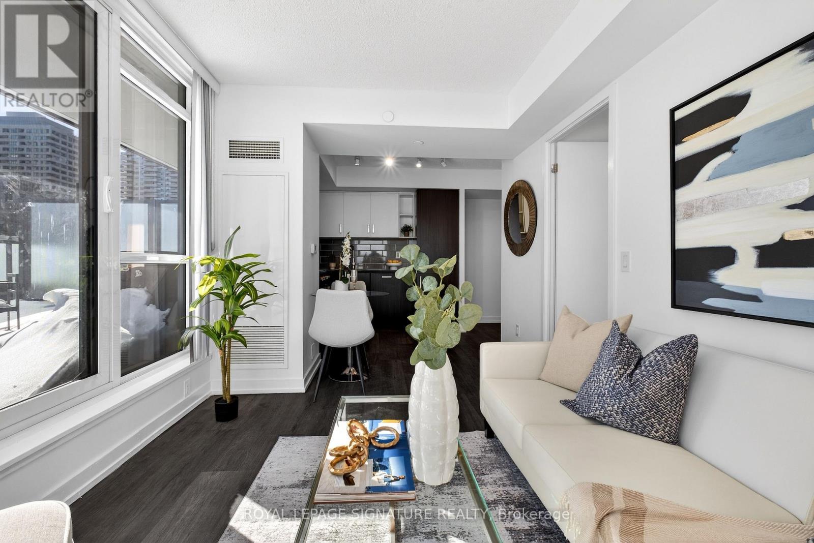 A rare corner 1+Den at The Eglinton by Menkes offering 603 sq ft plus an incredible 400 sq ft private terrace-perfect for summer entertaining. Smart layout with an enclosed den that functions as a second bedroom, laminate flooring throughout, quartz countertops, and porcelain backsplash. Walk out to your expansive outdoor space and enjoy unbeatable convenience steps to the future LRT, Yonge subway, Eglinton Centre, Loblaws, and LCBO, Exceptional amenities include a fully equipped gym, yoga room, wireless lounge with private pods, and a multi-purpose park. (42084024)