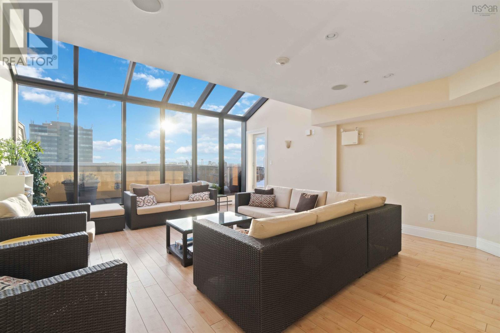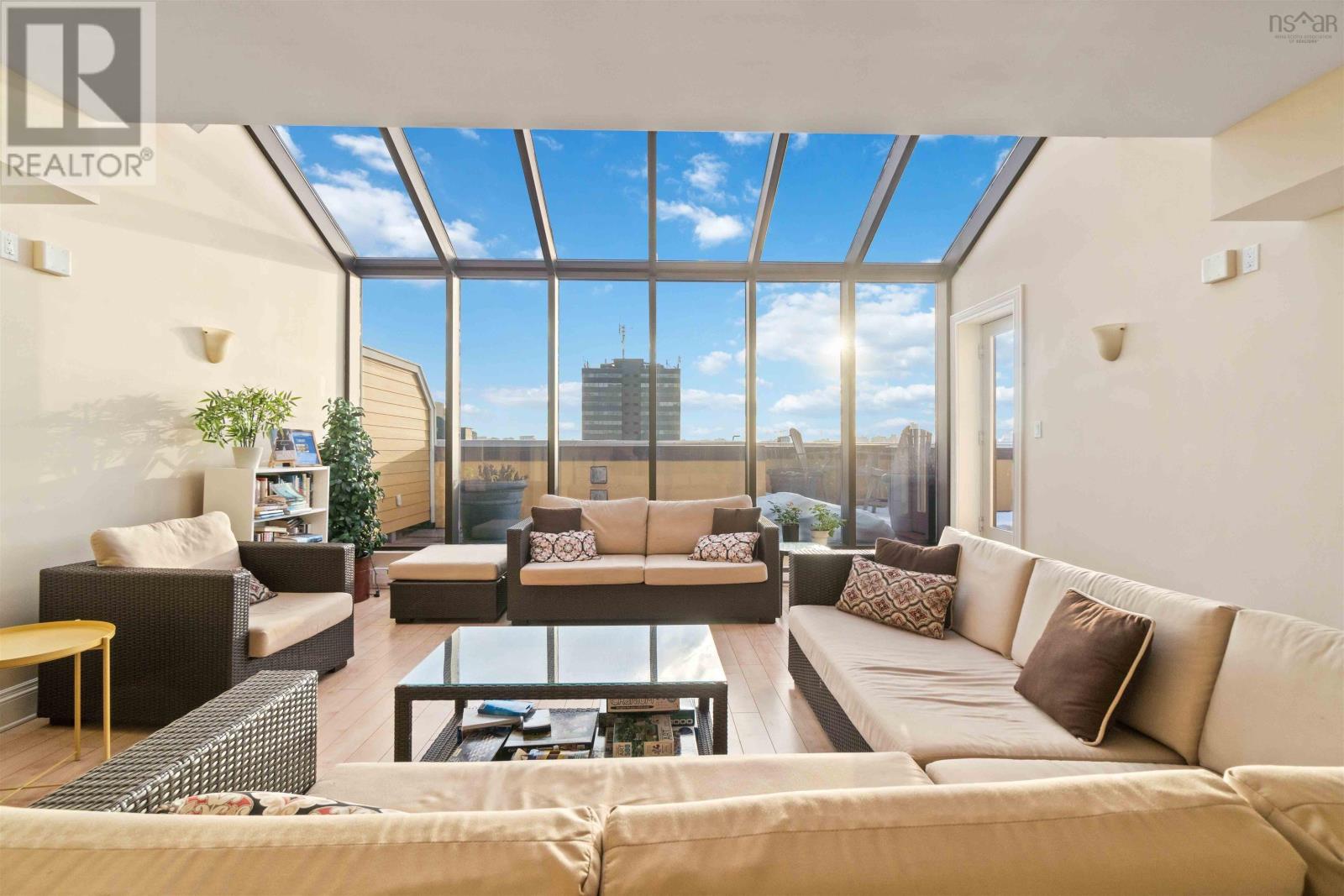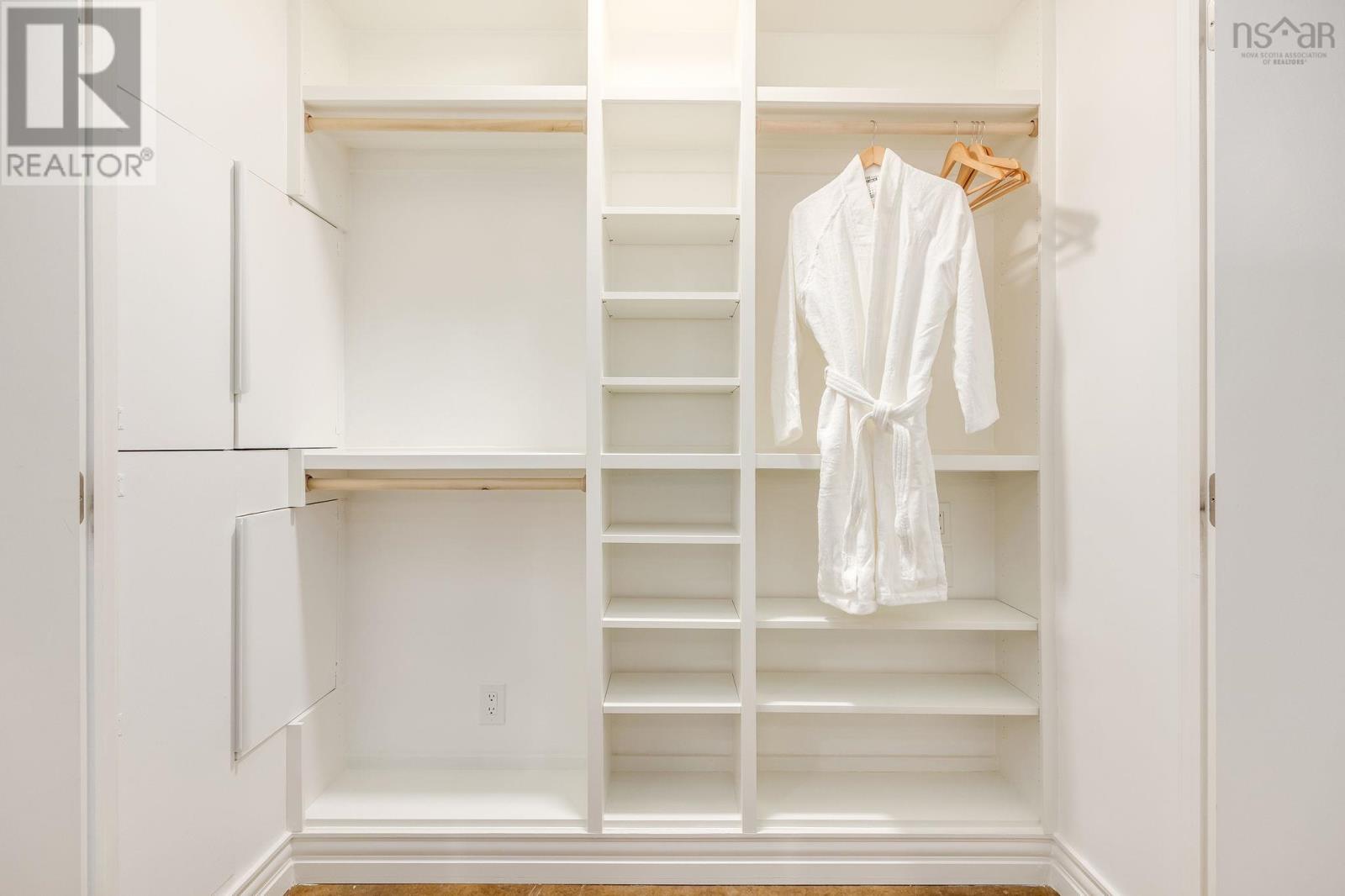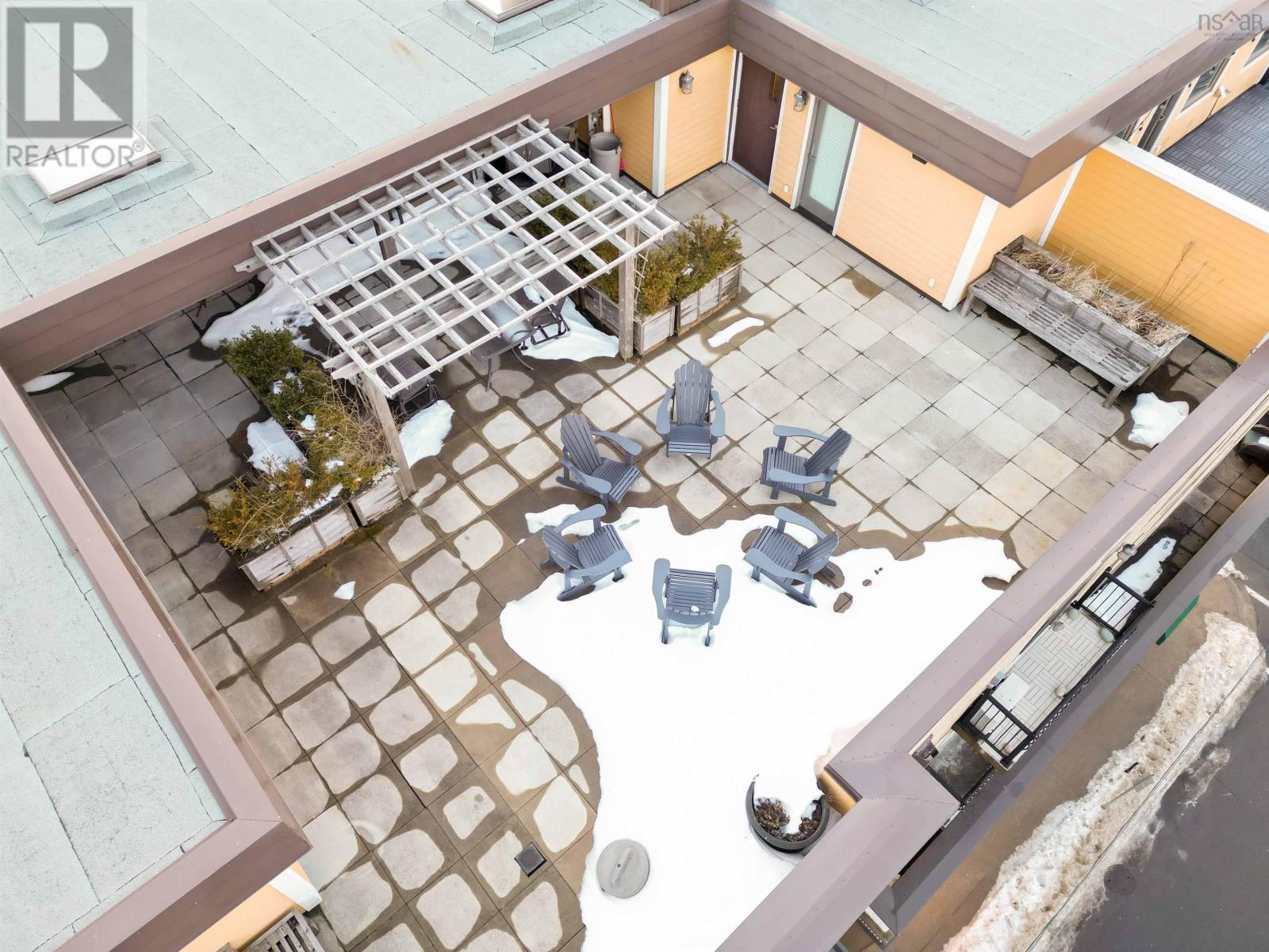 Welcome to one of the most sought-after buildings and locations in Dartmouth: Founders Corner. The only studio in the building, this suite offers a lifestyle of luxury and convenience, and is perfect for downsizers, city weekenders, young professionals, or investors. With polished concrete floors in an antique finish, 9-foot ceilings, and concrete and brick columns throughout, the style of this condo is undeniable. The main area features an open-concept design with a kitchen, dining nook, living room, built-in wall bed with lighting and a bookcase, new large custom walk-in closet, large four-piece bath, and a new in-suite LG washer/dryer with heat pump technology. The large French patio doors to the quaint Juliet balcony allow in lots of natural light, while the all new dimmable LED fixtures throughout and natural gas fireplace will also set the mood on cold winter nights. The newly renovated kitchen features all new appliances, freshly painted cabinetry, new hardware, faucet, shiplap, backsplash, and trim. The kitchen and bathroom both feature stone countertops. Radiant in-floor heating and a new Fujitsu ductless heat pump keep you comfortable all year round. Leased parking space is available just across the street. Amenities include an extra-large storage unit, elevator, security, live-in super, and the building is pet-friendly. The rooftop patio and solarium, with gardens, boast stunning views and provide plenty of room for entertaining or relaxing outdoors with friends and family. There's also a social room with a library and board games. Located above Two If By Sea Cafe and Yeah Yeah's Pizza, you're also close to several other Downtown Dartmouth hotspots as well as the ferry terminal, Brightwood Golf Club, paddling clubs, and Sullivan's Pond. On Saturday mornings, just a short walk away, you can grab fresh whole foods from the Farmer's Market at Alderney Landing or hop the Dartmouth Ferry to Pier 1 or Brewery Markets. (231927384)