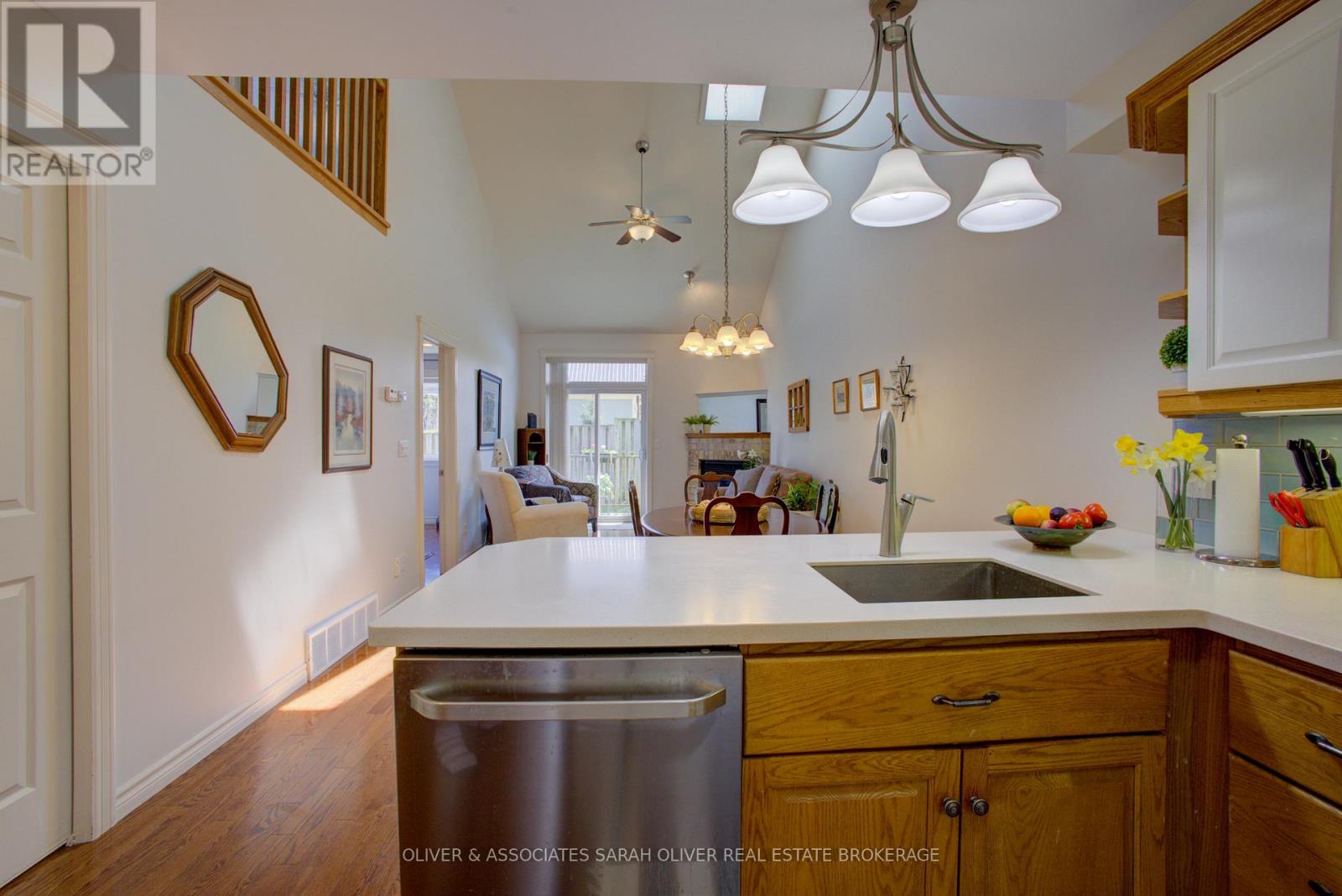 Step into easy, coastal living with this bright and cheerful condo townhome, tucked just a short walk less than two blocks from the stunning shores of Lake Huron. With only 11 homes in this quiet, well-kept community, you'll enjoy peaceful surroundings and walkable access to Kincardine's beaches, scenic trails, charming downtown, and lively year-round events. Inside, the impressive 16-foot ceiling in the foyer sets the tone for a space that feels open, fresh, and full of natural light an ideal blend of comfort and thoughtful design. It features 2 bedrooms, 3.5 bathrooms, a convenient main floor laundry, and a versatile loft that overlooks the living room and foyer. The comfortable living and dining areas boast a cathedral ceiling and a cozy gas fireplace, leading out to an outdoor area perfect for gatherings. This home is thoughtfully designed for easy one-level living and has been extensively updated in recent years. Upgrades include: The only unit in the complex with a skylight, offering more natural light. (January 2026) Brand new High Efficiency Furnace installed, (2022) Efficient 60-gallon water heater, (2023) Roof shingles replaced. One of the only units in the complex with a fully finished basement, built-in storage, and a 3-piece bathroom. Common elements are exterior components, landscaping / snow & building insurance. Don't miss your chance! Schedule your viewing today! (42084573)
