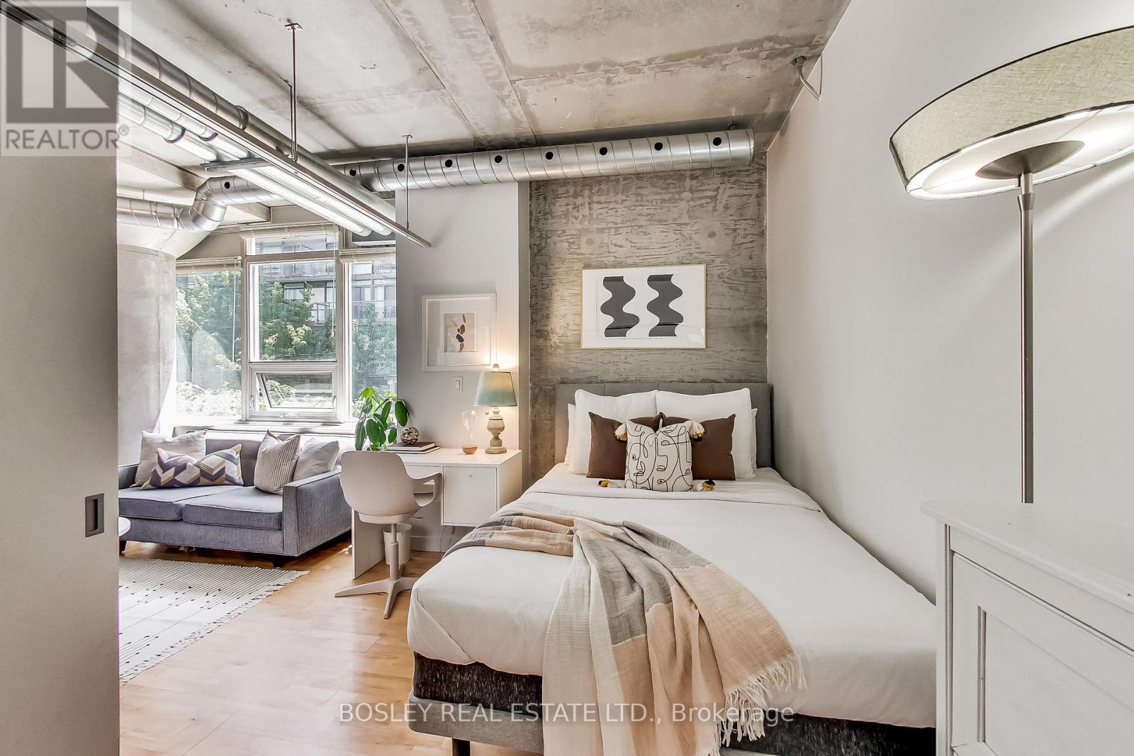 Welcome to the Stewart Lofts! Rarely Available Boutique 1 Bed Loft in the Heart of the Fashion District, at King and Bathurst. Bright, South Facing Floor Plan Featuring 10ft Ceilings with Exposed Ductwork, Huge Bedroom Closet, Gas Stove and Oversized Entry Closet. New Dishwasher (2025), New Washer/Dryer (2025). Located Across from1Hotel and a 1 Minute Walk to the Dog Park. Steps to 24hr TTC, Shopping, Cafes, Parks, Restaurants &Entertainment Right Outside Your Door! Walk Score of 98, Don't Miss Out!! (42084738)