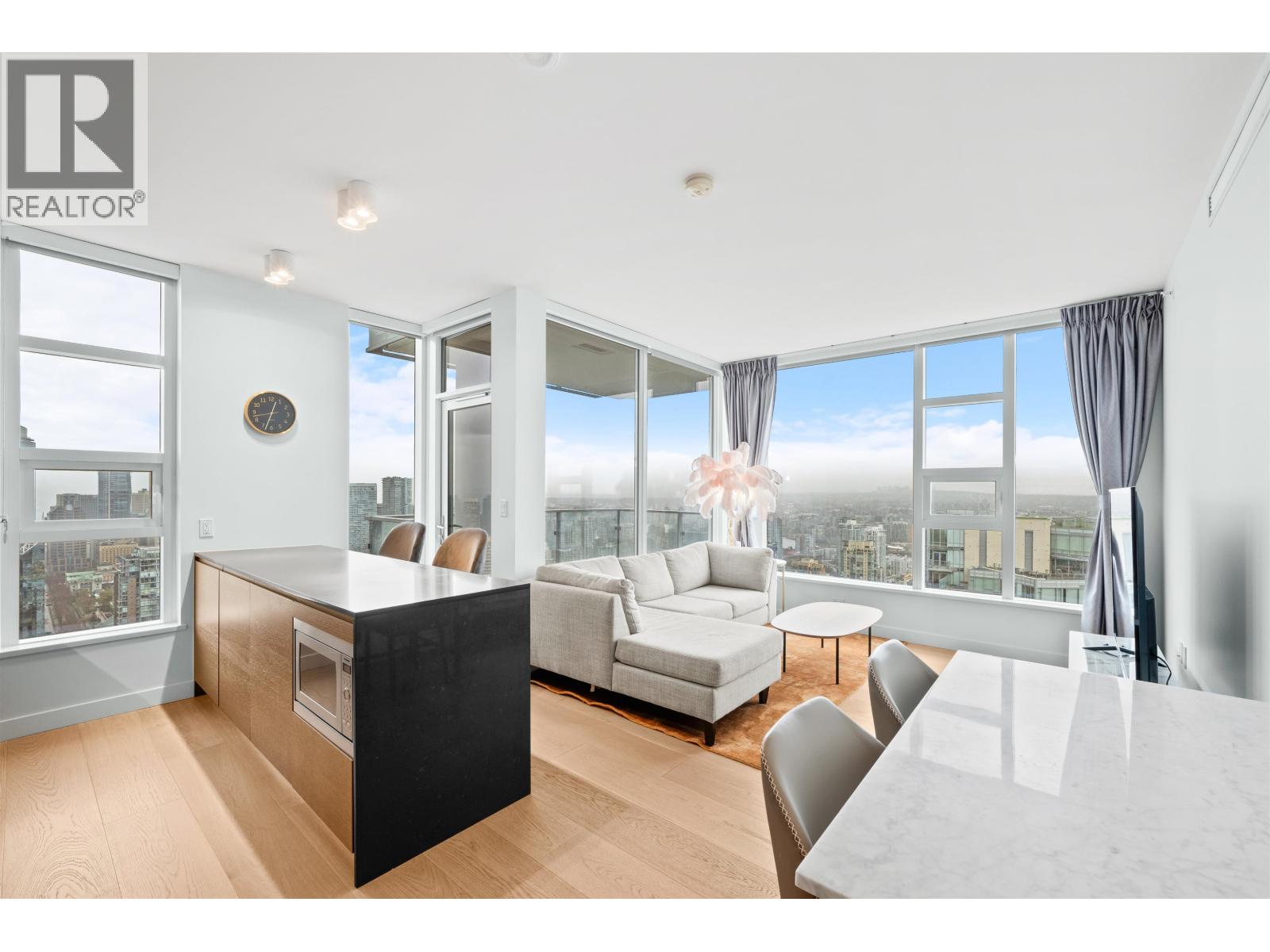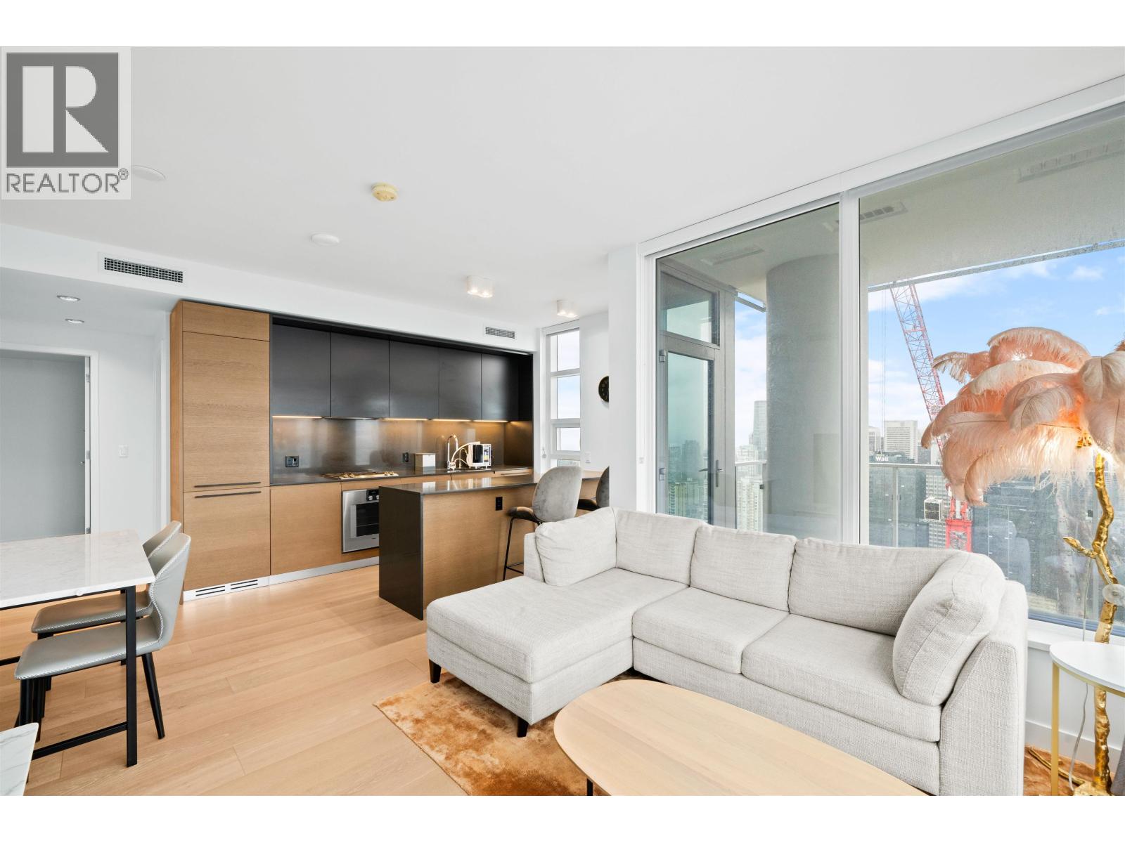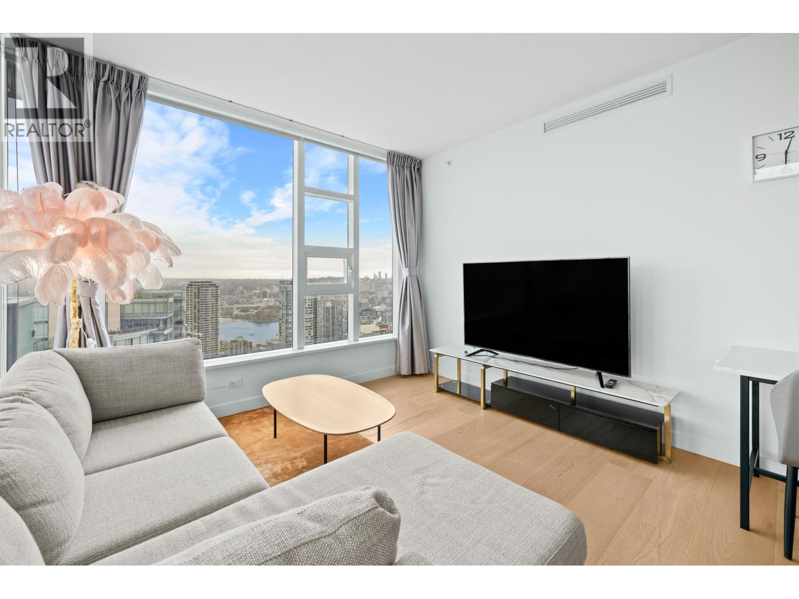 Check out this semi-furnished 2-bedroom, 2-bathroom condo on the 45th floor of One Burrard Place. Built in 2022, it boasts top-of-the-line Gaggenau appliances, engineered hardwood flooring throughout, air conditioning, and smart home controls for temperature and lighting. The modern bathroom features a Duravit wall-mounted toilet, and the kitchen is equipped with sleek quartz countertops. The building offers some of the best amenities around, including 24/7 concierge service, a swimming pool, sauna, steam room, hot tub, gym, indoor/outdoor dining areas, a yoga room, and even a guest suite. Bike locker and 1 parking stall included. (32412234)