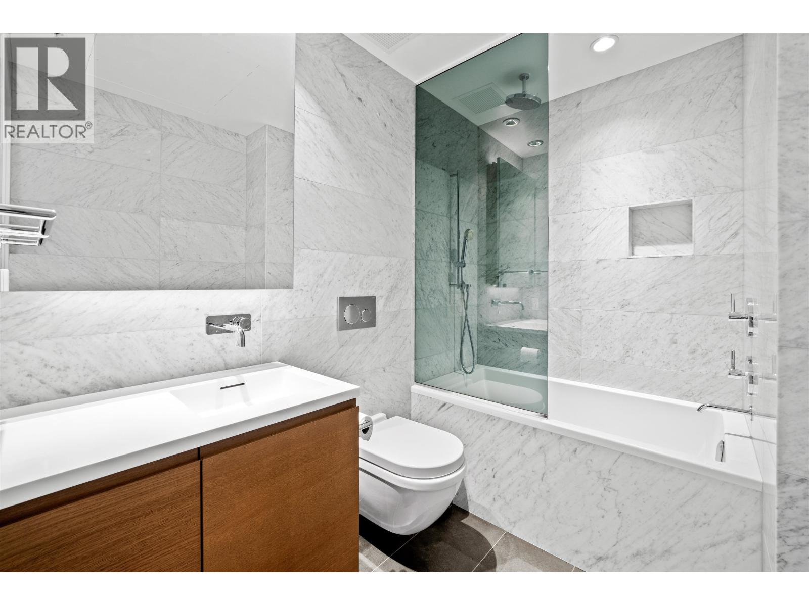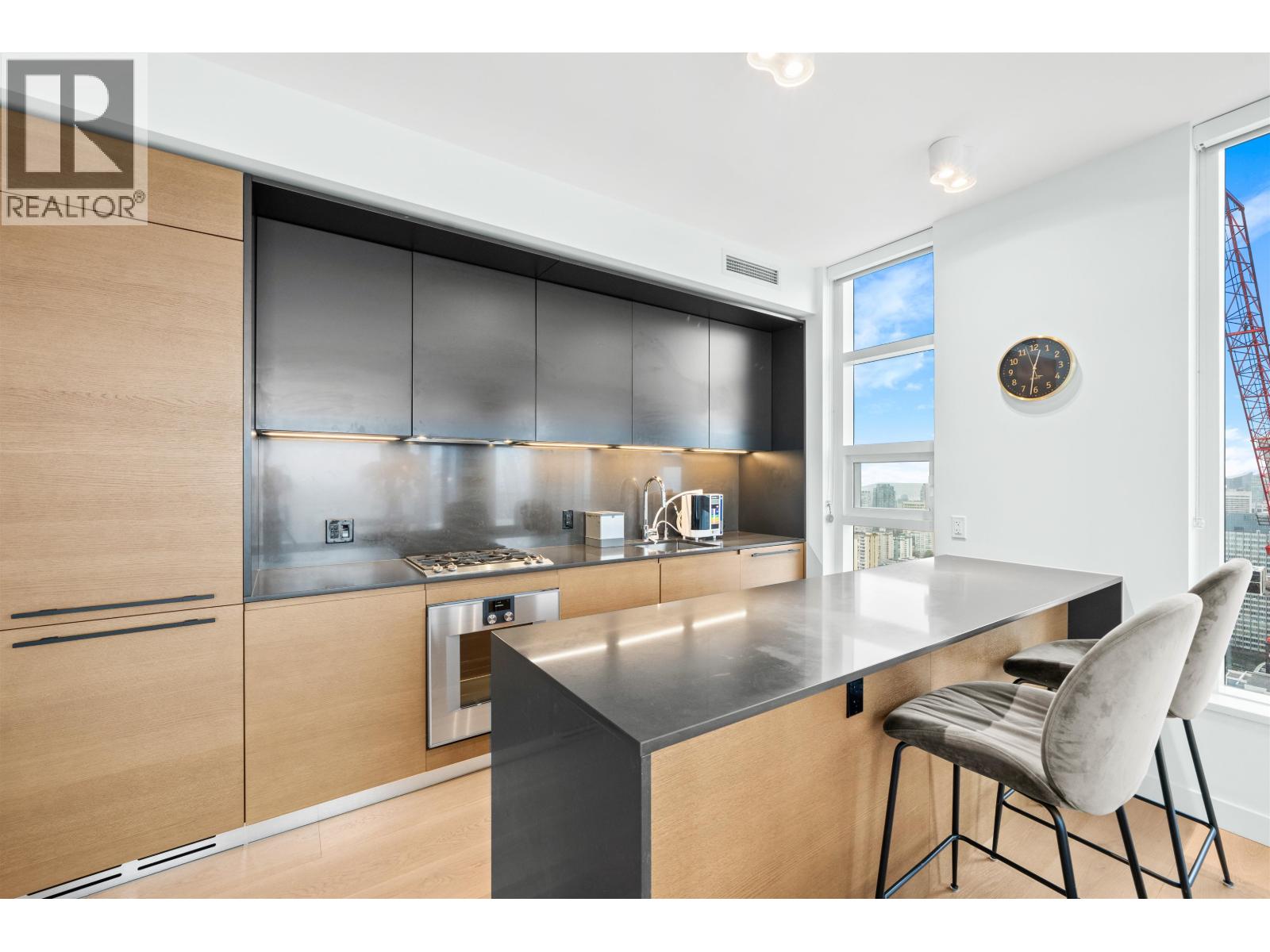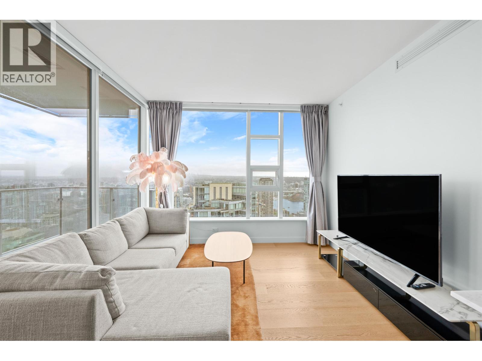 Check out this semi-furnished 2-bedroom, 2-bathroom condo on the 45th floor of One Burrard Place. Built in 2022, it boasts top-of-the-line Gaggenau appliances, engineered hardwood flooring throughout, air conditioning, and smart home controls for temperature and lighting. The modern bathroom features a Duravit wall-mounted toilet, and the kitchen is equipped with sleek quartz countertops. The building offers some of the best amenities around, including 24/7 concierge service, a swimming pool, sauna, steam room, hot tub, gym, indoor/outdoor dining areas, a yoga room, and even a guest suite. Bike locker and 1 parking stall included. (32412234)