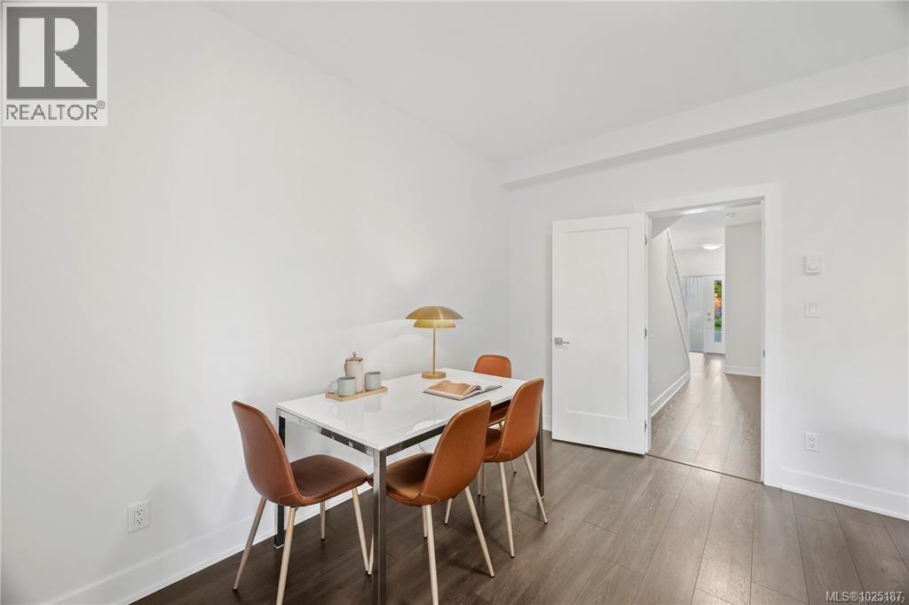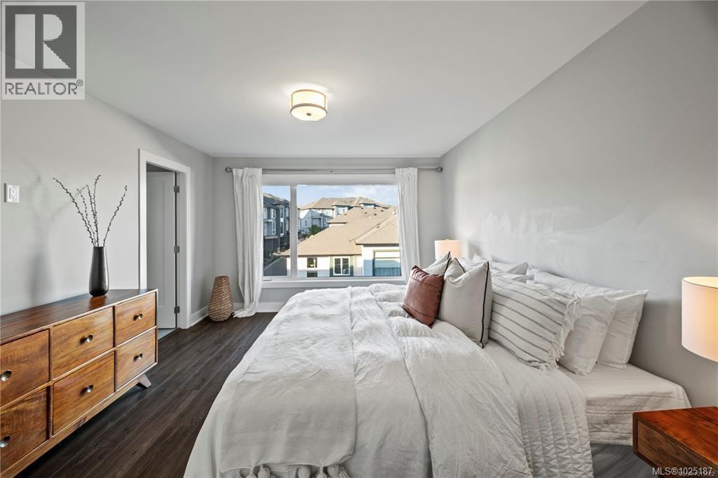 South facing 4 bed, 3 bath corner townhome set on a quiet no-through street surrounded by nature. Upgraded with: premium tile & wood flooring throughout (no carpet), quartz waterfall island, gas stove & fireplace, pantry, stainless steel appliances. This layout has an incredible flow: entry level with a family/media room that opens to a covered patio & beautifully landscaped, fully fenced backyard. Main level with: 4th bdrm, powder rm, open-concept kitchen/dining/living rooms leading out to a deck with unobstructed views of Mt. Wells. The upper level has an oversized primary with walk-in closet & luxurious ensuite. Hot water on demand, single garage + driveway parking. Ideal location: steps to trails, Rhino Coffee & Jordie Lunn Bike Park,YMCA, Langford Lake, bowling, bus service, shopping & quick highway access to Victoria, Sooke & up-Island. Walk to beautiful new schools: Pexsisen Elem, Mt.Lellum Middle & Belmont Sec. Don’t miss this one. Reach out today to view! (30350715)