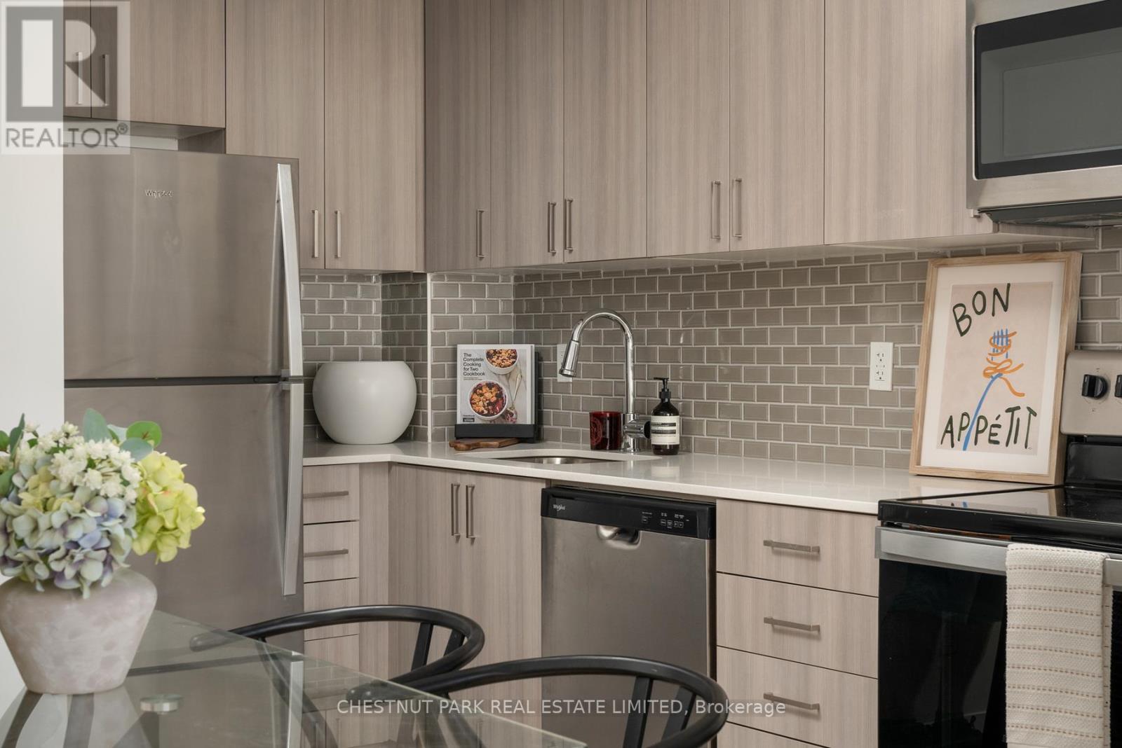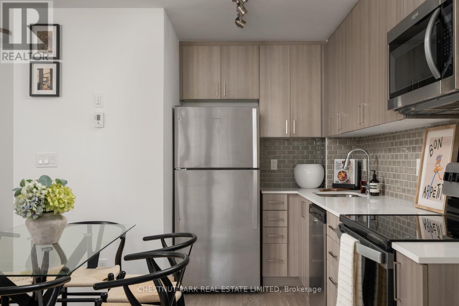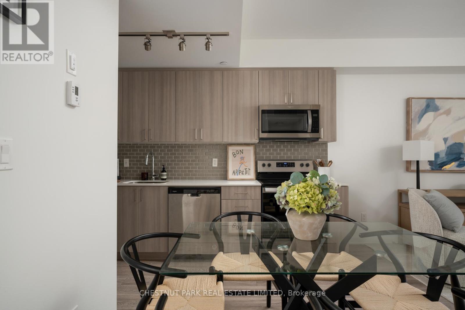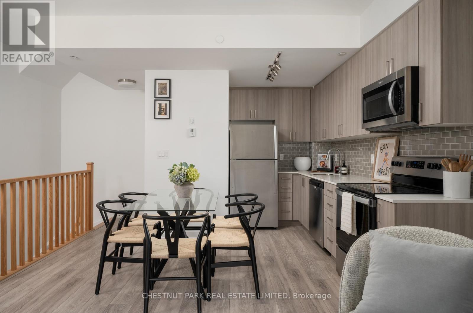 Experience modern living in this stylish three-storey, end-of-row corner townhome at Applewood Towns by Sierra Communities. Designed for comfort and function, this two-bedroom, three-bathroom residence features an open-concept main floor with a sleek kitchen, full-sized stainless steel appliances, and premium cabinetry. The entry level offers a convenient powder room, laundry area, and coat closet. Upstairs, two well-proportioned bedrooms include a bright primary suite with a four-piece ensuite and a secondary bedroom with a private balcony overlooking mature trees. The third-floor landing provides the perfect space for a desk or reading nook, naturally lit by east-facing windows with tranquil treetop views. A private wrap-around rooftop terrace serves as an inviting retreat for entertaining or quiet relaxation. With northeast exposure, this home enjoys abundant natural light throughout. Complete with one underground parking space, it blends modern style with everyday practicality. Ideally located minutes from highways 401, 403, 427, and QEW, Kipling Station, and Dixie GO, with top-rated schools, parks, shopping, and dining nearby. (42085184)