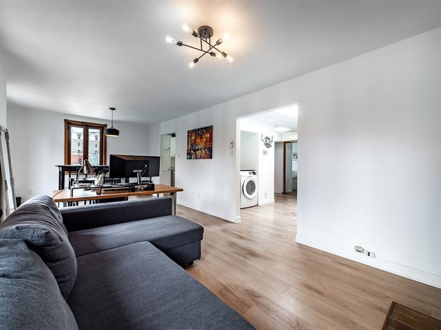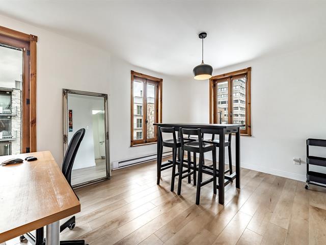 Stunning corner unit on the top floor with abundant natural light throughout, thanks to large windows in every room. This spacious condo features an excellent layout with a generous living room, separate kitchen with ample storage, two well-proportioned bedrooms, a fully renovated bathroom, new flooring (2021) and fully renovated windows (2023). Ideally situated in the heart of the Plateau, just steps from Saint-Laurent Street's vibrant offerings, within walking distance to McGill University, UQAM, Jeanne-Mance Park, and the Quartier des Spectacles. A rare opportunity for those seeking exceptional urban convenience and lifestyle. (39509742)