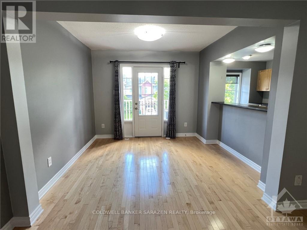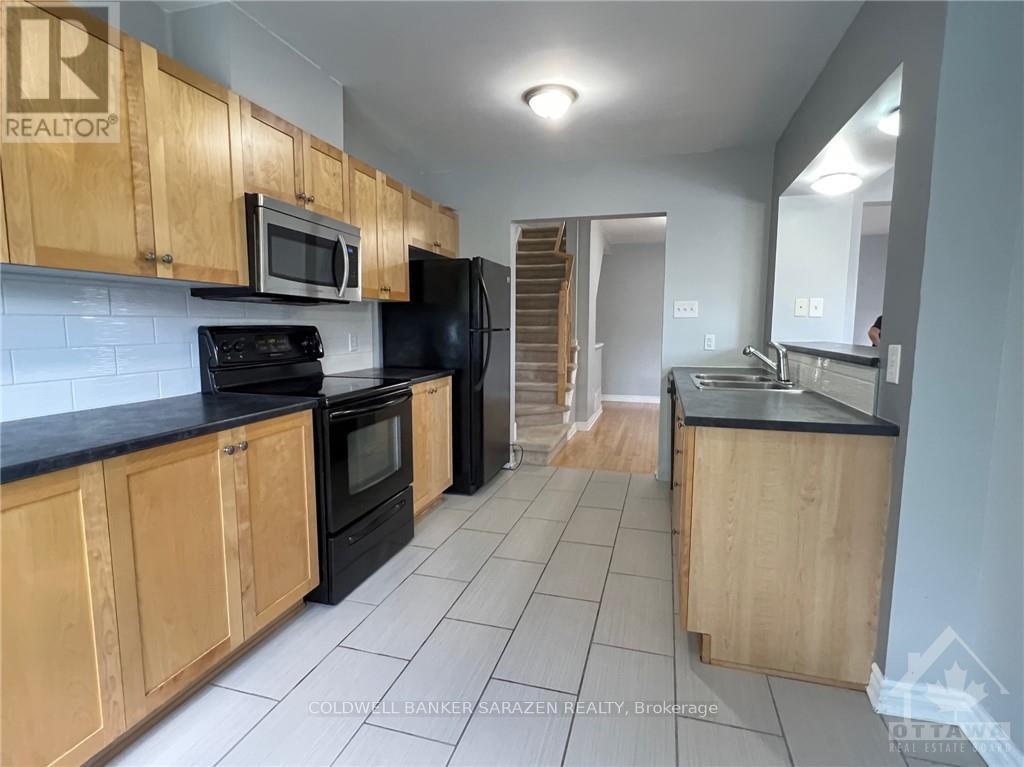 Exceptionally well-kept 3 bedroom end unit situated in Barrhaven Mews, just moments away from all essential amenities. This exquisite 3-storey Mattamy Honeygate model has been meticulously renovated. Upon entry, you are greeted by a spacious front foyer adorned with contemporary tiled flooring, leading to a powder room, laundry room, and garage access. The second level boasts an open concept layout highlighted by airy hardwood floors. The expansive kitchen features abundant cupboard and countertop space, along with a breakfast bar and dining area. Flooded with natural light, the living room and dining room open up to a remarkable second-level balcony, perfect for summer barbecues. On the third level, you'll find three generously sized bedrooms, including a master suite with vaulted ceilings. A beautifully updated main bath completes this level. Private driveway accommodates two cars, do not share with neighbors. (42085721)