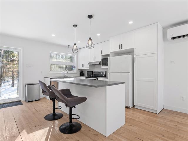 Superbe plain-pied construit en 2022, offrant une fenestration abondante et un espace de vie à aire ouverte. La cuisine est dotée d'un îlot convivial, tandis que la salle à manger s'ouvre sur la terrasse grâce à une porte-patio. Le confort est assuré par une thermopompe. La salle de bain propose une douche indépendante et un bain autoportant. Le sous-sol, à aménager selon vos goûts, offre un beau potentiel. Située dans une rue sans issue, la propriété bénéficie d'un vaste terrain boisé de plus de 34300 pi², intime et légèrement en retrait de la route. (47694012)