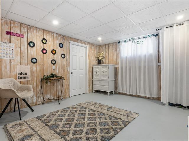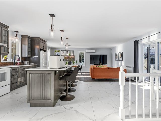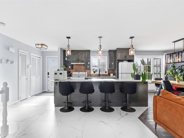 Nichée dans un secteur calme, cette magnifique propriété baigne de lumière naturelle et offre une intimité remarquable grâce à l'absence de voisin à l'arrière et une vue apaisante sur le boisé. La cour, bordée de haies matures, comprend une piscine creusée et clôturée. À l'intérieur, on retrouve trois chambres au rez-de-chaussée, un espace de vie à aire ouverte ainsi qu'une cuisine dotée d'un grand îlot. Le soussol entièrement aménagé propose une vaste salle familiale avec poêle au bois. Un garage détaché de 19'7" x 26'2" complète le tout. À proximité des services, dont une école primaire, une école secondaire, une épicerie et plus encore! (57747968)