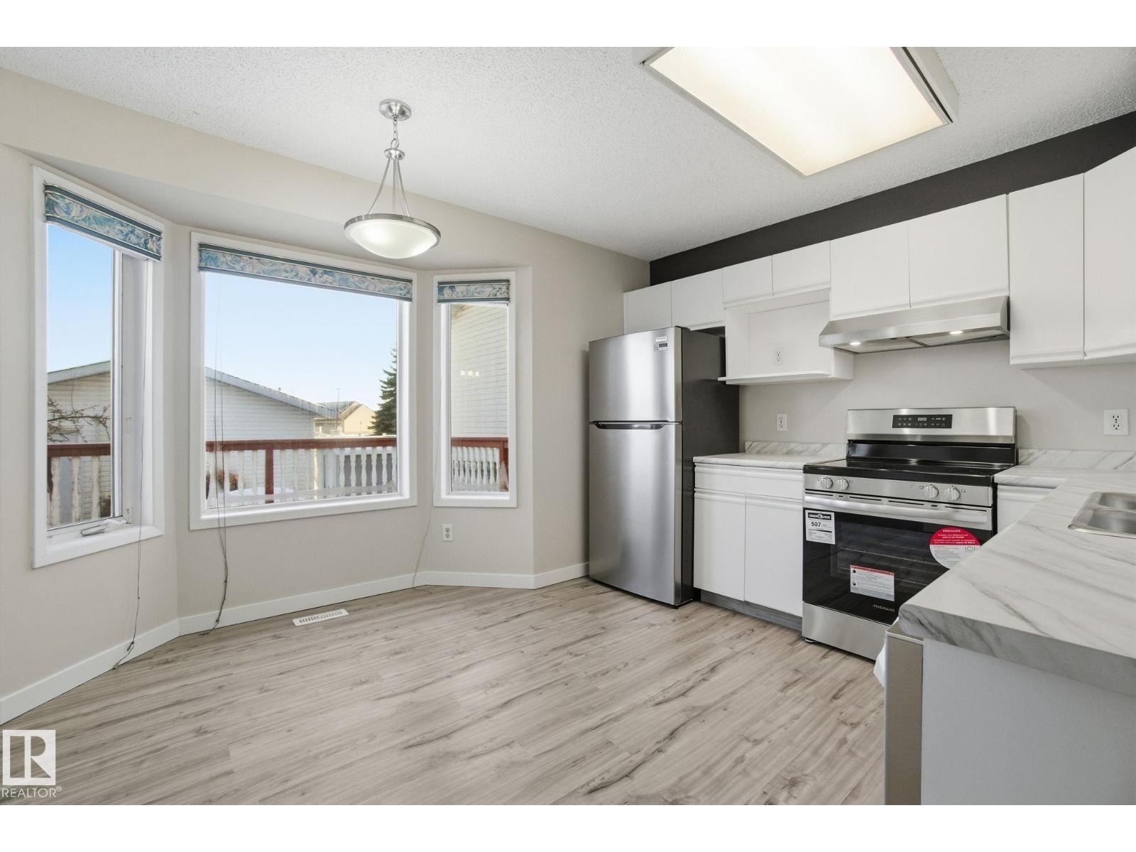 Great starter home or investment property with quick possession available. This updated two storey features new main floor flooring and a bright living room with a large front window. The functional kitchen offers new modern appliances, a breakfast nook, and access to the back deck and yard. Upstairs includes a spacious primary bedroom with walk-in closet and 4-piece ensuite, plus two additional bedrooms and a full bathroom. The fully finished basement adds family living space with a 4-piece bathroom and laundry area. Complete with a double detached garage. Located in a friendly, well established neighborhood within walking distance to schools and close to parks, shopping, major amenities, and quick access to Anthony Henday Drive. (33798356)