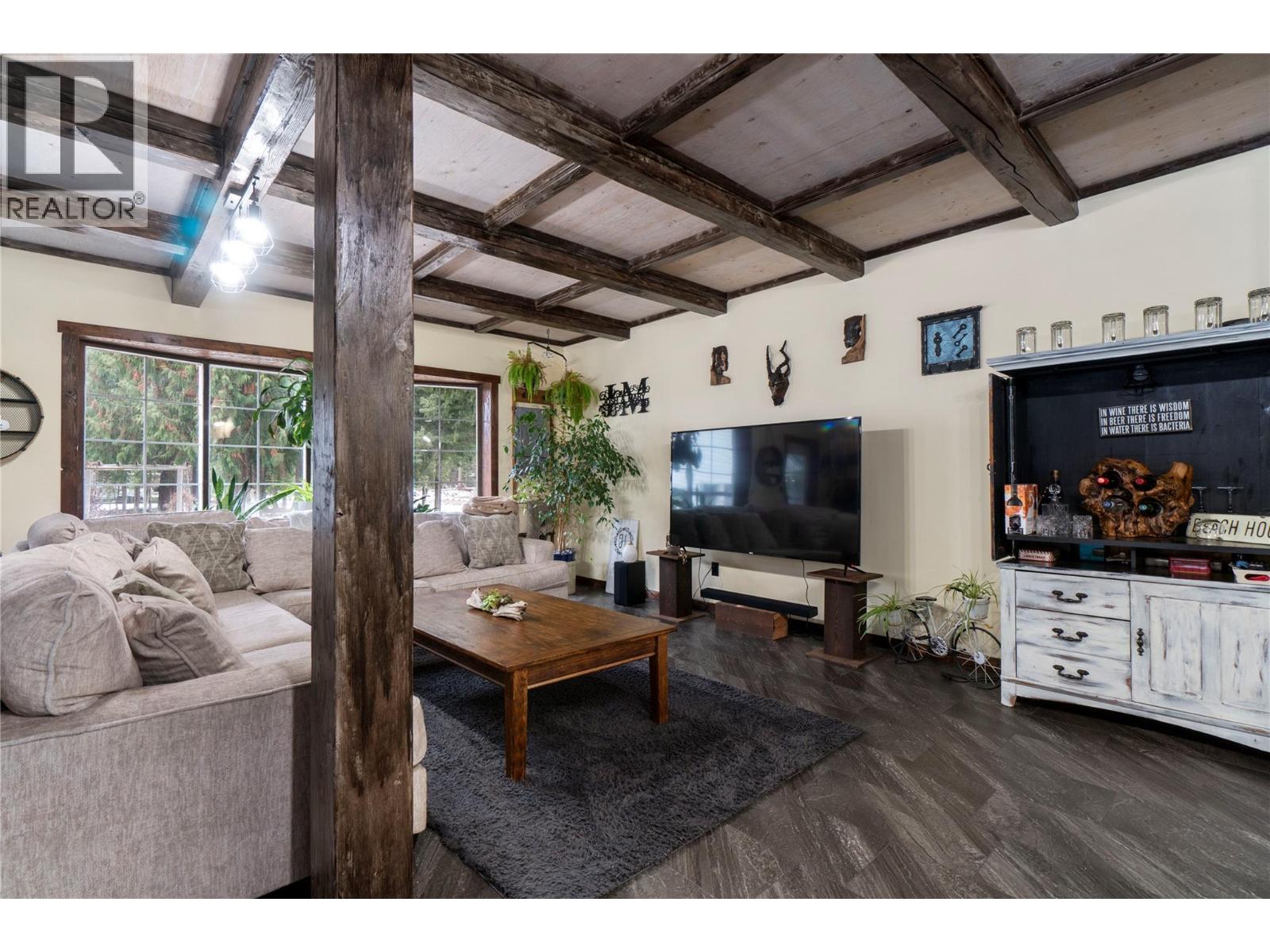 Two impressive waterfront homes set on 2.8 acres with approximately 400 ft of pristine Eagle River frontage. Welcome to 2012 Bundus Road, a rare and versatile riverfront estate surrounded by towering cedars, beautifully landscaped grounds, walking trails, vibrant gardens and a serene pond. The setting is private and picturesque. The property features 2 separate residences with a combined total of 9 bedrooms and 7 bathrooms, 2 kitchens and 2 laundry areas, making it ideal for multigenerational living, extended family use or income potential. The main residence offers nearly 2,900 square feet with 6 bedrooms and 4 bathrooms, a tastefully updated kitchen, striking stone fireplace and generous living and dining spaces. Large windows capture river and forest views, while the expansive deck and outdoor entertaining areas create a natural backdrop for hosting. A double garage completes the home. The secondary residence offers an open concept kitchen, dining and living area centered around a wood burning stove and a dramatic wall of windows overlooking the grounds. With 3 bedrooms, multiple bathrooms, recreation space, gym area and a large garage below, it provides excellent flexibility for family. Kayak from your backyard, relax in the hot tub, unwind in the hammock or gather around the fire pit. Located minutes from Sicamous, close to Revelstoke and renowned sledding areas, this exceptional Eagle River property offers year round recreation, privacy and opportunity. (39700054)