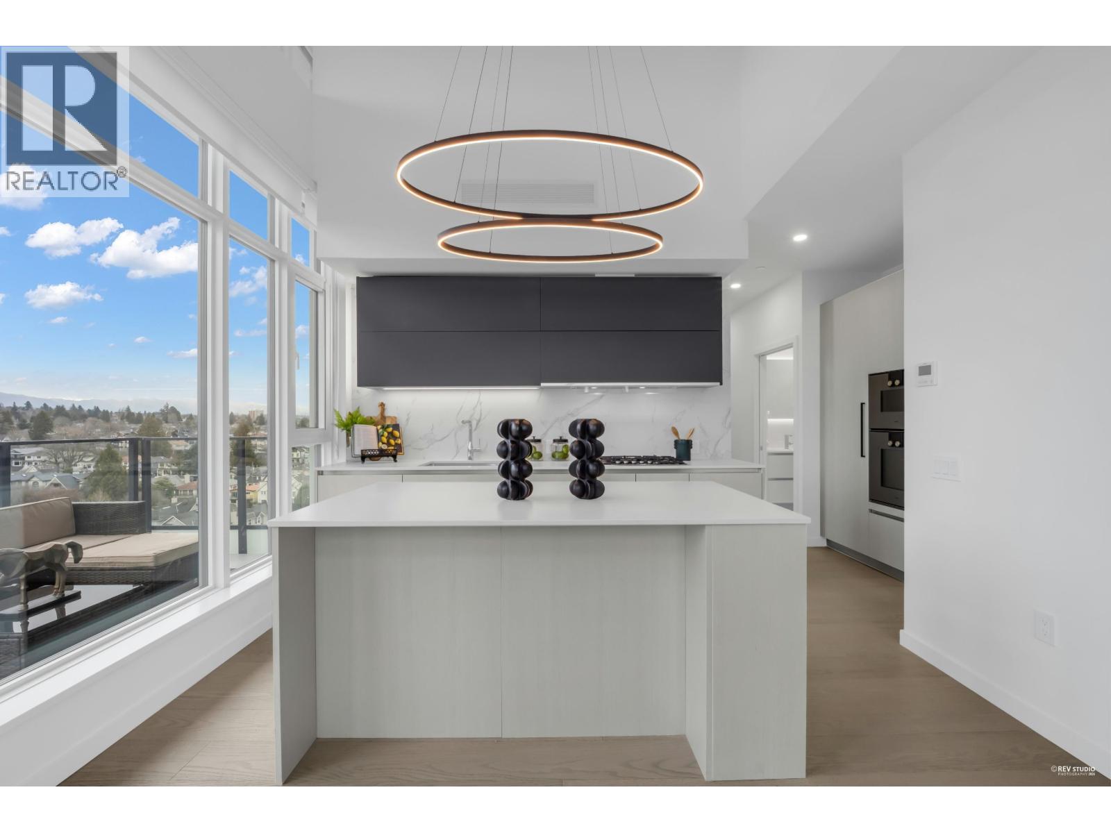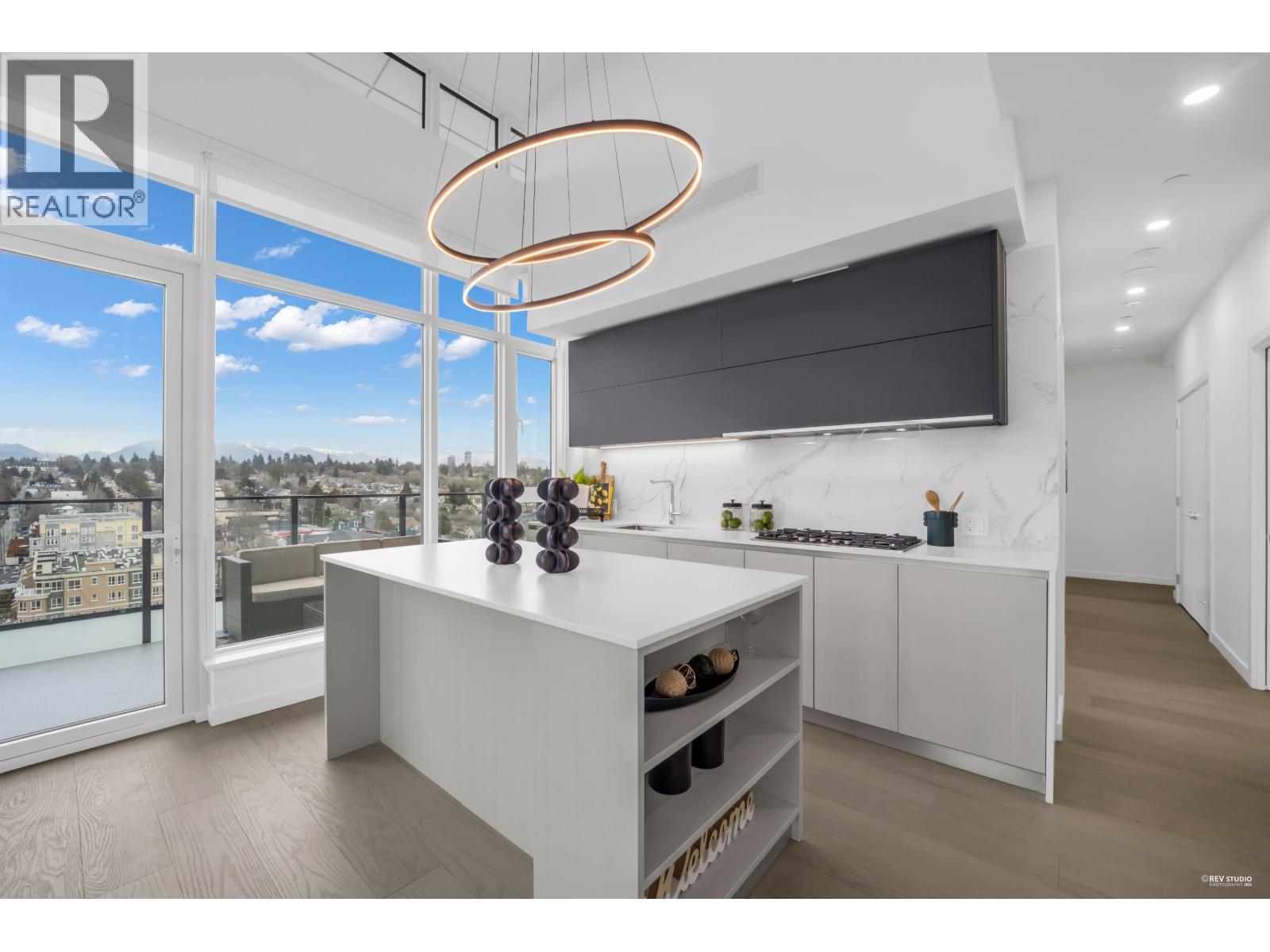Occupying a prime corner position at the top of the building, this exceptional Penthouse 3 Bed + Den residence captures sweeping views toward distant mountains and water, offering a rare unobstructed outlook with views from every window. A dramatic 14-foot ceiling height enhances the sense of scale, while expansive windows draw in natural light and reinforce the home´s open, airy atmosphere. Principal living spaces are oriented to embrace surrounding scenery, maintaining a strong visual connection to the landscape. The kitchen features a full Gaggenau appliance package, reflecting the premium standard of this top-floor home. Located within W68 by Westland Living at Granville & W 68th. A rare top-floor offering defined by light, scale, and views. (32412905)