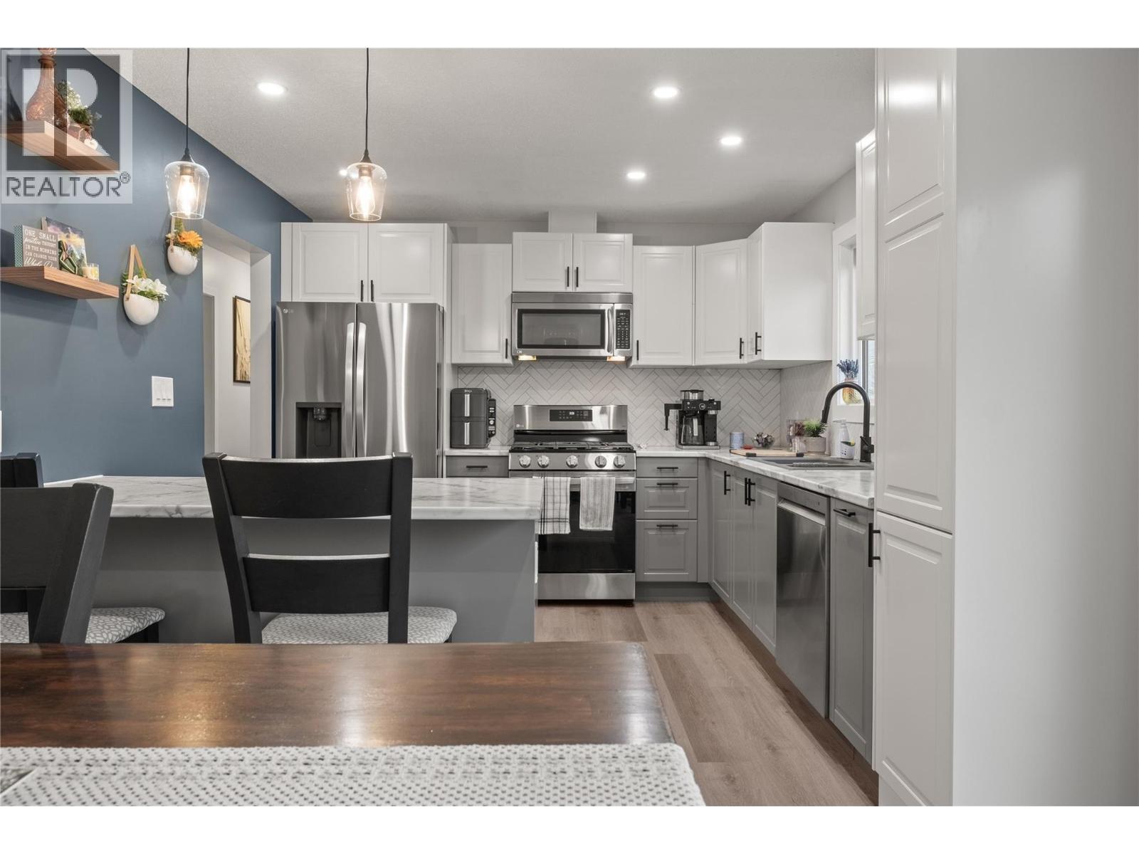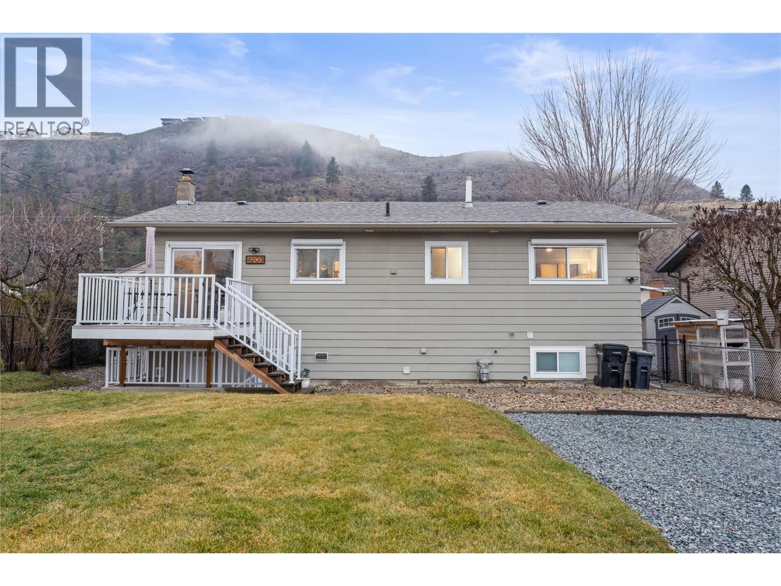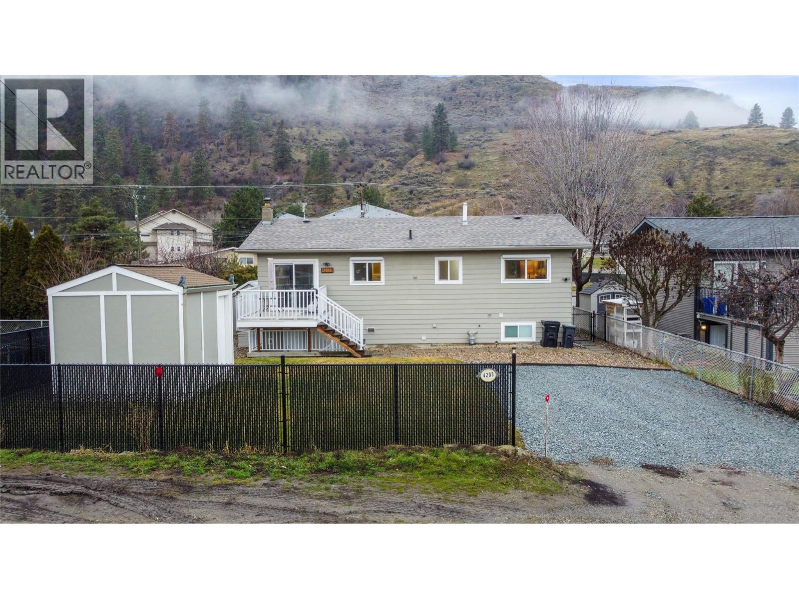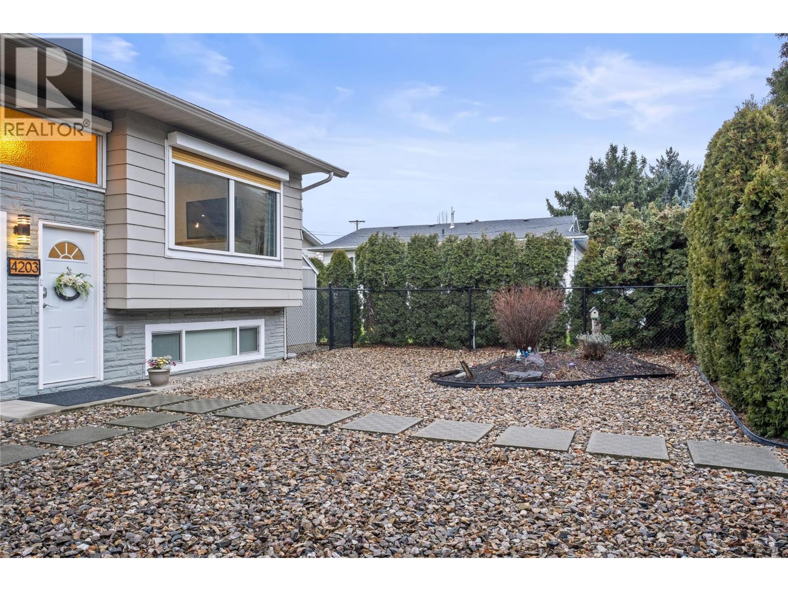 Welcome to 4203 Alexis Park Drive, a thoughtfully renovated home offering flexibility, comfort, and low-maintenance living in a well-located Vernon neighbourhood. This property features two fully self-contained living spaces, ideal for extended family, rental income, or those seeking a mortgage helper, while still functioning as a single cohesive residence. Both levels have been extensively updated with modern kitchens, in-suite laundry, quality finishes, and excellent separation between living areas. Outside, enjoy low-maintenance, xeriscaped landscaping, irrigation, and newer fencing, along with a wired 10’ x 12’ workshop and a separate 6’ x 8’ wooden storage shed, providing valuable space for equipment, hobbies, or additional storage. The location supports an active and convenient lifestyle. The home is within walking distance to the new Recreation Centre, the Grey Canal trail system, Alexis Park Elementary School, shopping, restaurants, and transit, with Swan Lake Bird Sanctuary just minutes away. Easy access to parks, trails, and daily amenities makes this an ideal spot for those who value both convenience and outdoor recreation. With major upgrades already completed and a strong rental component in place, this is a turnkey opportunity offering versatility, income potential, and long-term value in an established Vernon neighbourhood. (39701129)