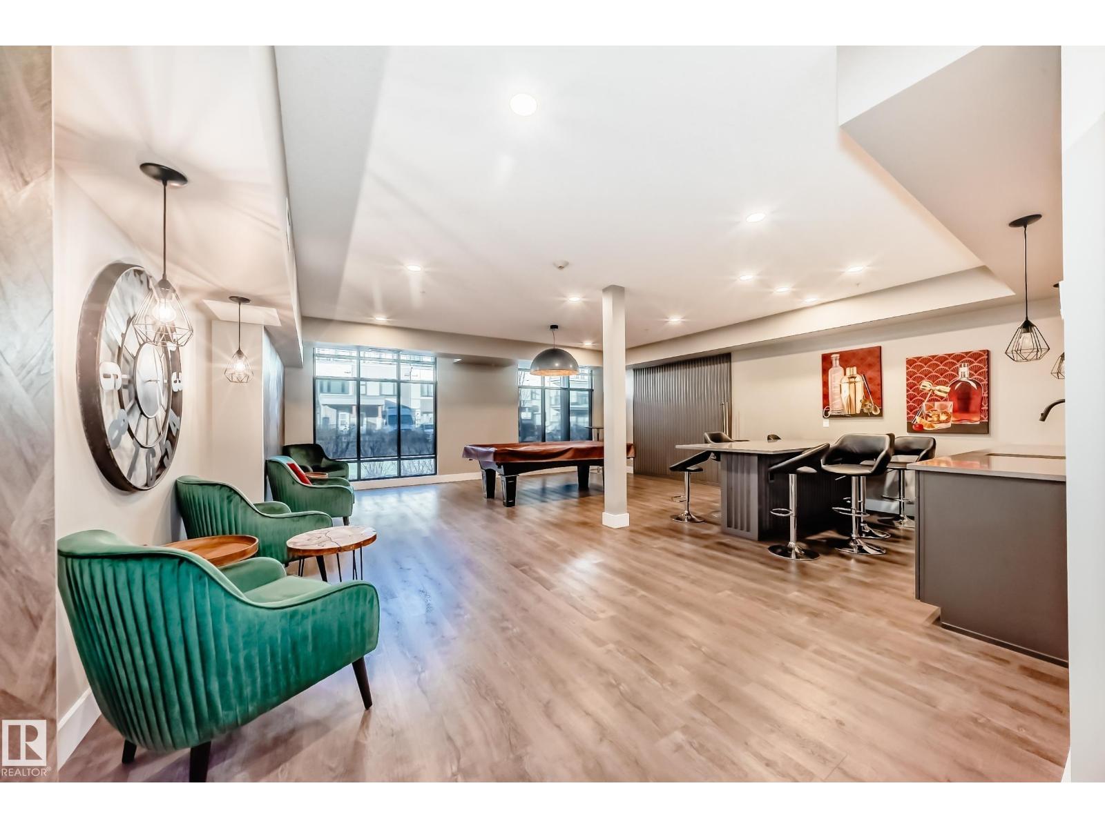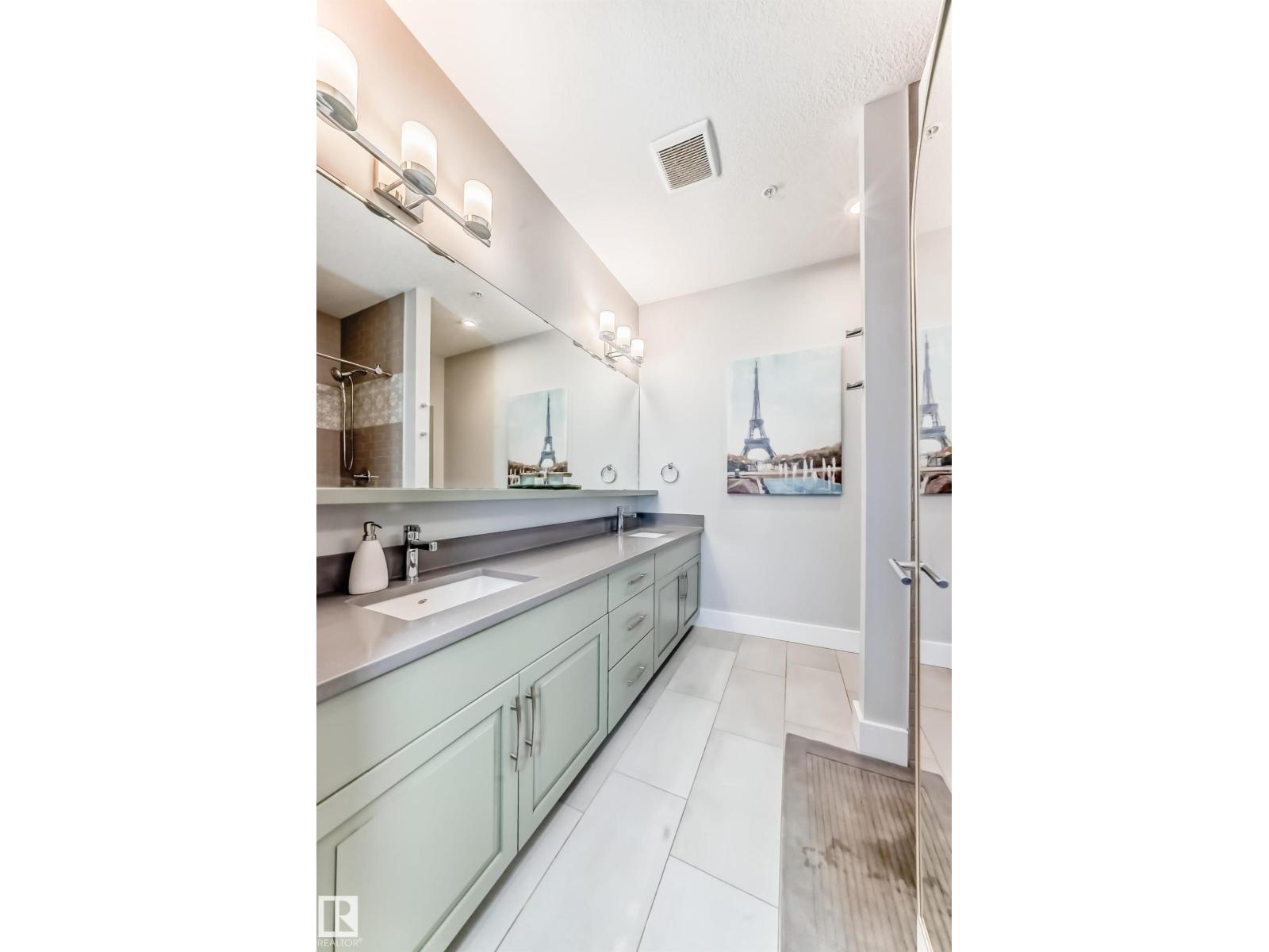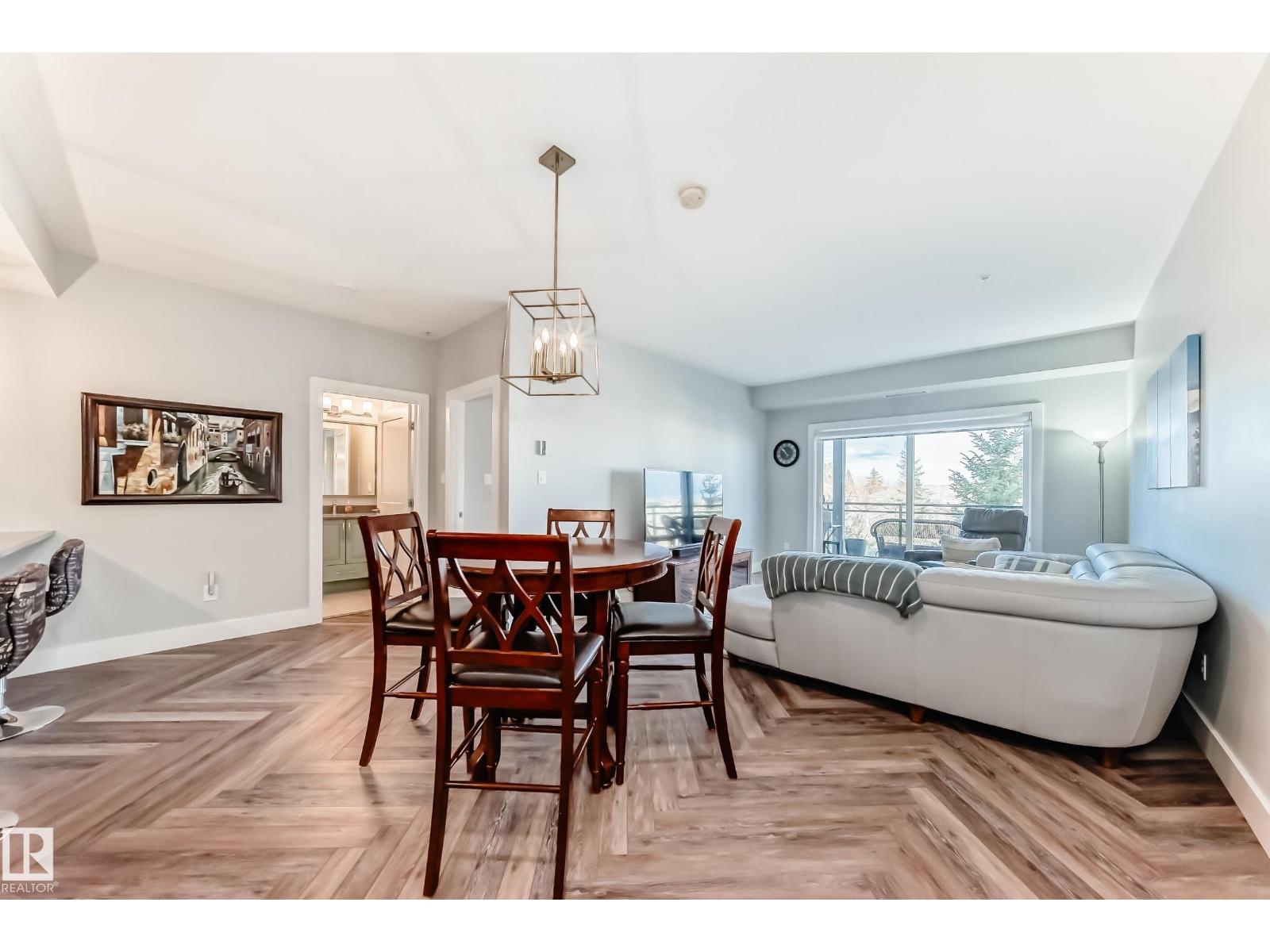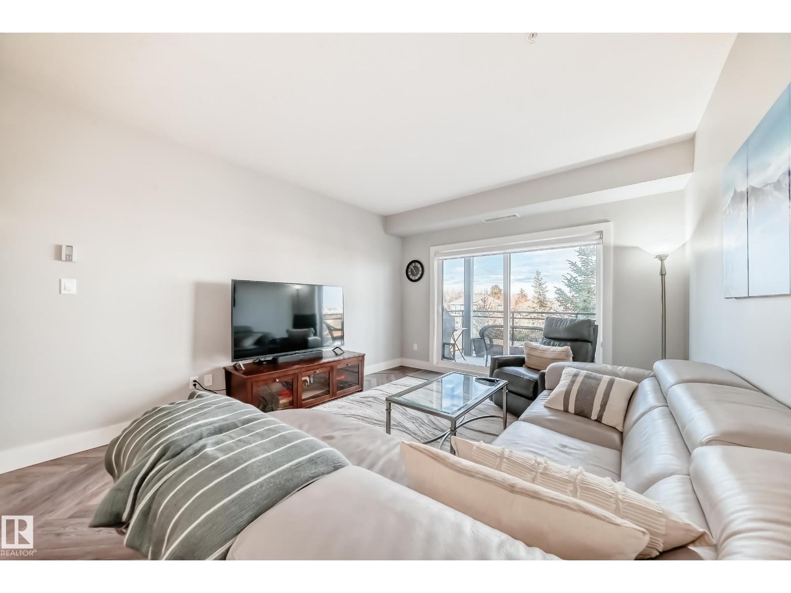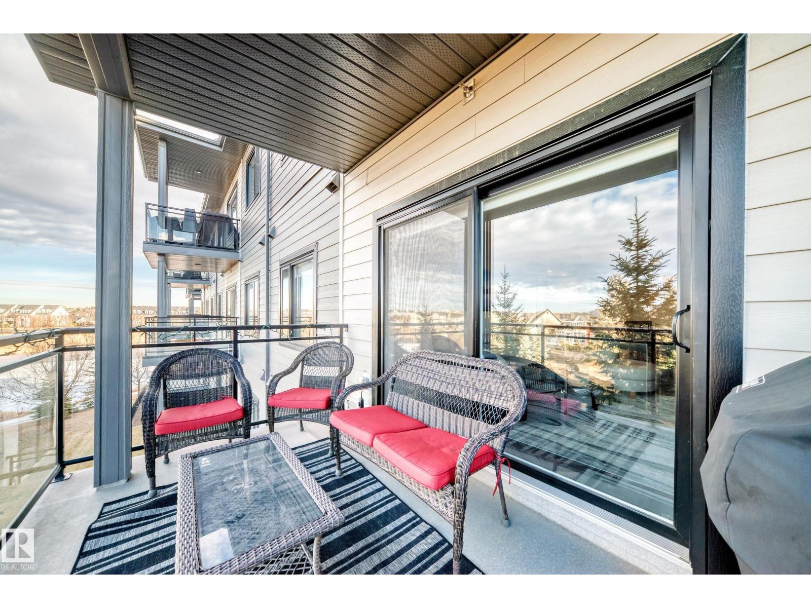 Beautiful Griesbach executive style 1,130 square foot, 2 bedroom, 2 bathroom, 2018 built, 3rd floor condo, in and incredible location backing onto greenspace and lake. The main floor has vinyl plank flooring, separate wet bar with mini fridge, and a great open floor plan with eat up island style kitchen having 2 tone cabinets, quartz countertops, upgraded stainless appliances, walk in pantry & sliding doors to a large balcony. The spacious primary bedroom has walk-through closets, and a 4 piece bathroom. The second bedroom is located close to the main 4 piece bathroom. There are 2 titled parking stalls included underground #98 and surface stall #11. The area has many amenities just minutes away, including shopping, transportation, schools, walking trails, and much more. The Veritas condominium complex has a beautiful front entrance and many extras including, fitness room, air conditioning, guest room, social room, & visitor parking out front. This unit shows pride of ownership and shows a 10 out of 10 (33798609)
