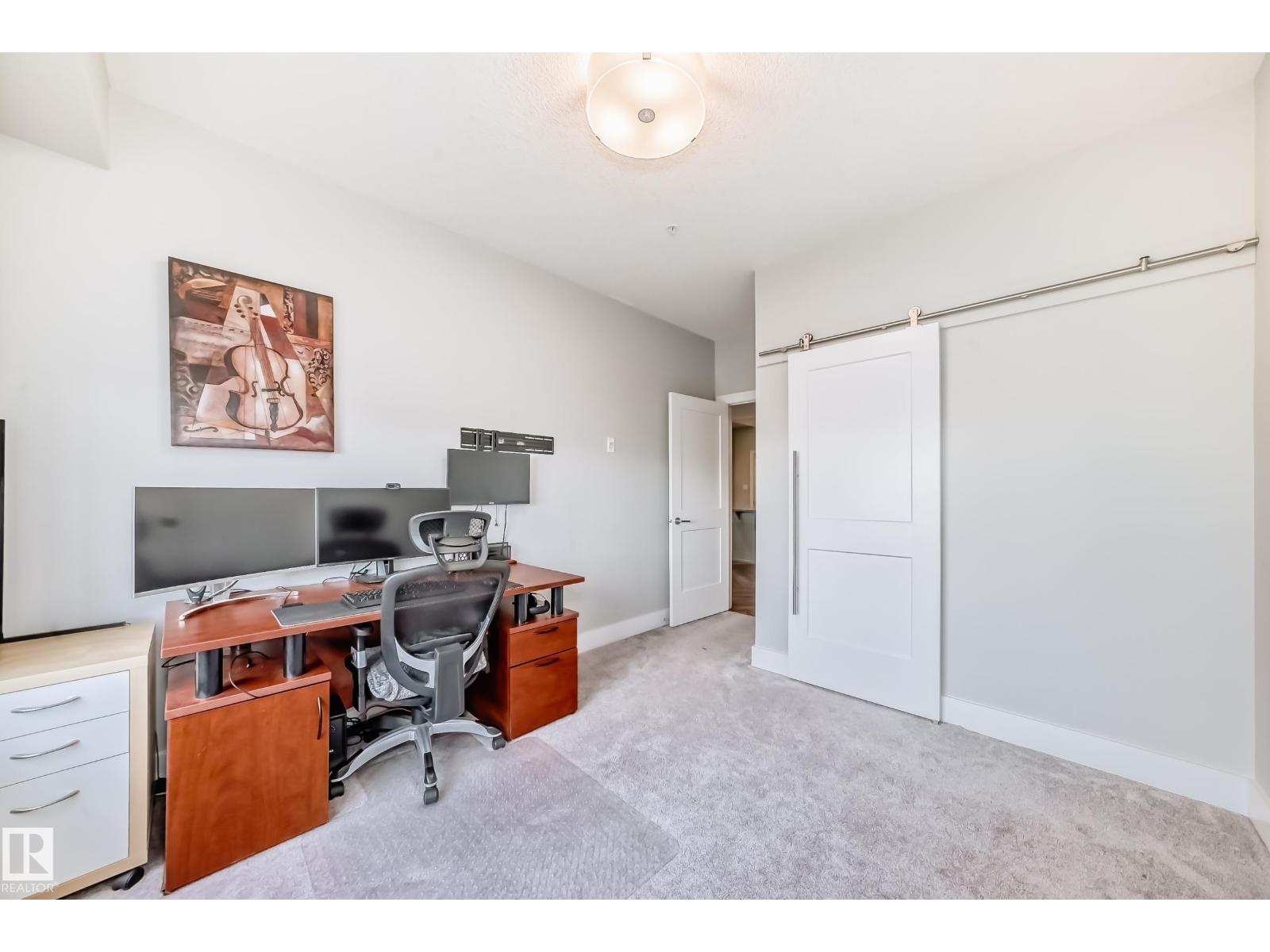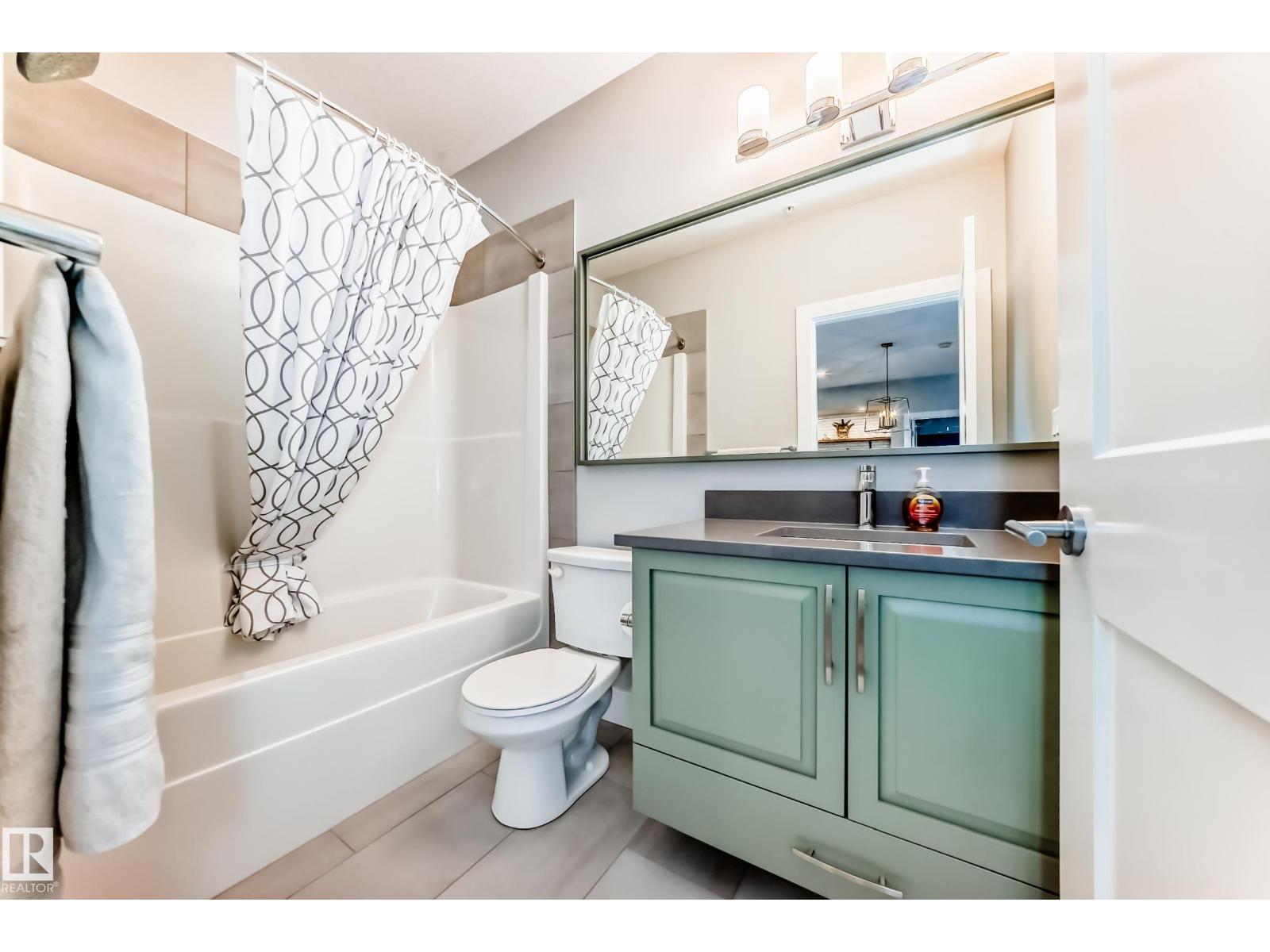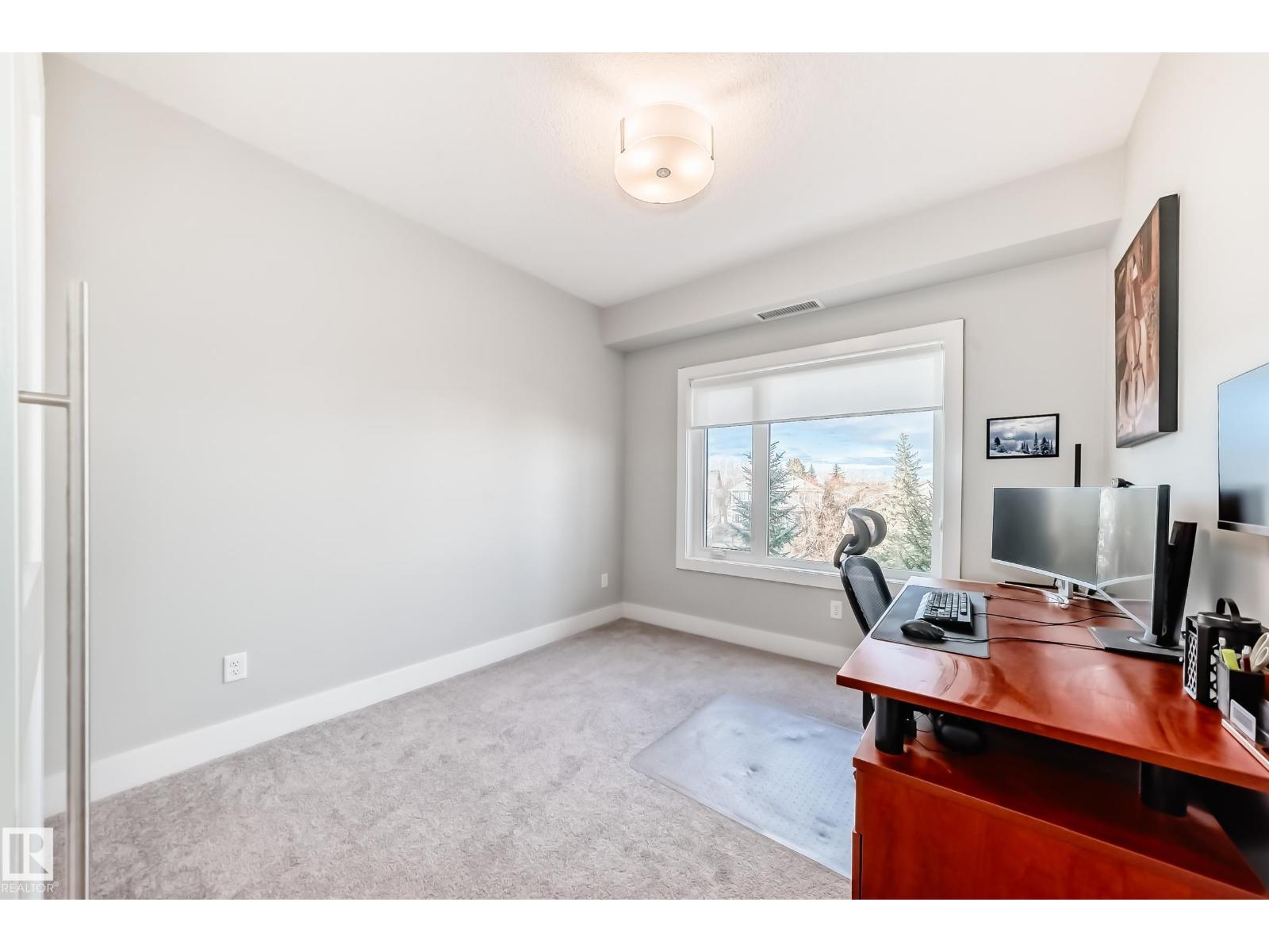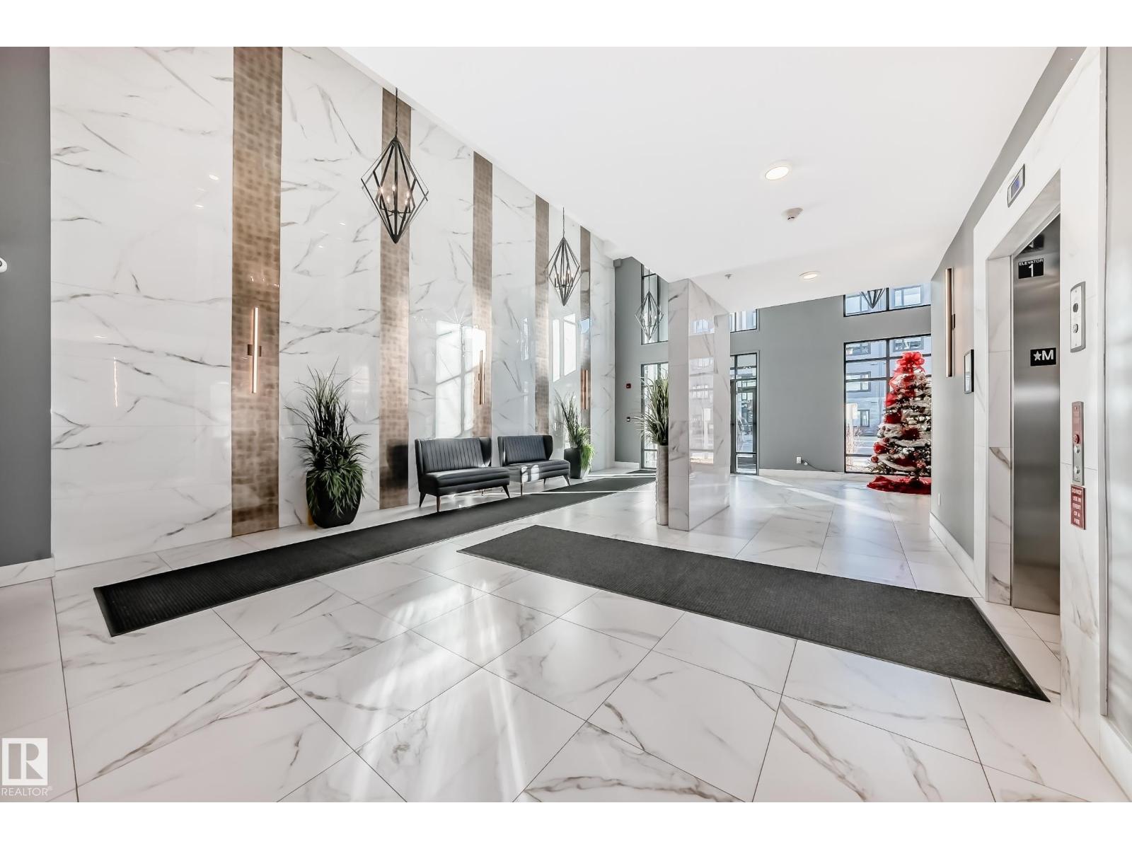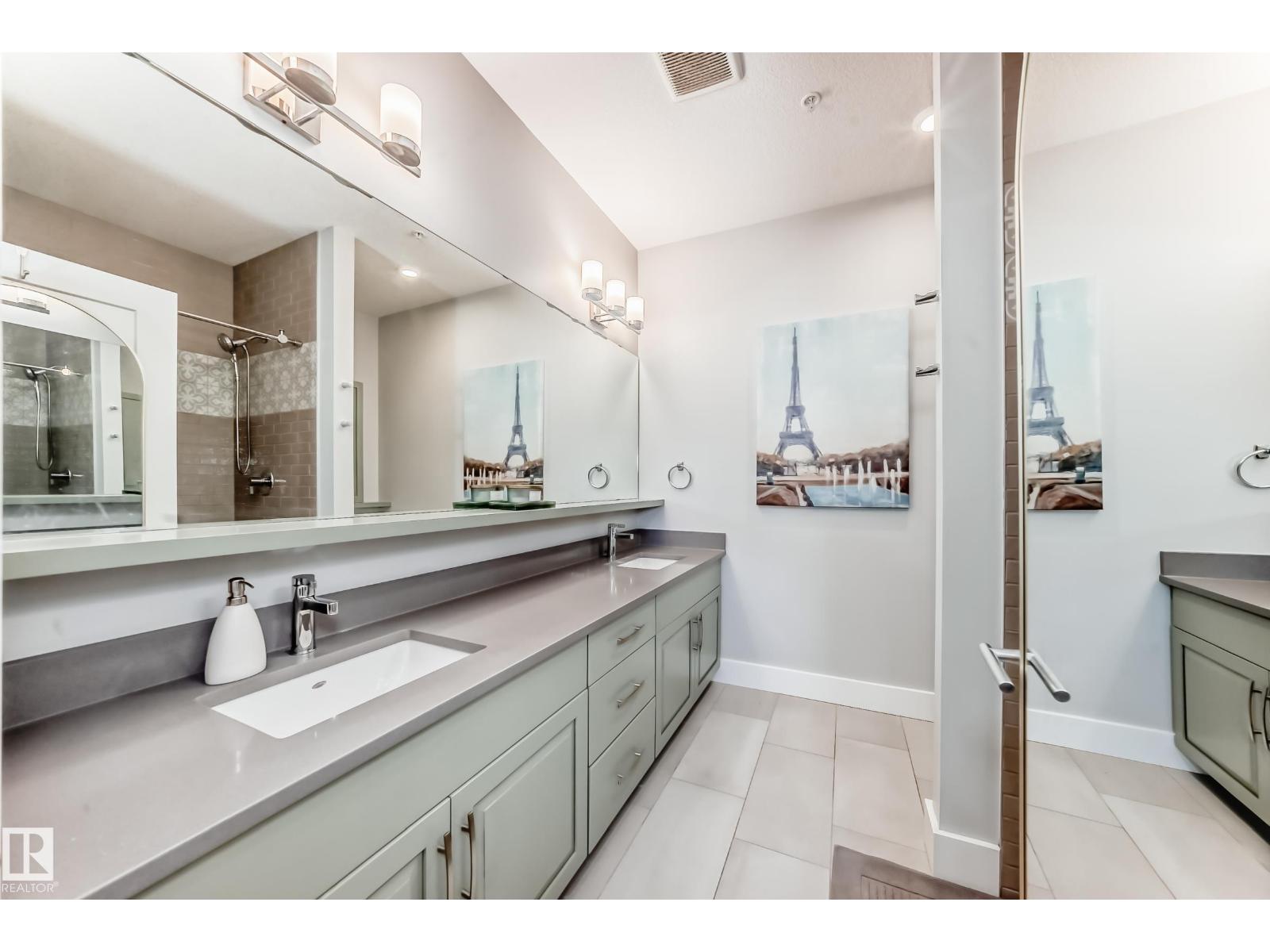 Beautiful Griesbach executive style 1,130 square foot, 2 bedroom, 2 bathroom, 2018 built, 3rd floor condo, in and incredible location backing onto greenspace and lake. The main floor has vinyl plank flooring, separate wet bar with mini fridge, and a great open floor plan with eat up island style kitchen having 2 tone cabinets, quartz countertops, upgraded stainless appliances, walk in pantry & sliding doors to a large balcony. The spacious primary bedroom has walk-through closets, and a 4 piece bathroom. The second bedroom is located close to the main 4 piece bathroom. There are 2 titled parking stalls included underground #98 and surface stall #11. The area has many amenities just minutes away, including shopping, transportation, schools, walking trails, and much more. The Veritas condominium complex has a beautiful front entrance and many extras including, fitness room, air conditioning, guest room, social room, & visitor parking out front. This unit shows pride of ownership and shows a 10 out of 10 (33798609)