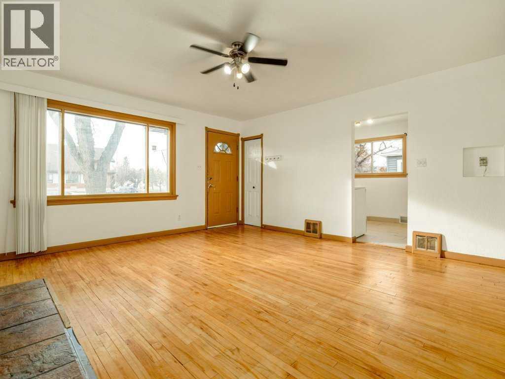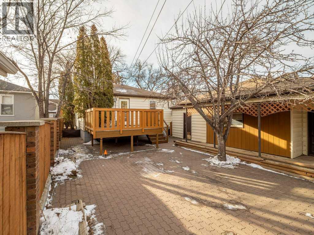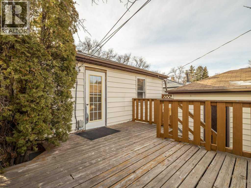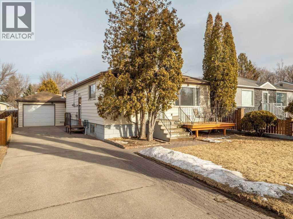 Excellent location for this south side bungalow close to the Lethbridge Regional Hospital. Kitchen has tile floor and updated appliances, the dishwasher is just over 1 yr. Livingroom and bedrooms have hardwood flooring, fireplace in livingroom has a gas line (disconnected). Back bedroom has access to a great size deck which overlooks a mature yard, great BBQ area, possible RV parking, extra parking (gates by alley can be moved in). Basement has a Rec Room with fireplace (gas line disconnected), kitchenette, bedroom, 3 piece bathroom, Laundry room with laundry tub, furnace, hot water tank. Upgrades to roof (approx 10 yrs), furnace motor in 2024. Detached garage has doors on each end. Furnace in garage has not been used. Great garage with potential for shop space. (31610159)