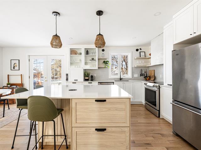Superbe maison CLÉ-EN-MAIN offrant un vaste terrain sur coin. Le rez-de-chaussée propose un salon lumineux, une salle à manger avec accès à la cour et une magnifique cuisine blanche avec îlot central et rangement abondant. On y retrouve également deux chambres et une salle de bains avec baignoire sur pied et vanité double. Le sous-sol comprend une grande salle familiale, deux chambres, une salle de bains avec douche, salle de lavage, rangement et atelier. Cour arrière clôturée et boisée, avec piscine hors terre, cabanon et grande allée asphaltée pour quatre voitures. Un emplacement idéal pour une vie de famille harmonieuse! (39062903)