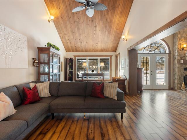 Située sur les rives du prestigieux lac Simon, cette propriété offre un frontage exceptionnel de 536 pieds, garantissant intimité et accès privilégié à une eau reconnue pour sa grande clarté. Dès l'entrée, la luminosité abondante et les plafonds cathédrale séduisent instantanément. Le foyer en pierre crée une ambiance chaleureuse, idéale après une journée de sports d'hiver. La chambre des maîtres, séparée, dispose d'un grand walk-in et de sa salle de bain privée. Garage double, vue imprenable, proximité des écoles. Le lac propose pêche, baignade et activités quatre saisons. Vendue sous l'évaluation municipale, une occasion rare!! IA utilisée (39303626)
