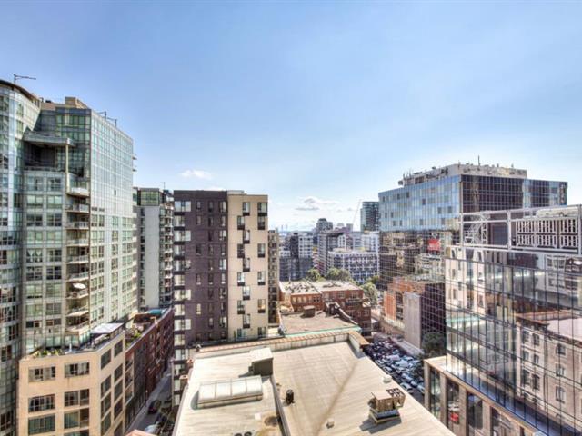 Prestigious one-bedroom condo on the 20th floor at 628 rue St-Jacques, developed by Broccolini. Bright and modern, it includes fridge, stove, dishwasher, washer, dryer, A/C, plus storage. Directly in front of SquareVictoria-OACI metro with a Walk Score of 100 - steps to downtown, Old Montreal, cafés, restaurants, and effortless access to everything. (43894430)