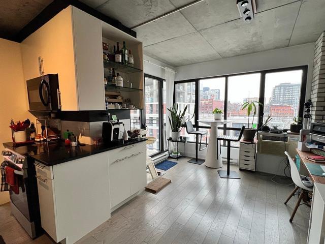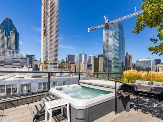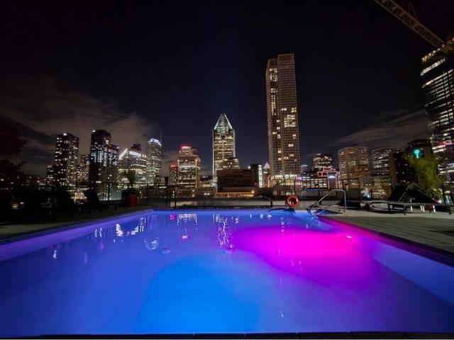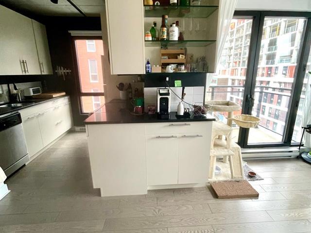 Two-bedroom apartment located at 400 Inspecteur in Griffintown, featuring a balcony. Indoor parking, storage locker, and bike rack included. Appliances included: microwave, oven, refrigerator, dishwasher, washer/dryer, and central vacuum. Building offers a rooftop pool and jacuzzi, as well as a gym. Approximately a 10-minute walk to Bonaventure or Square-Victoria metro stations, and close to Maxi, IGA, Avril, and Adonis grocery stores. Cats accepted; dog to be discussed. Flexible occupancy from March to June. Lease until July 1, 2027 with no increase. Credit check to be conducted by the owner. (48568832)